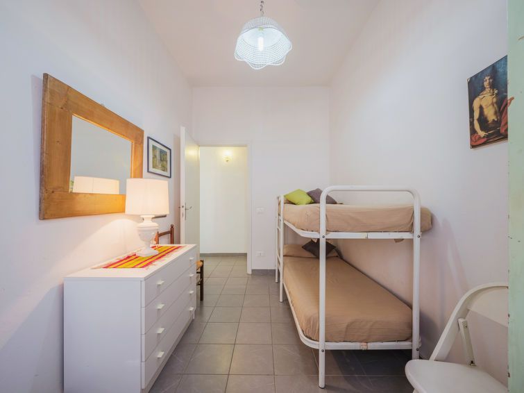 "La casa della ceramista", 3-room apartment 48 m2, on the upper ground floor. Comfortable and cosy furnishings: 1 double bedroom. Exit to the balcony. 1 room with 1 x 2 bunk beds. Kitchen-/living room (4 hot plates, microwave, freezer) with dining table, TV (flat screen). Exit to the balcony.