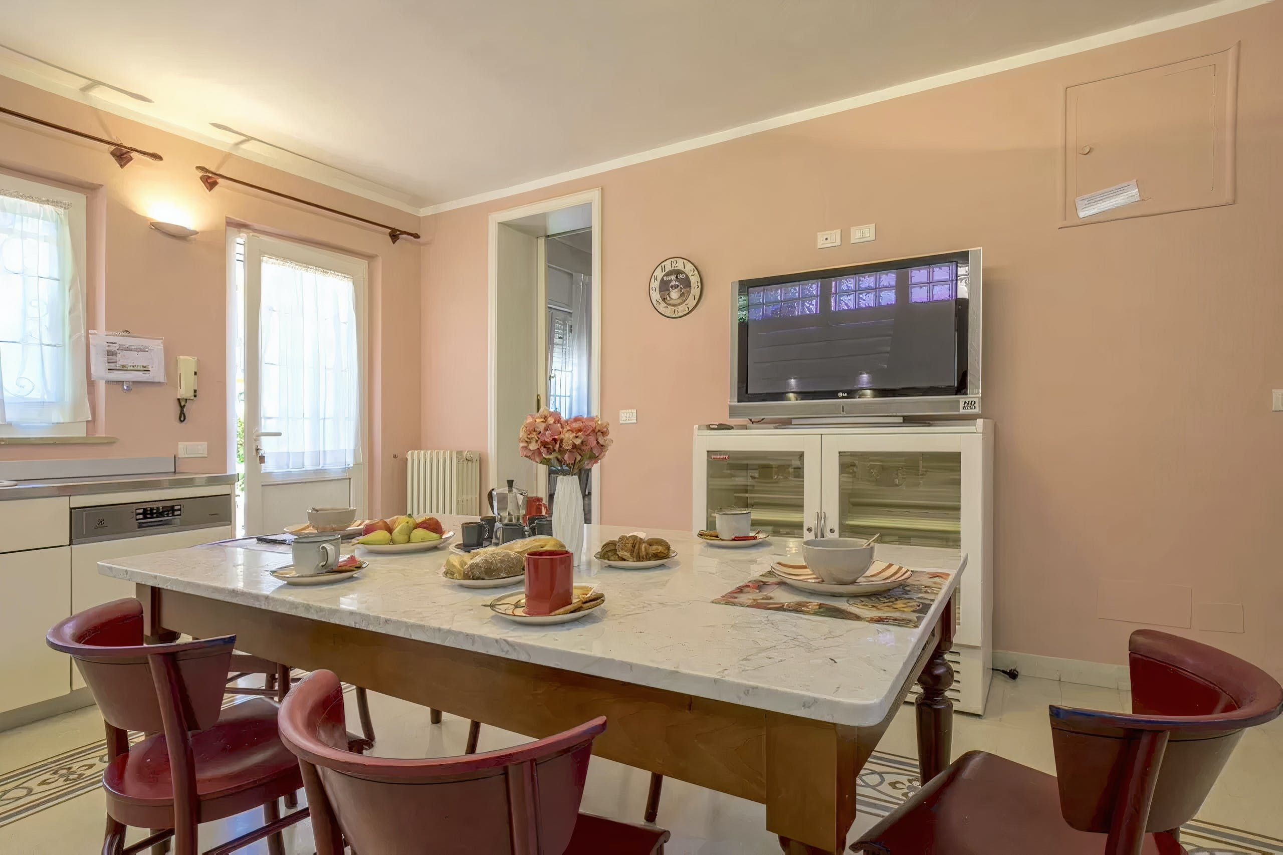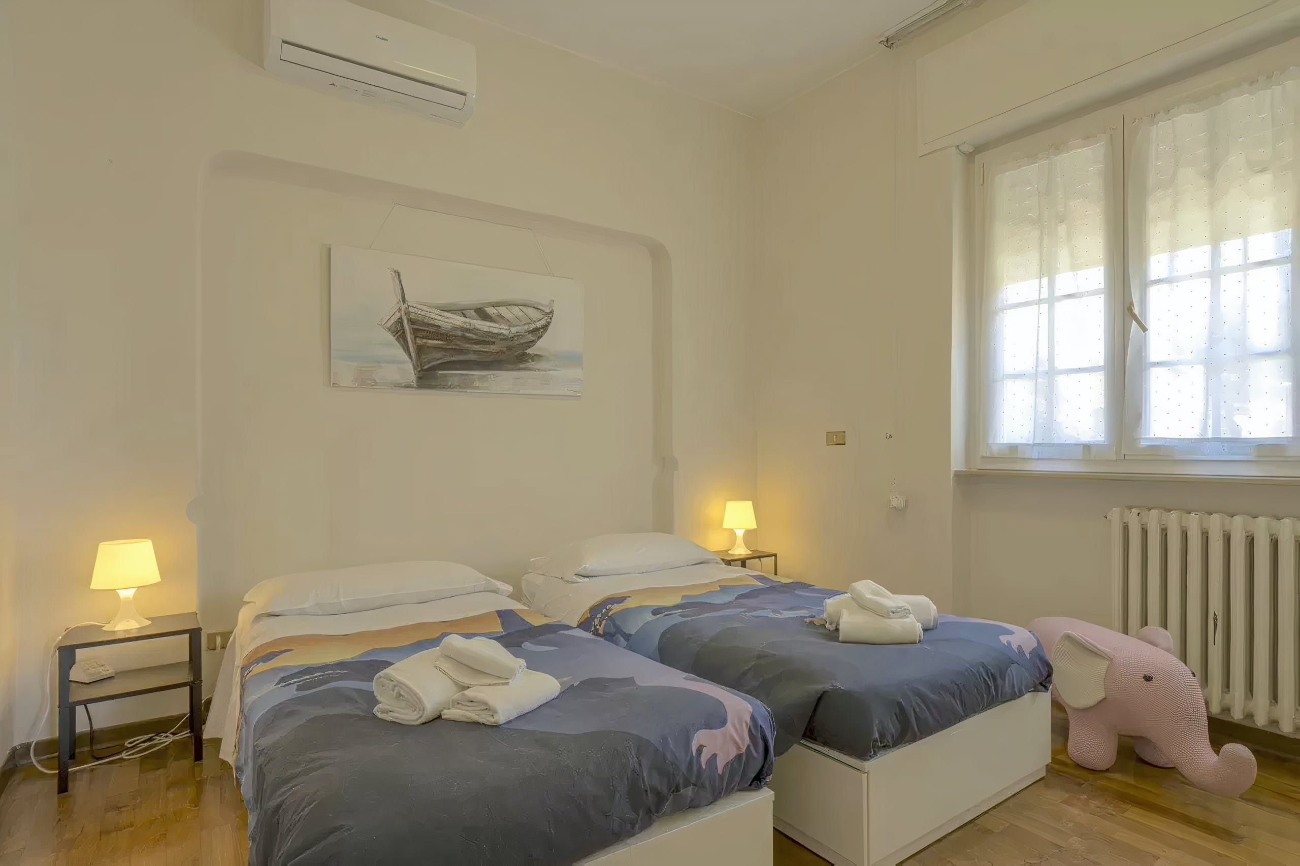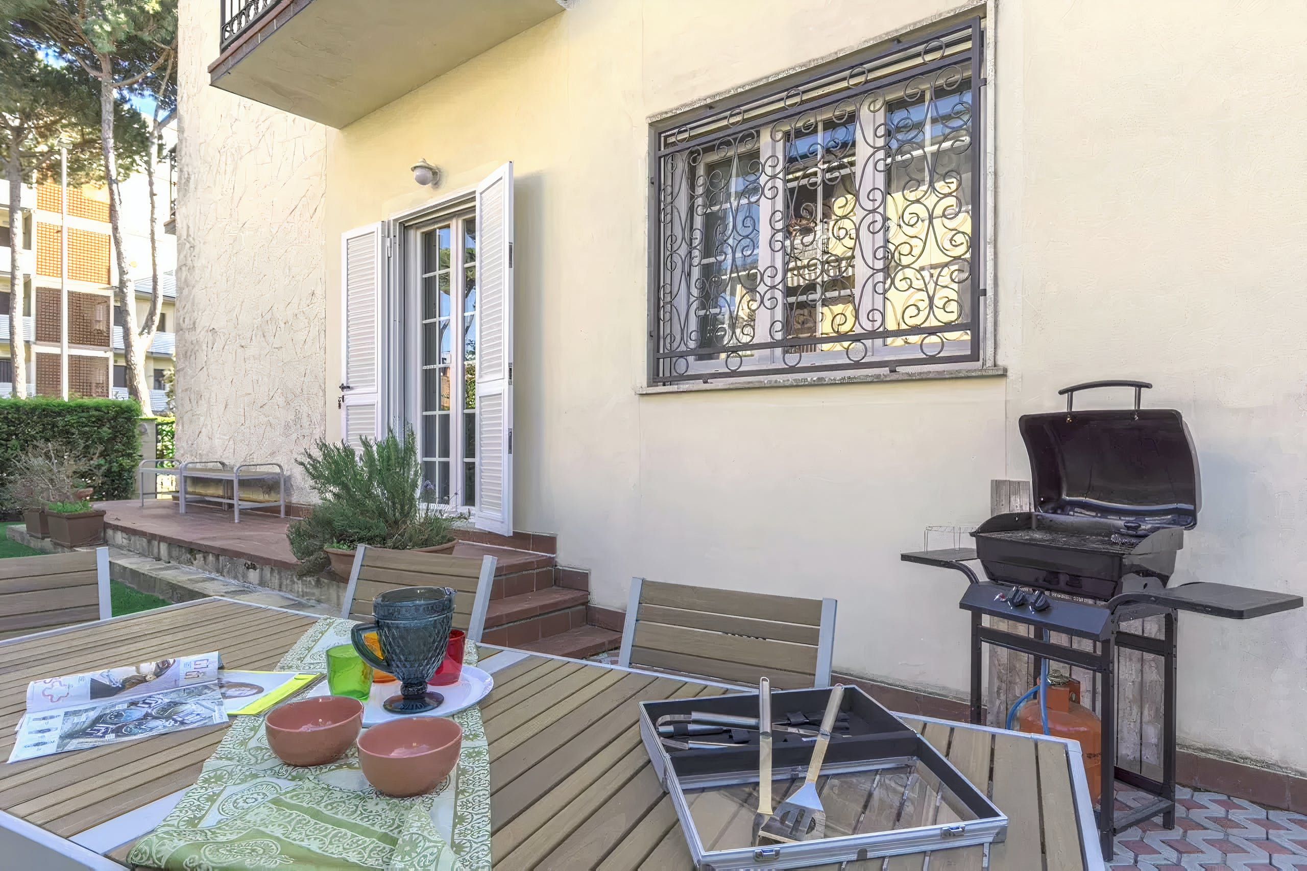 Just a short stroll from the seafront, this apartment opens its doors to a refreshing Italian getaway. From here, you can walk to the nearest beach, shops and restaurants, while Tuscany’s beautiful countryside is also within easy driving distance. Wherever the day takes you, this home provides the ideal spot to switch off and share quality time together. Spread across two floors, the rooms are simple, fresh and family-friendly. There is also a garden with a barbecue and outdoor seating – perfect for evening drinks and alfresco dining.