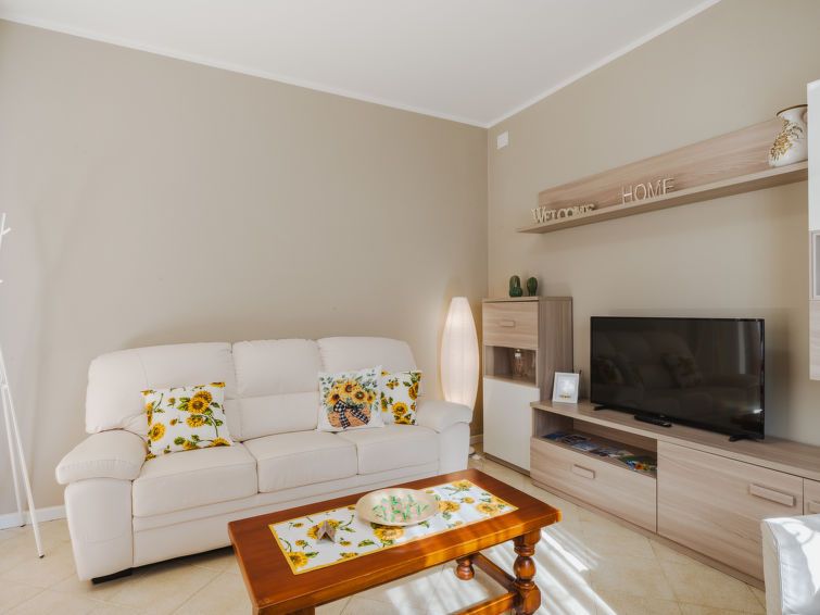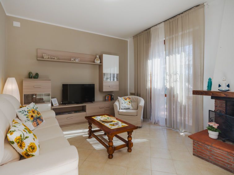 "Sunflower piano terra", 4-room apartment 95 m2, on the ground floor. Spacious and bright, fully renovated, beautiful and cosy furnishings: living/dining room with open-hearth fireplace (only for decoration), TV (flat screen). Exit to the patio. 2 double bedrooms. 1 room with 1 bed.