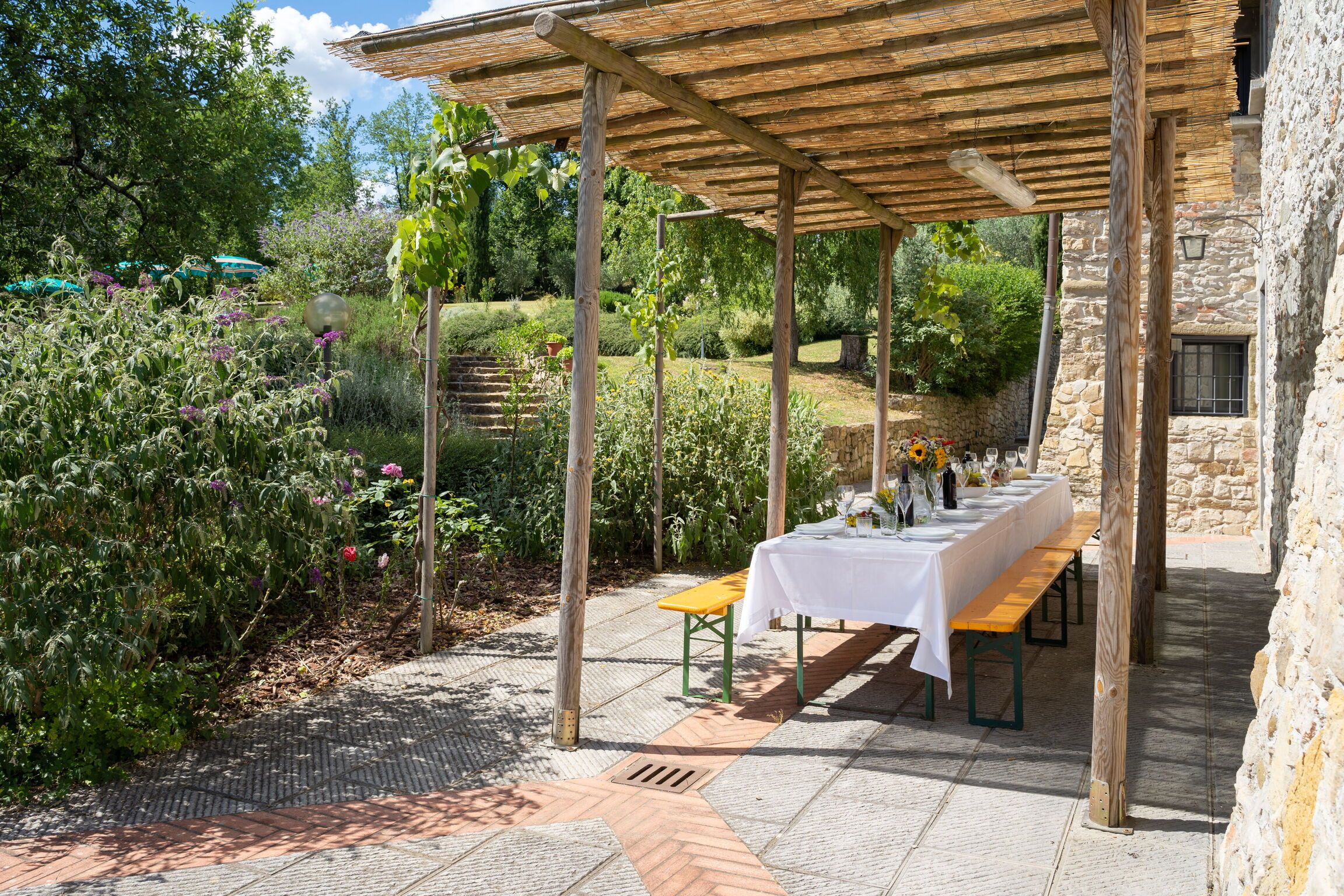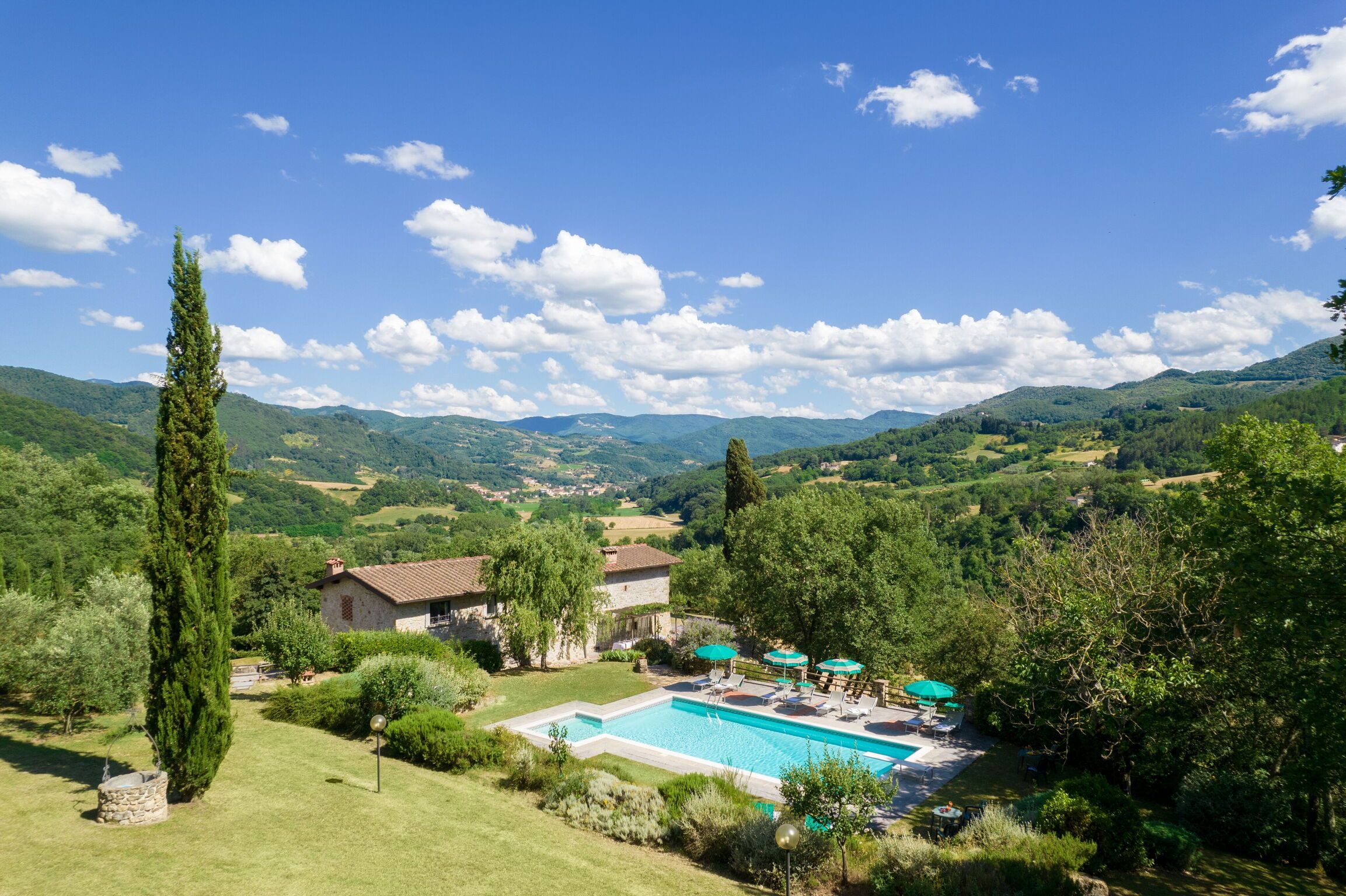 As Tuscan homes go, this one fully encapsulates the charm of the region. Once a farmhouse, the traditional interiors may not be everyone's cup of tea, but the exposed stone walls and antique furnishings certainly match the rustic atmosphere. Regardless, you won't spend much time indoors – not with exteriors this inviting. Choose a spot in the beautiful landscaped gardens to soak up the sunshine, or lounge in the pool (with a children's pool area, the whole family can enjoy it). The terrace is made for alfresco feasts with family or friends – the stunning hilltop views are the cherry on top. Situated in the Mugello valley outside Florence, this home feels a world away from the city, yet it's just an hour's train ride away.