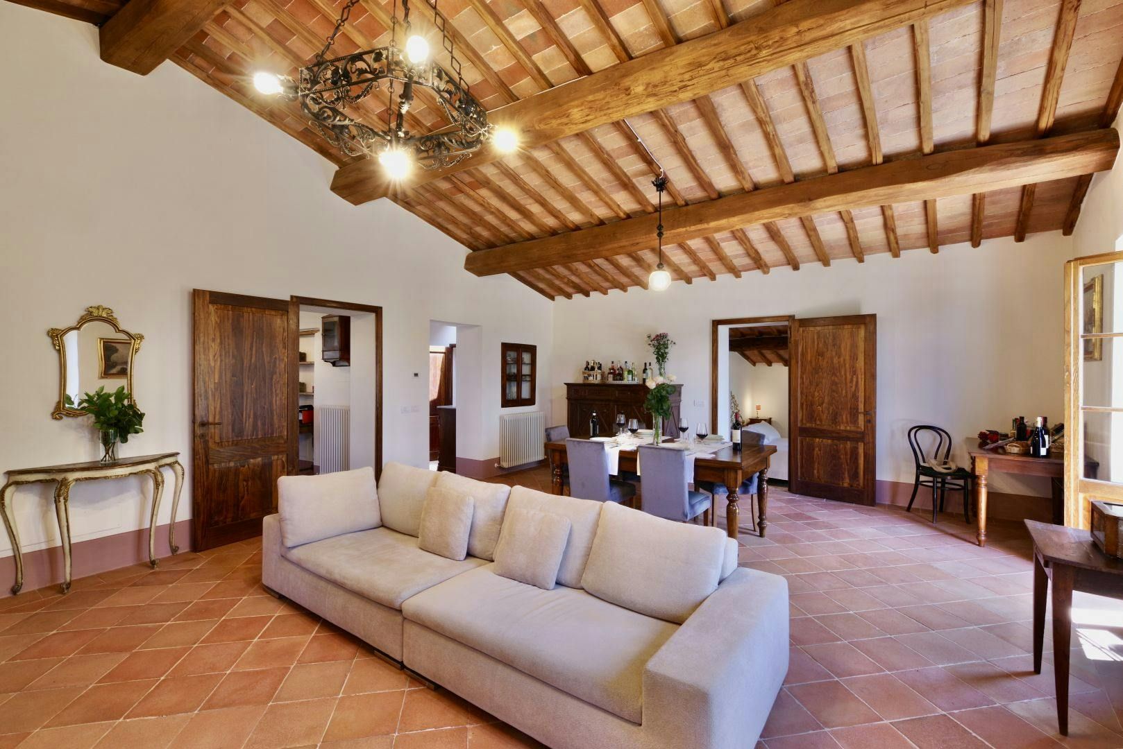 This charming villa offers an authentic Tuscan experience. Located in a picturesque village in the Chianti region, it’s well positioned for day-trips to local vineyards, as well as to culture-rich cities like Arezzo, which is just over an hour away. When you’re not out exploring, you’ll likely spend most of your time outside, soaking up the sun in the garden and dining alfresco. Inside, you’ll find rustic wooden beams and terracotta floors – this is a traditional Tuscan home.