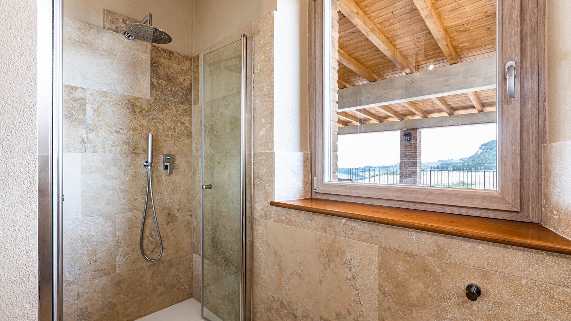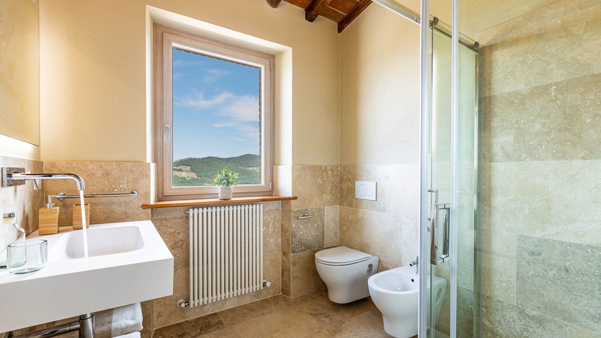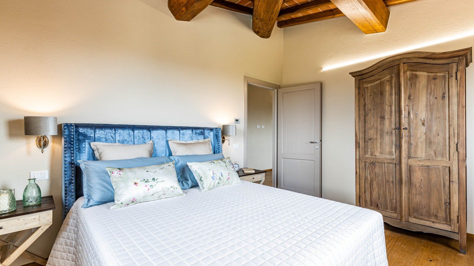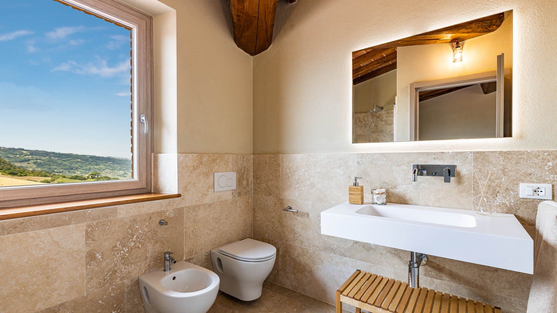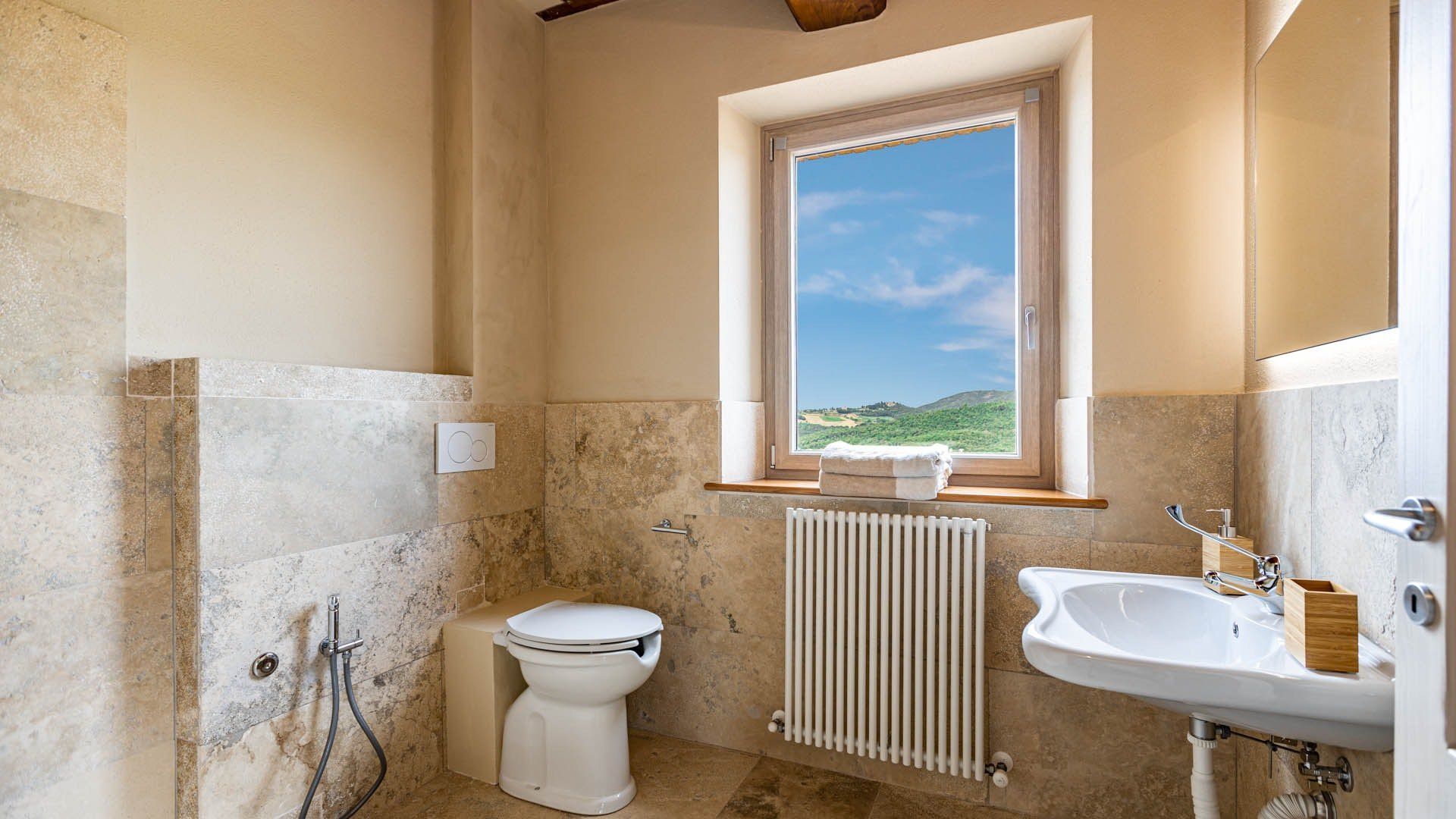 Panoramic views take centre stage outdoors, where raised terraces can provide shaded spots for meals outside. From a poolside lounger, you can admire the forest-clad hills around you, before slipping into the turquoise pool to cool off from the sun. Aperitivo is best served on the first-floor terrace, where comfy seating looks out over the countryside.