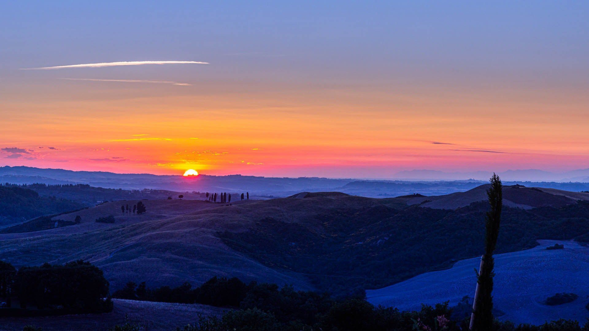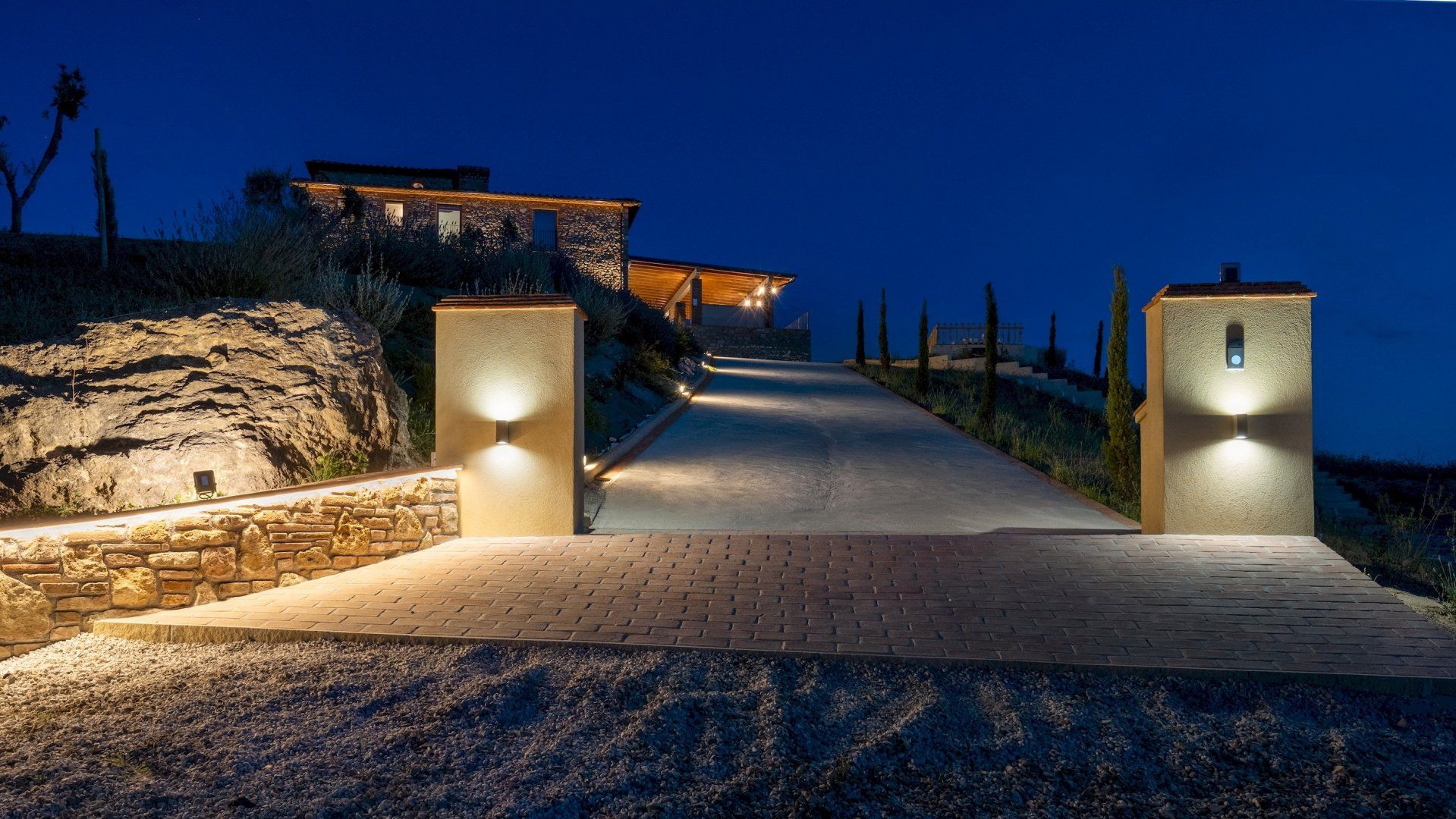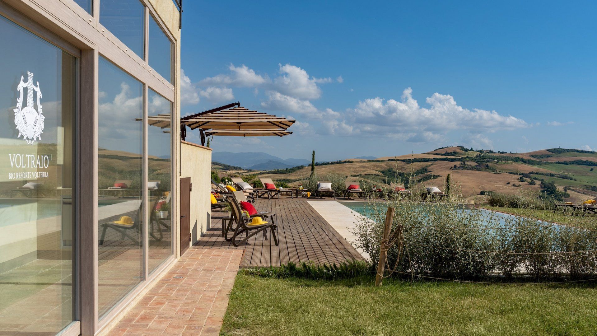 In the undulating Tuscan countryside, this villa sits atop a hill, right on the ancient oil and wine route through olive groves and vineyards. It’s a fifteen-minute drive from Volterra, a medieval walled town with plenty of farm-to-table restaurants and old churches to explore. And Siena is just under an hour’s drive for a day trip.