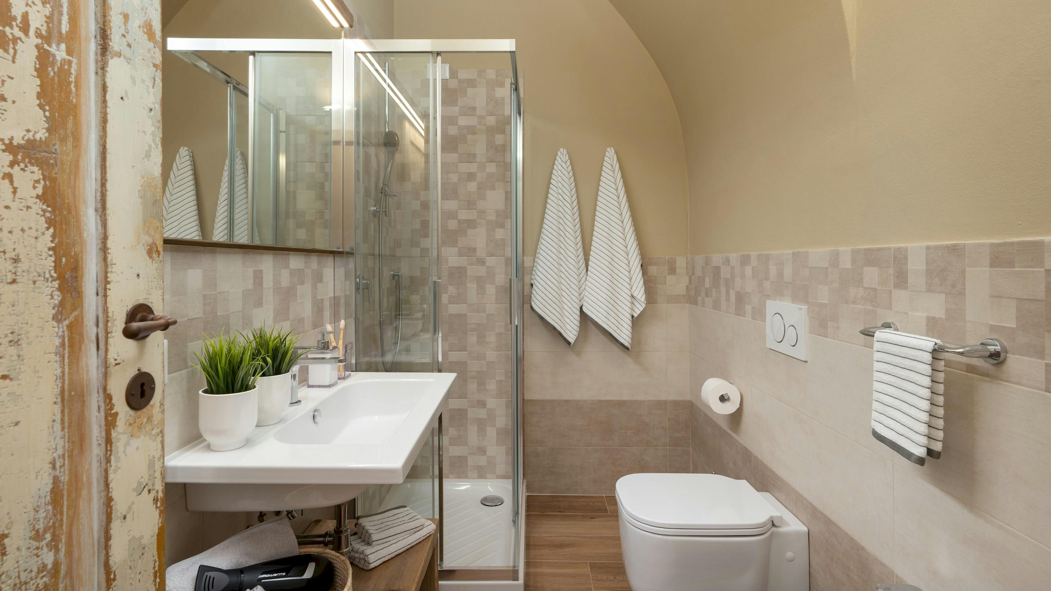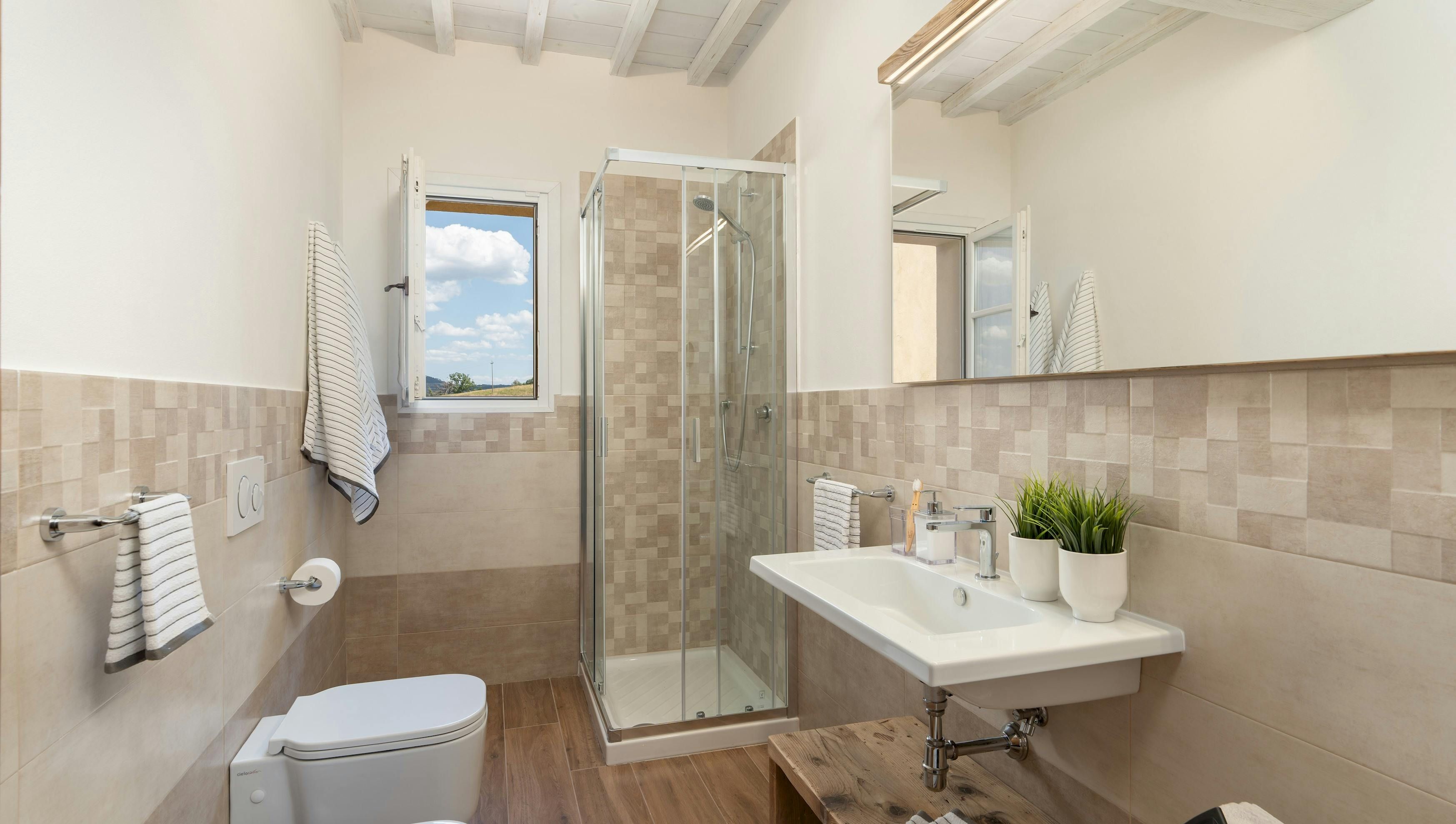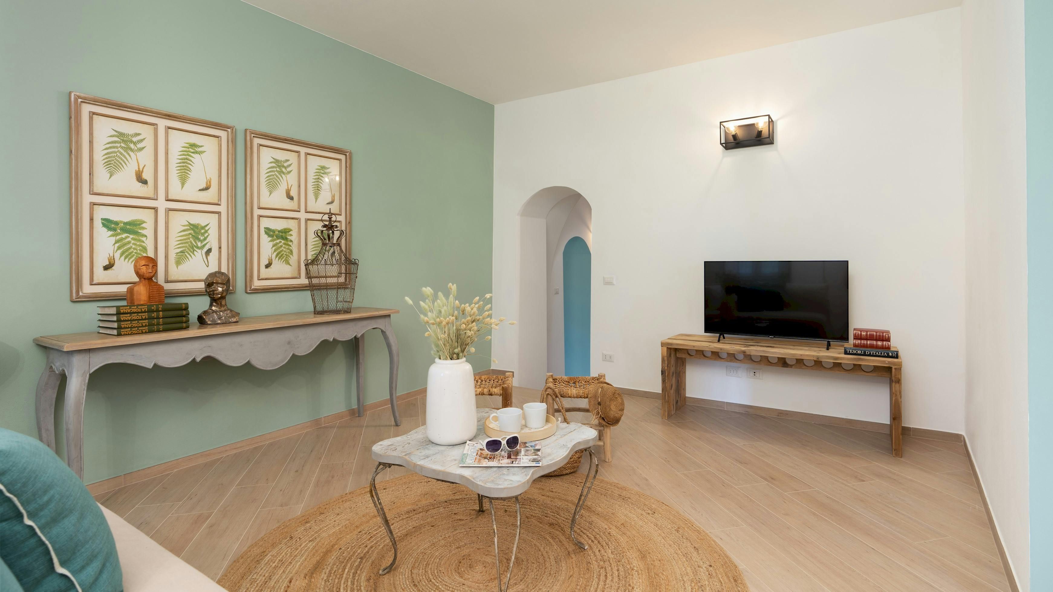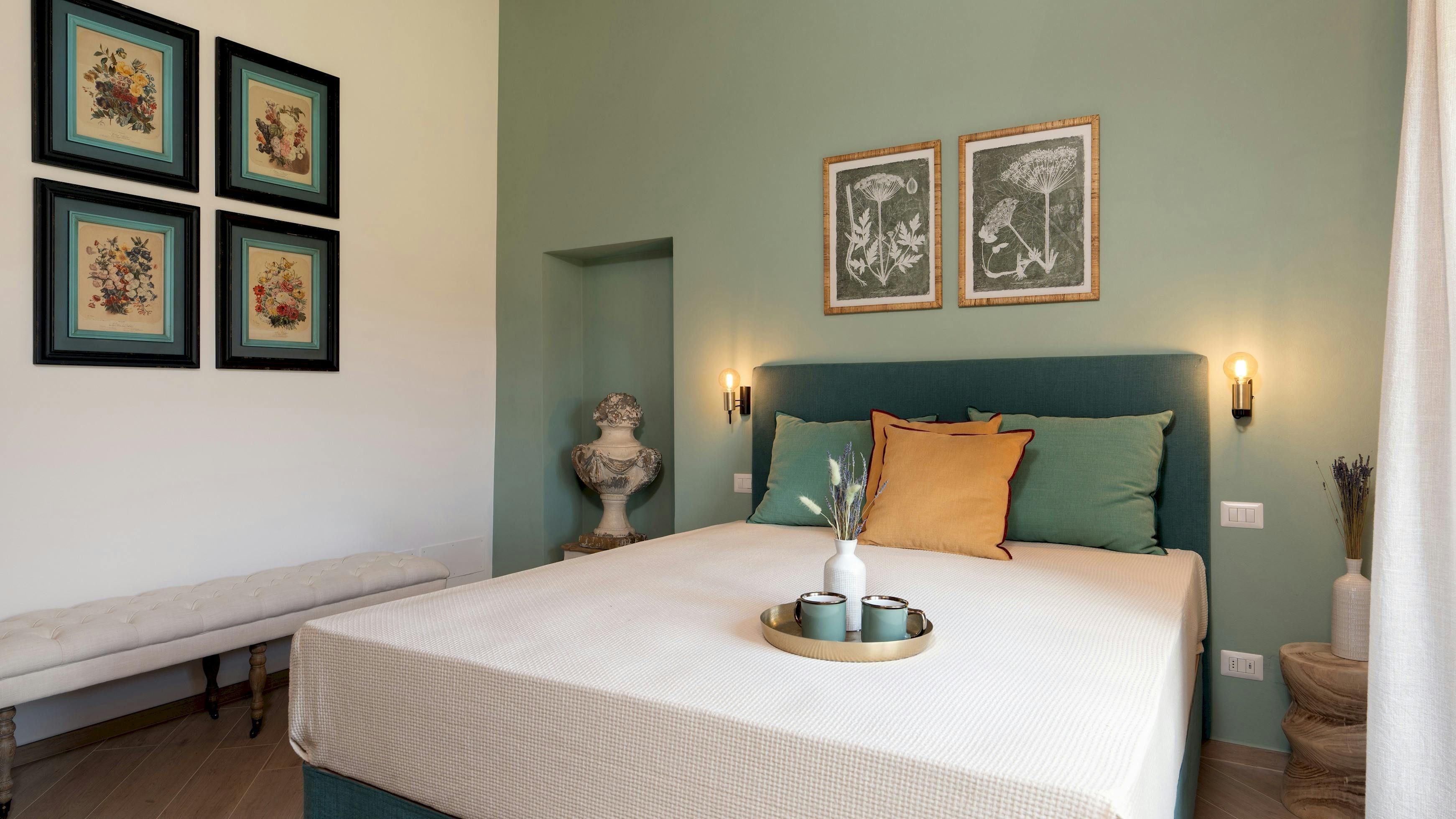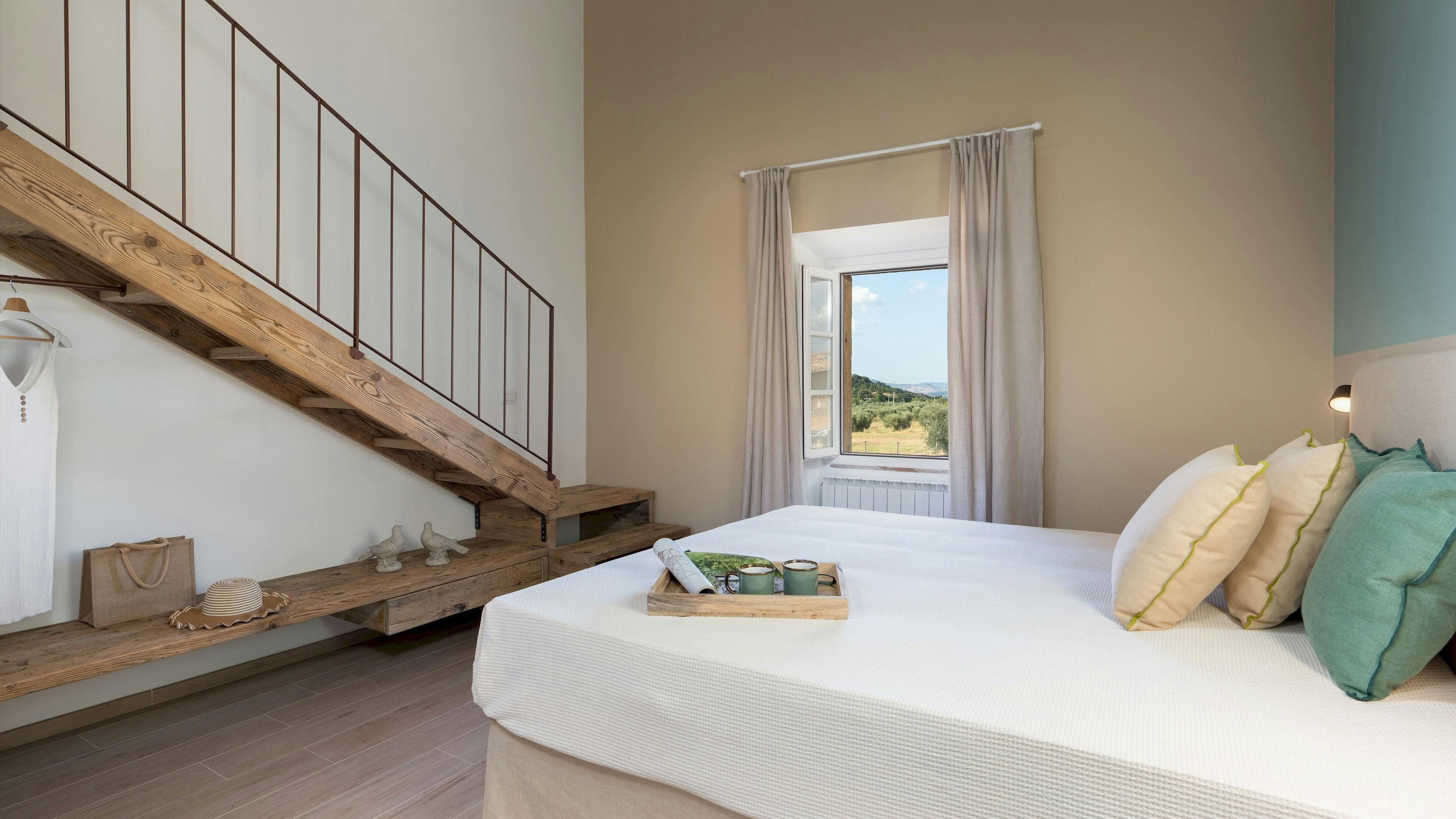 This Tuscan home is something special. It’s in the Val di Cecina, close to the medieval town of Pomarance, with its historic castle and walls. The villa – comprising four residential units – is perfect for several families as there’s plenty of space to spend time together while still enjoying privacy. From its position in the hills, the villa offers beautiful views of the surrounding landscape, which can be admired from the well-kept garden and terracotta outdoor dining area. The scent of verbena, lilies, and rosemary pervades the garden. This stylish and elegant home has been renovated to add modern comforts while retaining all the charm of a typical Tuscan farmhouse.