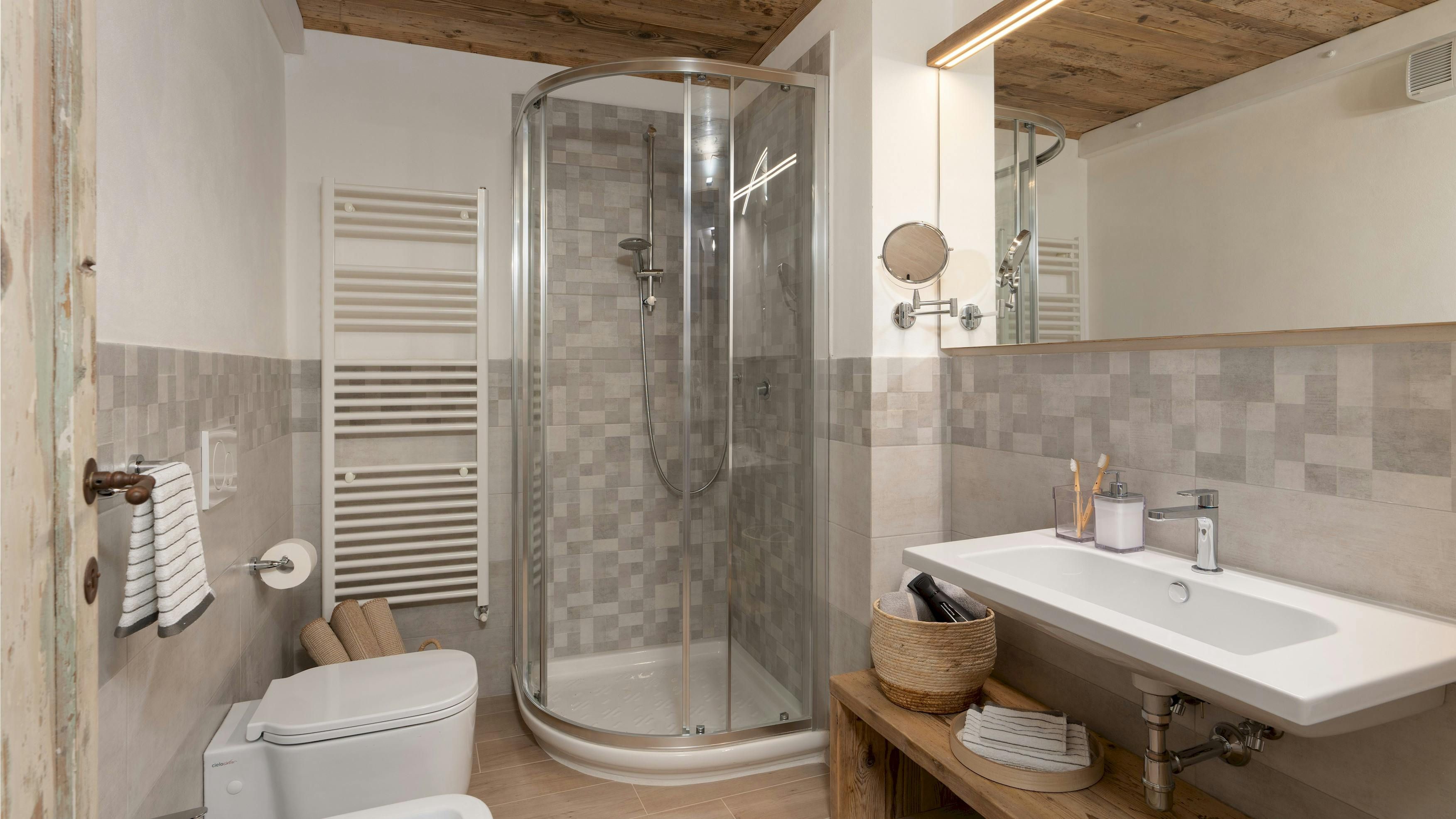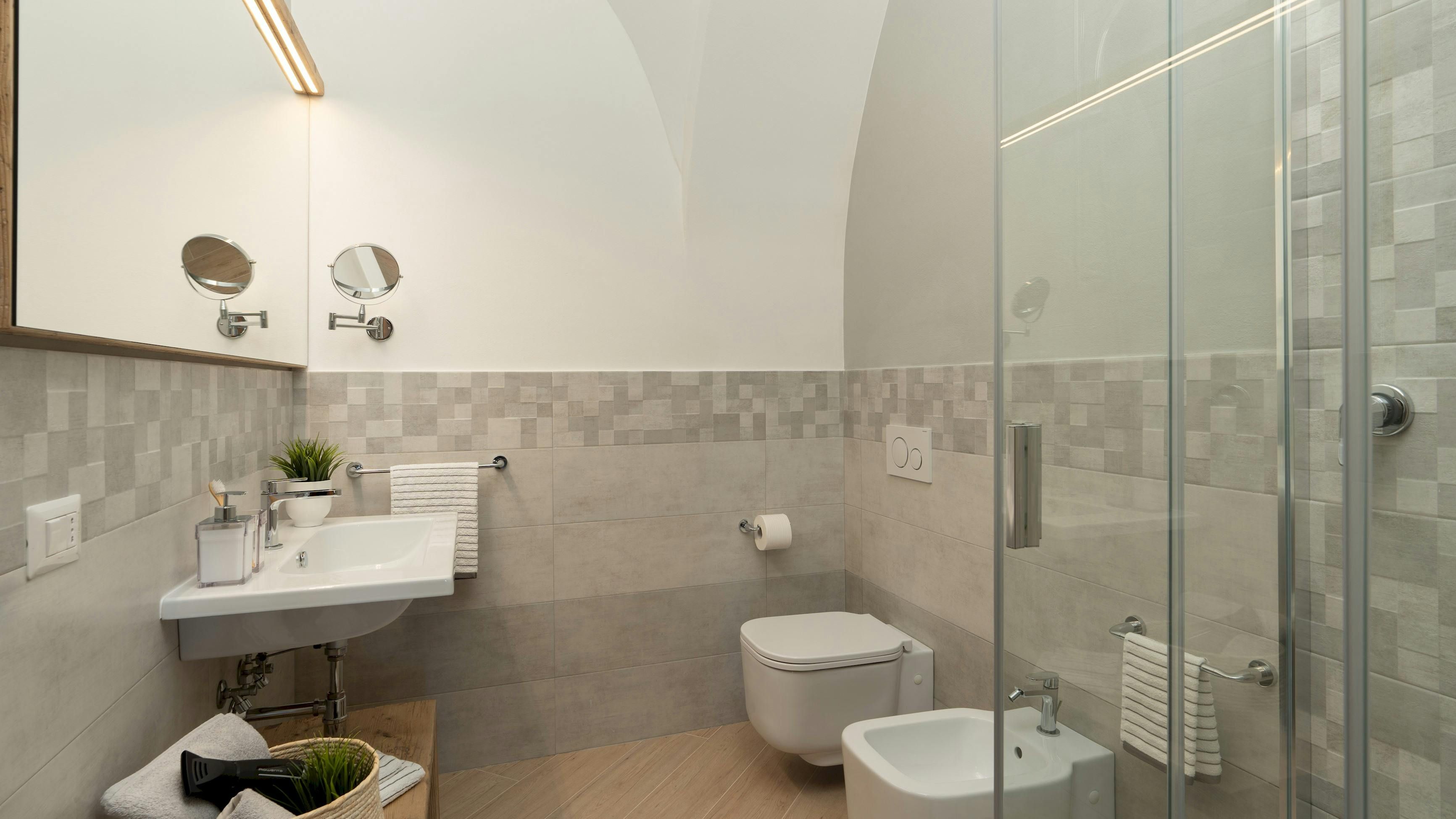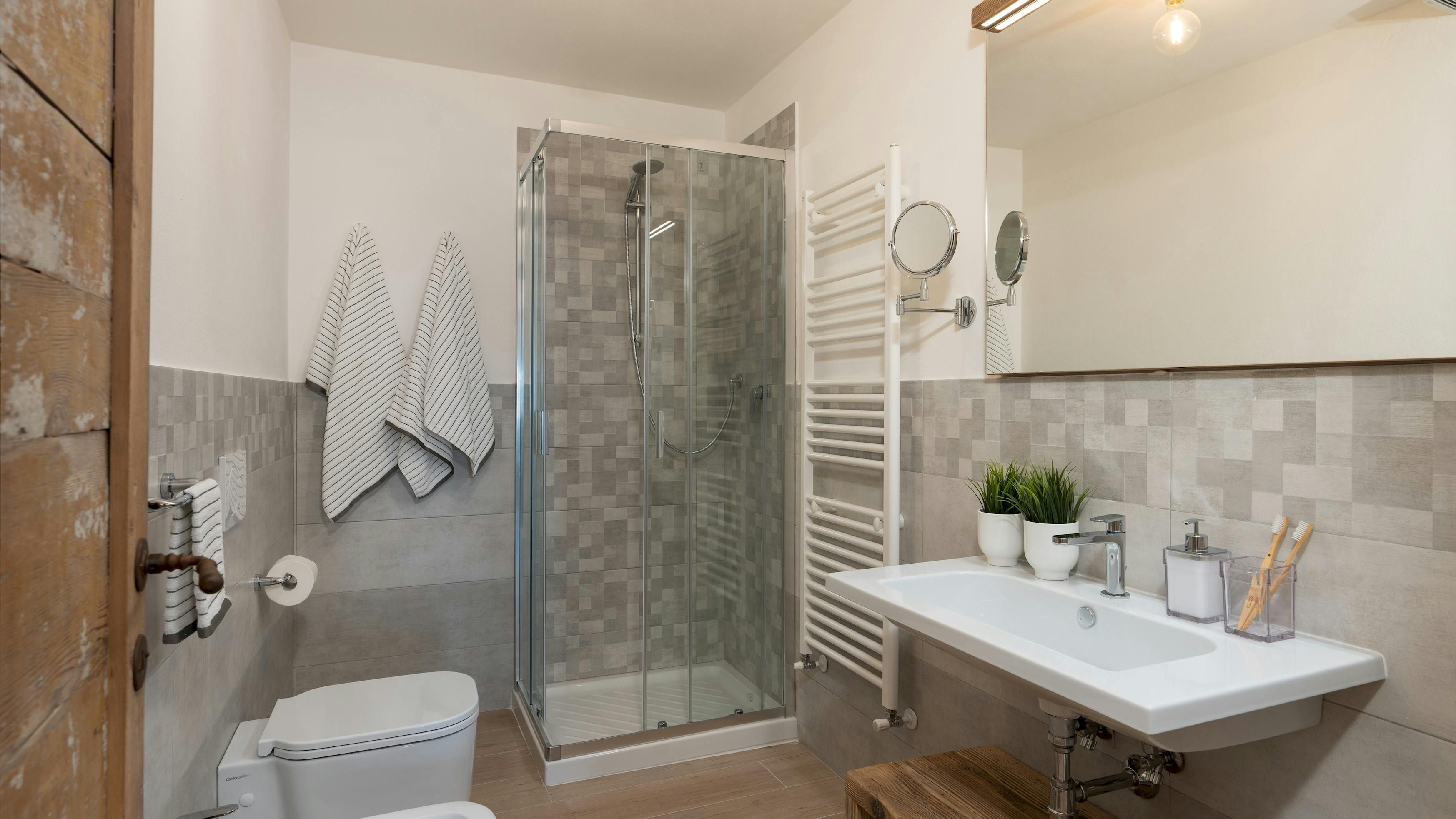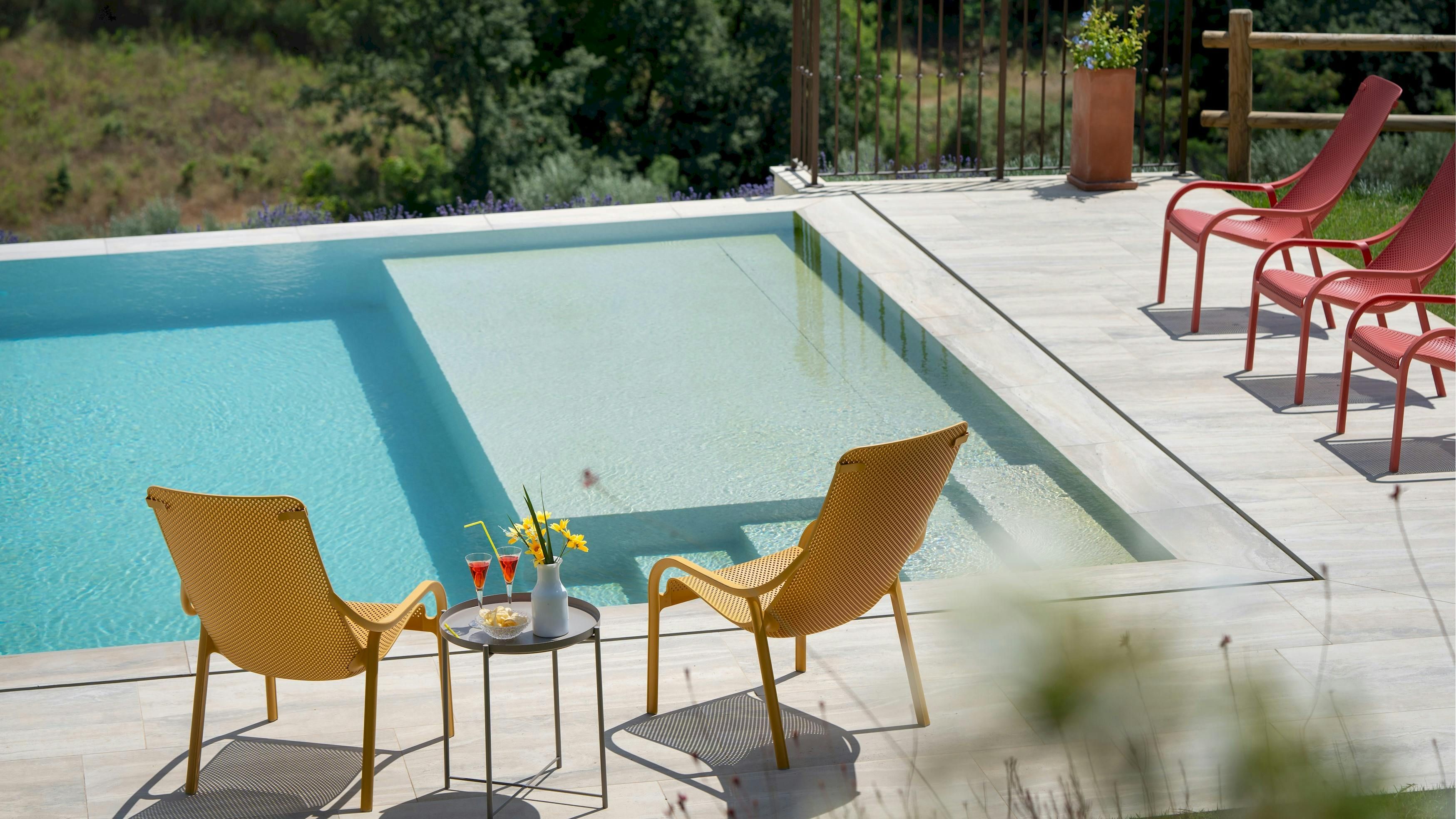 This Tuscan home is something special. It’s in the Val di Cecina, close to the medieval town of Pomarance, with its historic castle and walls. The villa – comprising four residential units – is perfect for several families as there’s plenty of space to spend time together while still enjoying privacy. From its position in the hills, the villa offers beautiful views of the surrounding landscape, which can be admired from the well-kept garden and terracotta outdoor dining area. The scent of verbena, lilies, and rosemary pervades the garden. This stylish and elegant home has been renovated to add modern comforts while retaining all the charm of a typical Tuscan farmhouse.