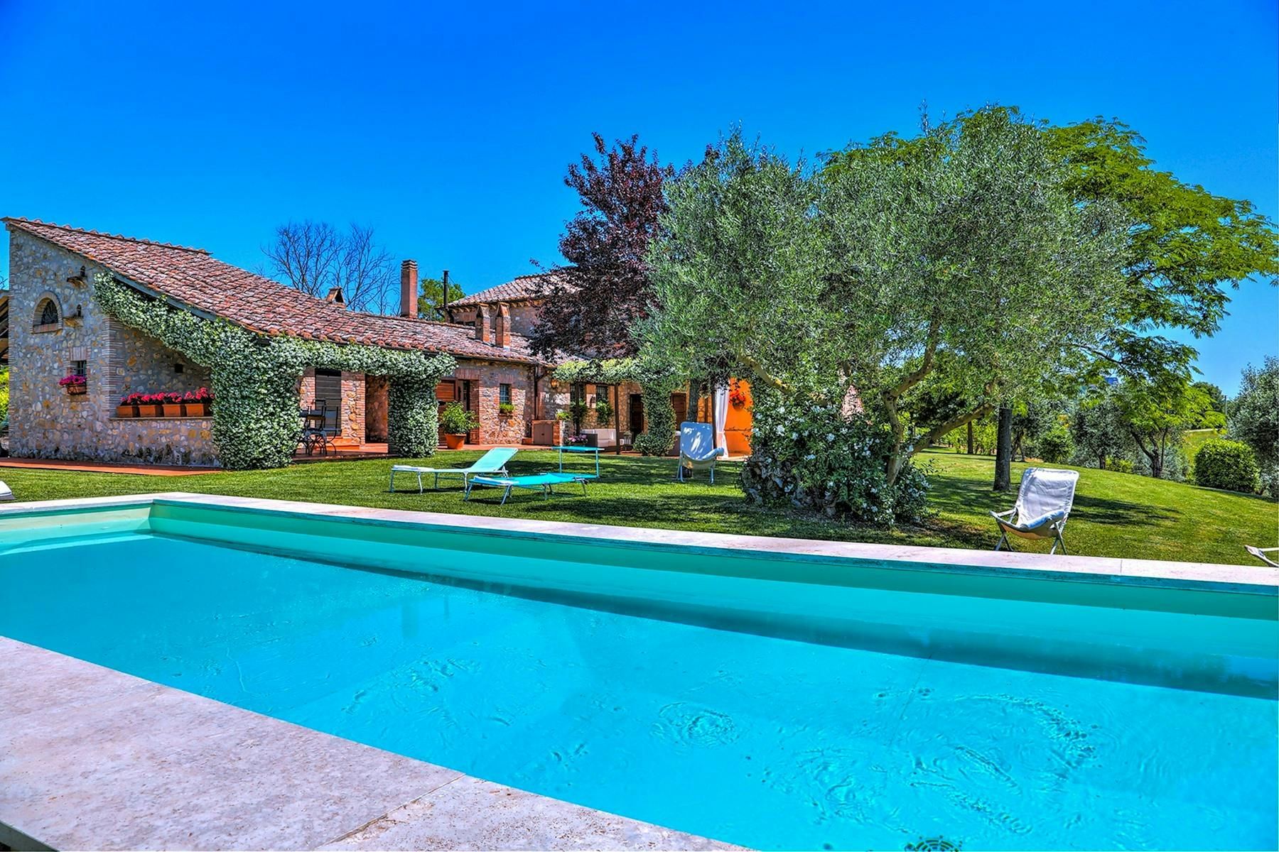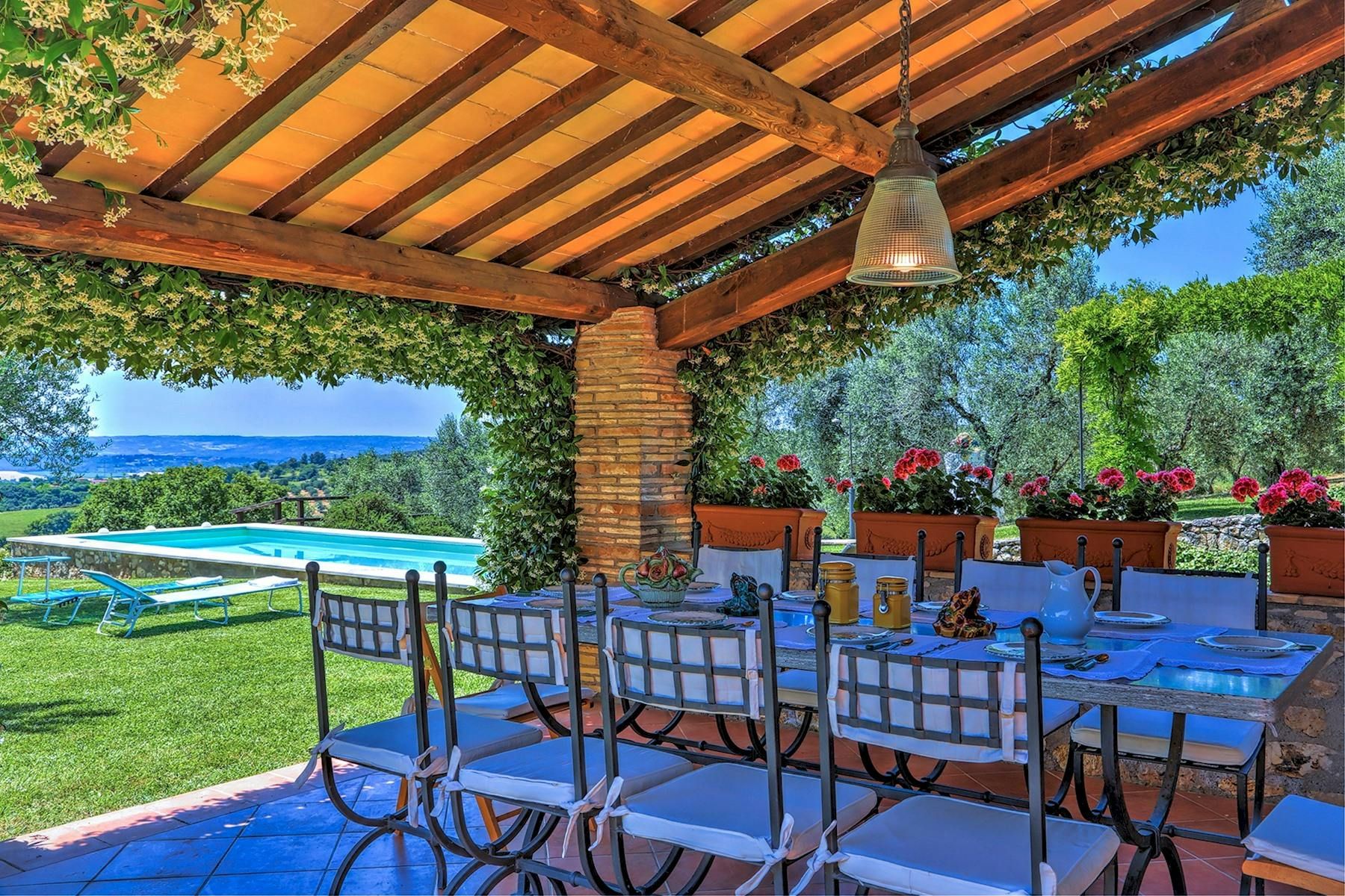 This former farmhouse boasts panoramic views, a private swimming pool, and plenty of character. Everyone will love milling about the garden. Stretch out on a poolside lounger after a dip, or gather under the veranda for a drink as the sun goes down. We're big fans of the traditional details inside – think chestnut ceiling beams, terracotta floors, and antique Sicilian majolica pottery. For those keen on privacy, the fifth bedroom is situated in an adjacent annexe with its own kitchenette. Location-wise, the small commune of Attigliano is a five-minute drive away, while Orvieto, Perugia, and Rome are all great day trip options.