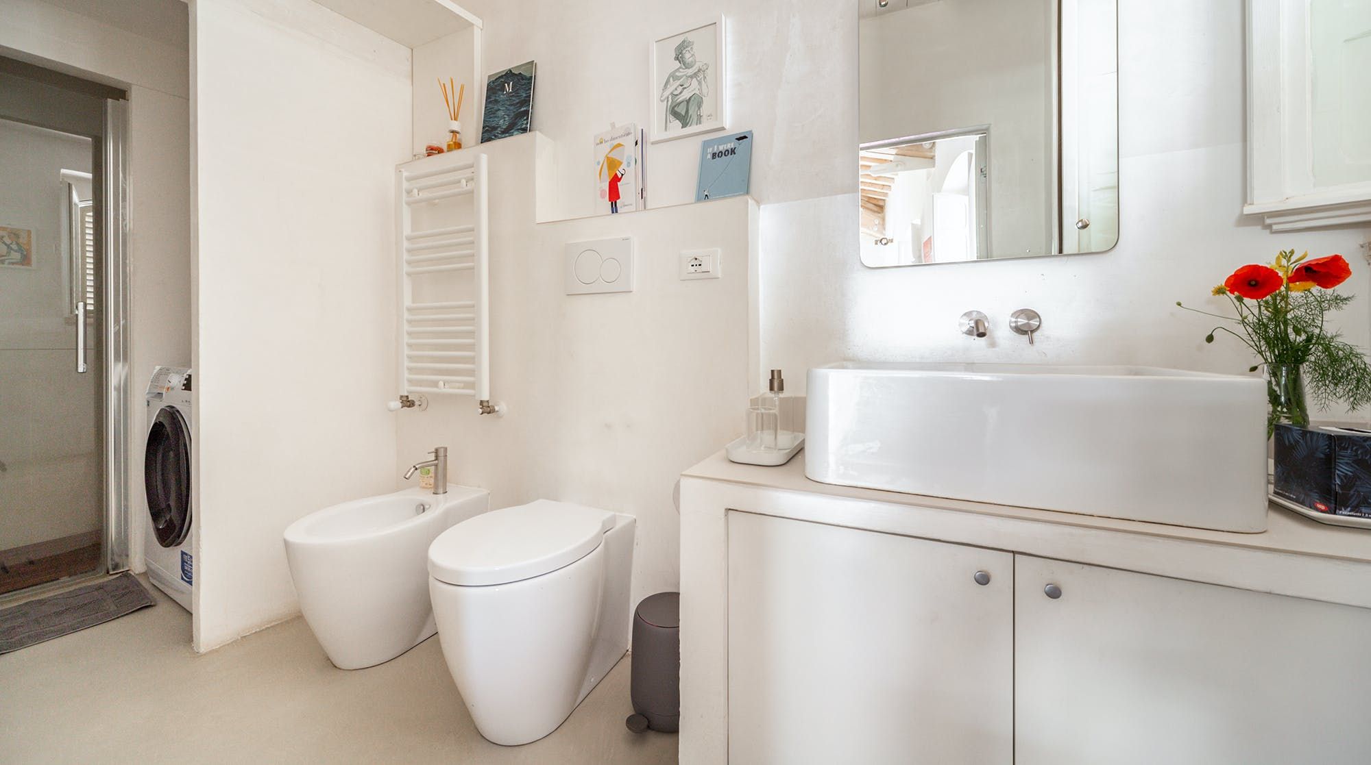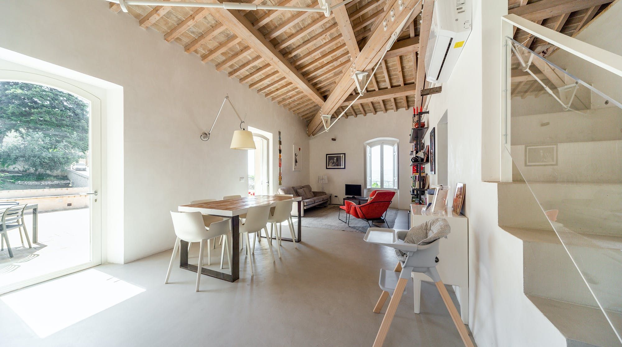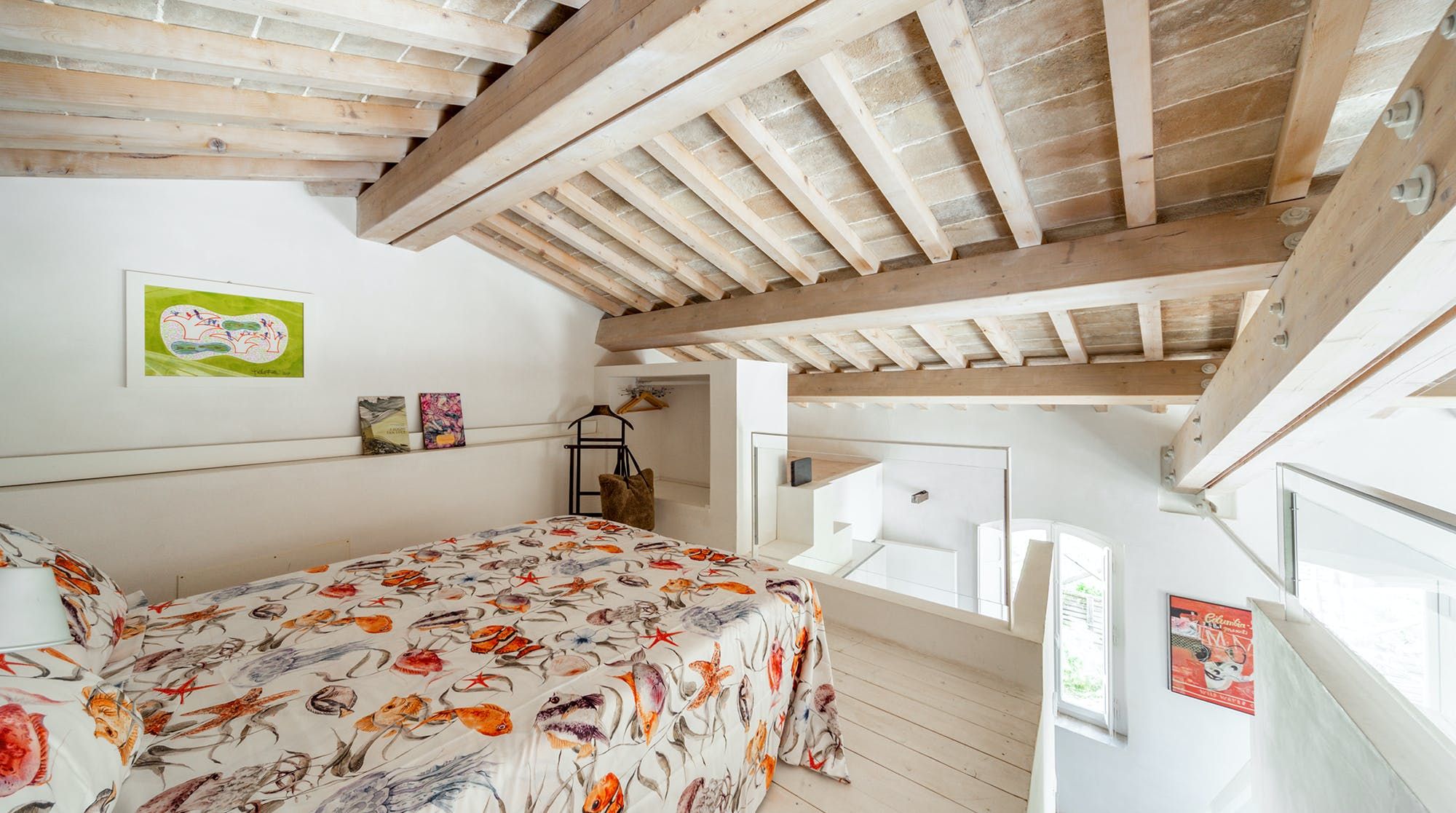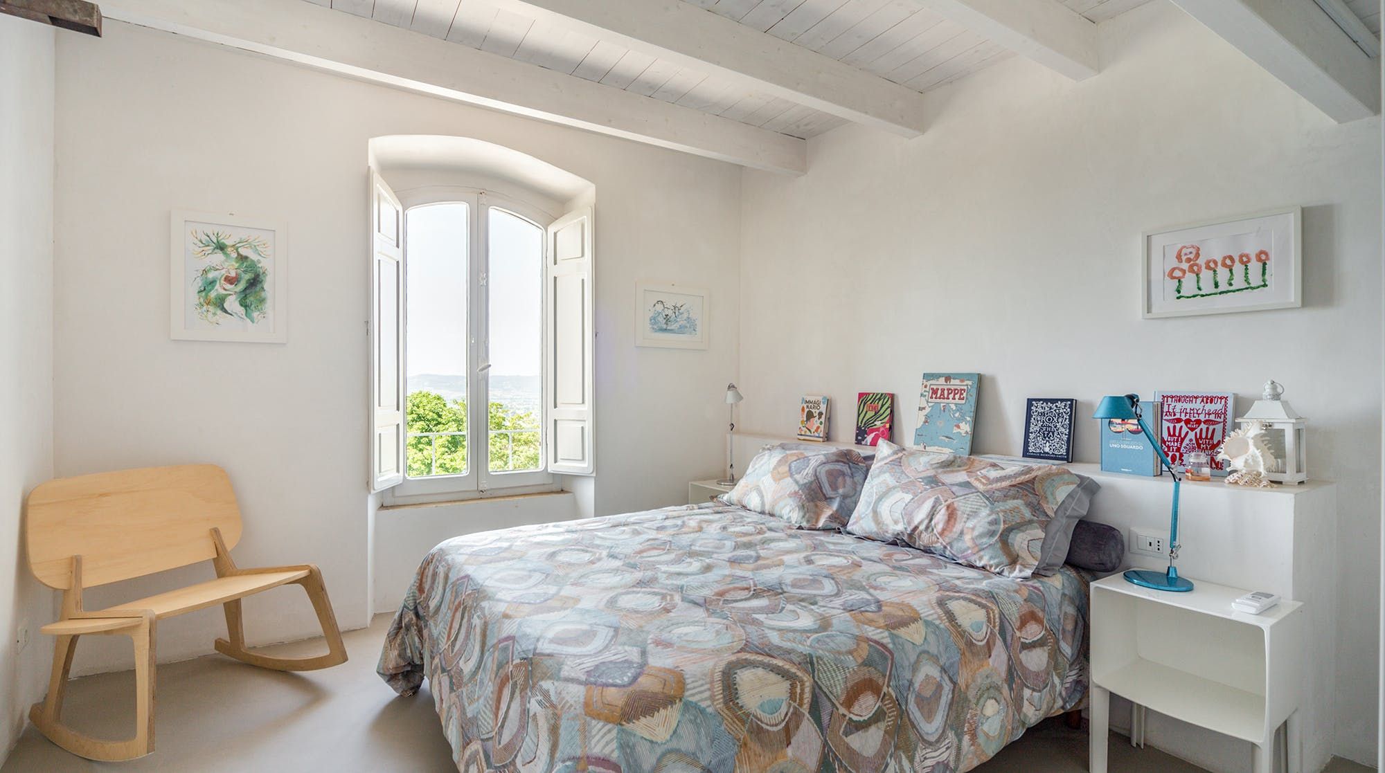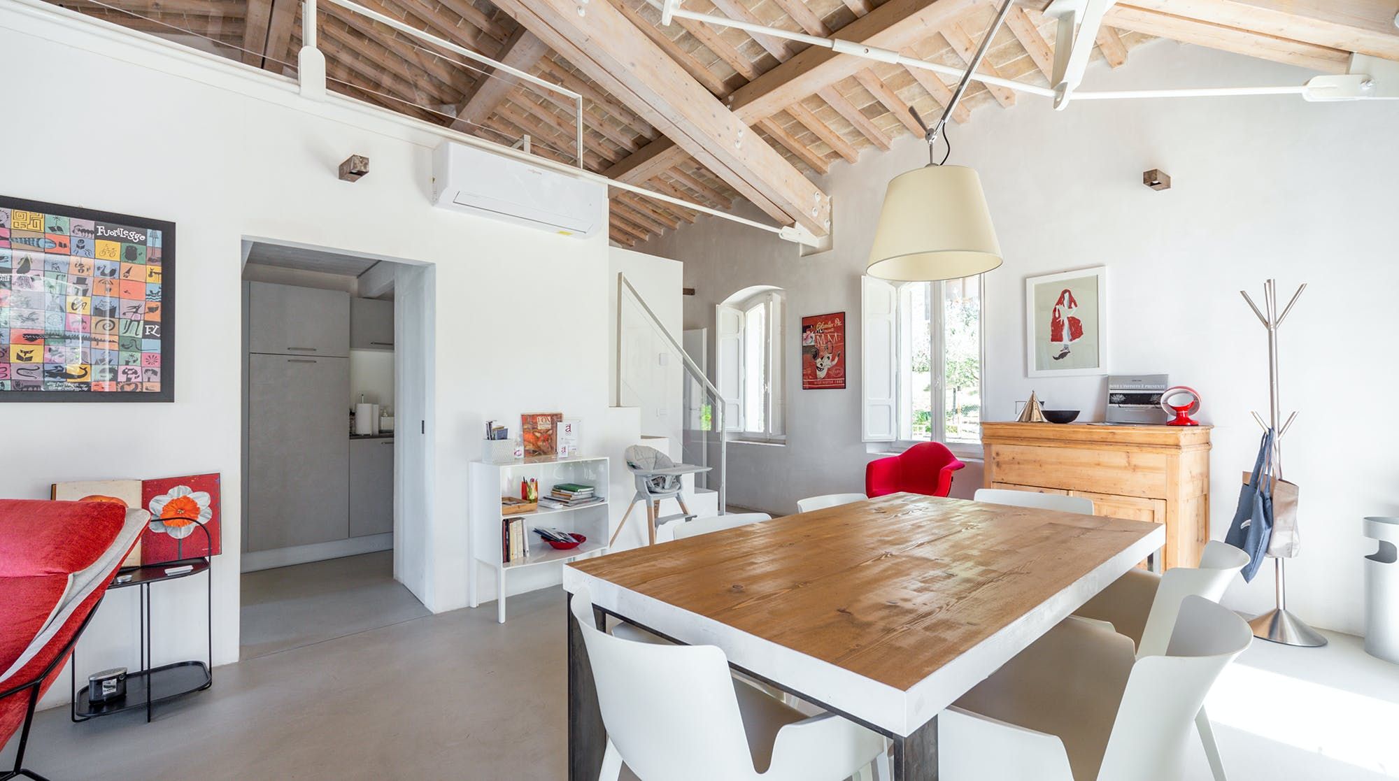 Book lovers will feel right at home here, with a huge selection of books to snuggle up on the sofa with. We recommend bringing your children here as there is also a ton of charming children's books to entertain your little ones. There's plenty of floor space for the children to play with toys that are provided by the host, as well as a cosy mezzanine bedroom space for a quick nap on the futon. The wooden beams add a rustic vibe, combined with the minimalistic yet colourful designs throughout the home.