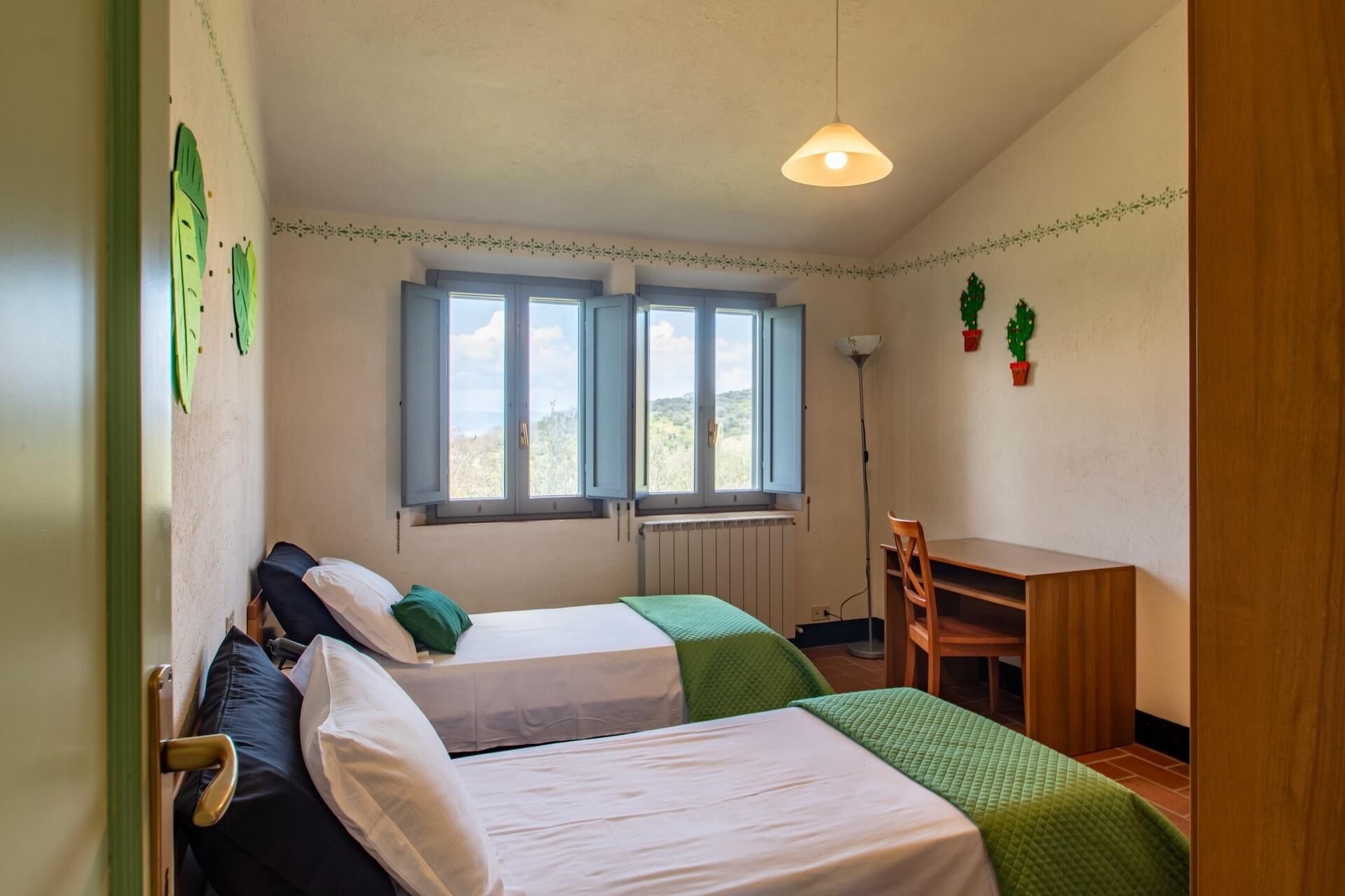 This pet-friendly apartment sits within a historic hillside building in the medieval village of Paciano. Inside, it’s homely, with an authentically Italian feel. The kitchen is on the smaller side if you’re cooking for a group, but makes up for it with stunning views across the Valdichiana Valley and a little private garden perfect for alfresco dining. You’ll also have shared access to the swimming pool. Wander into the village for coffee or lunch at a local trattoria, or hop in the car to explore the surrounding vineyards and hilltop towns. Lake Trasimeno is just 20 kilometres away.