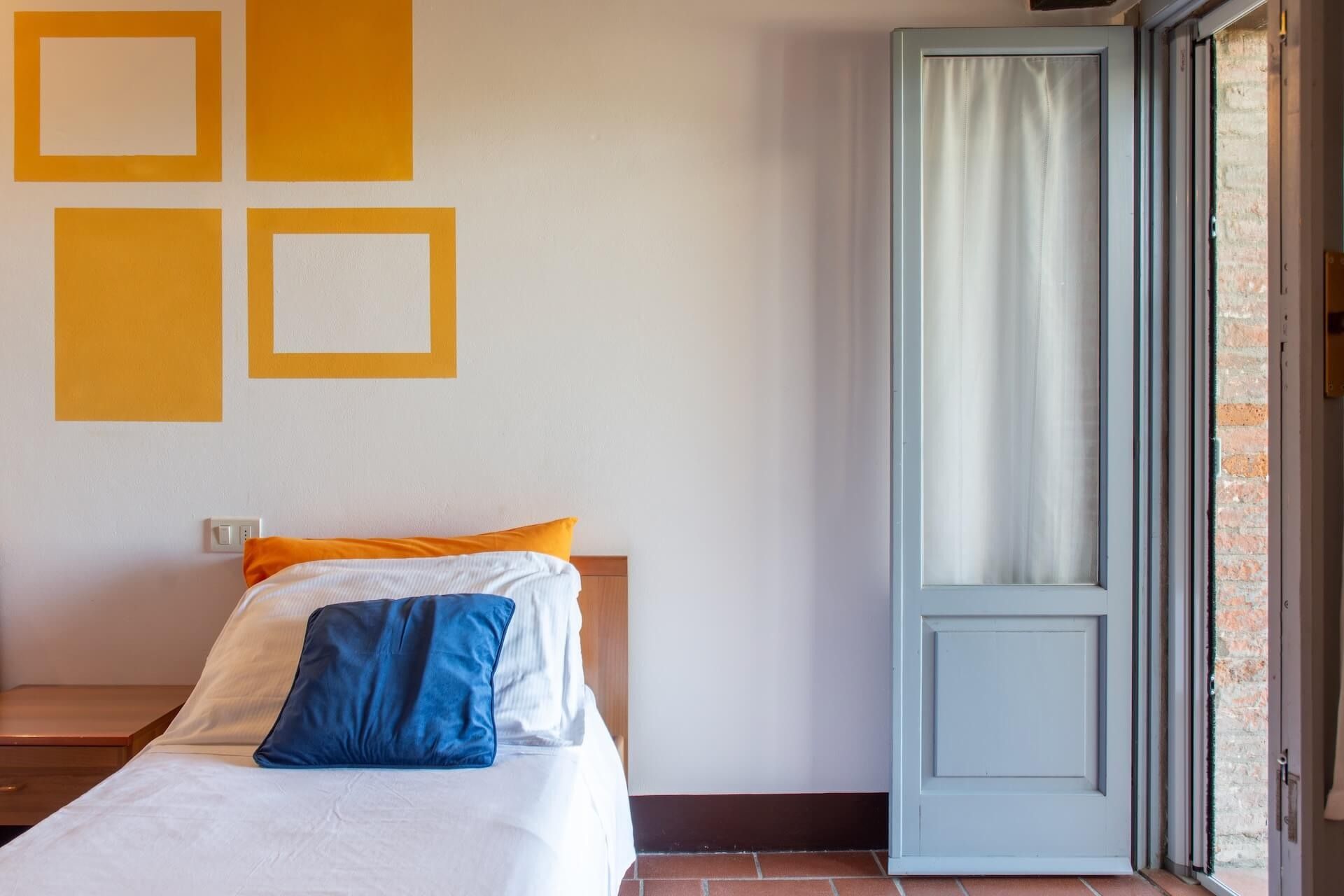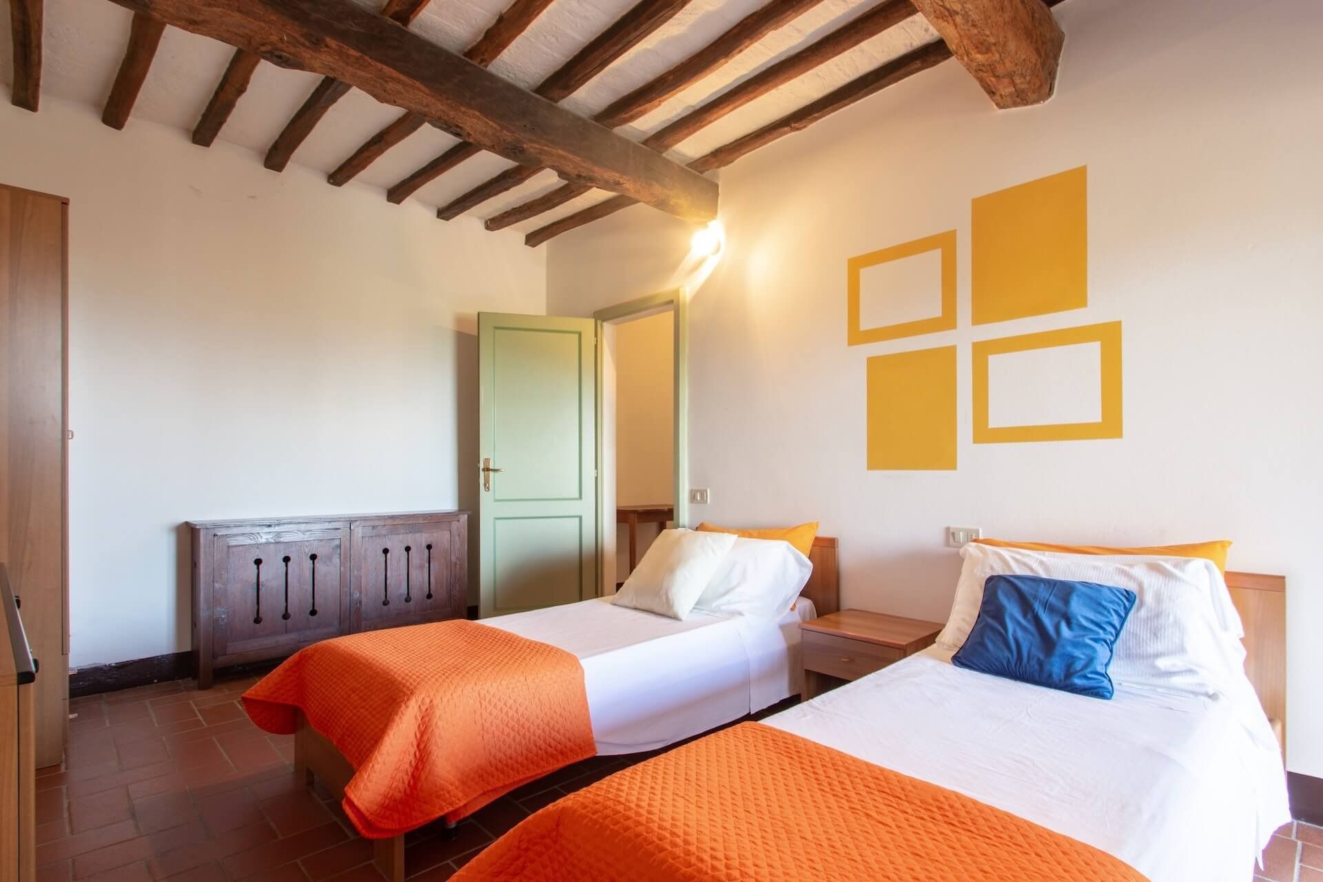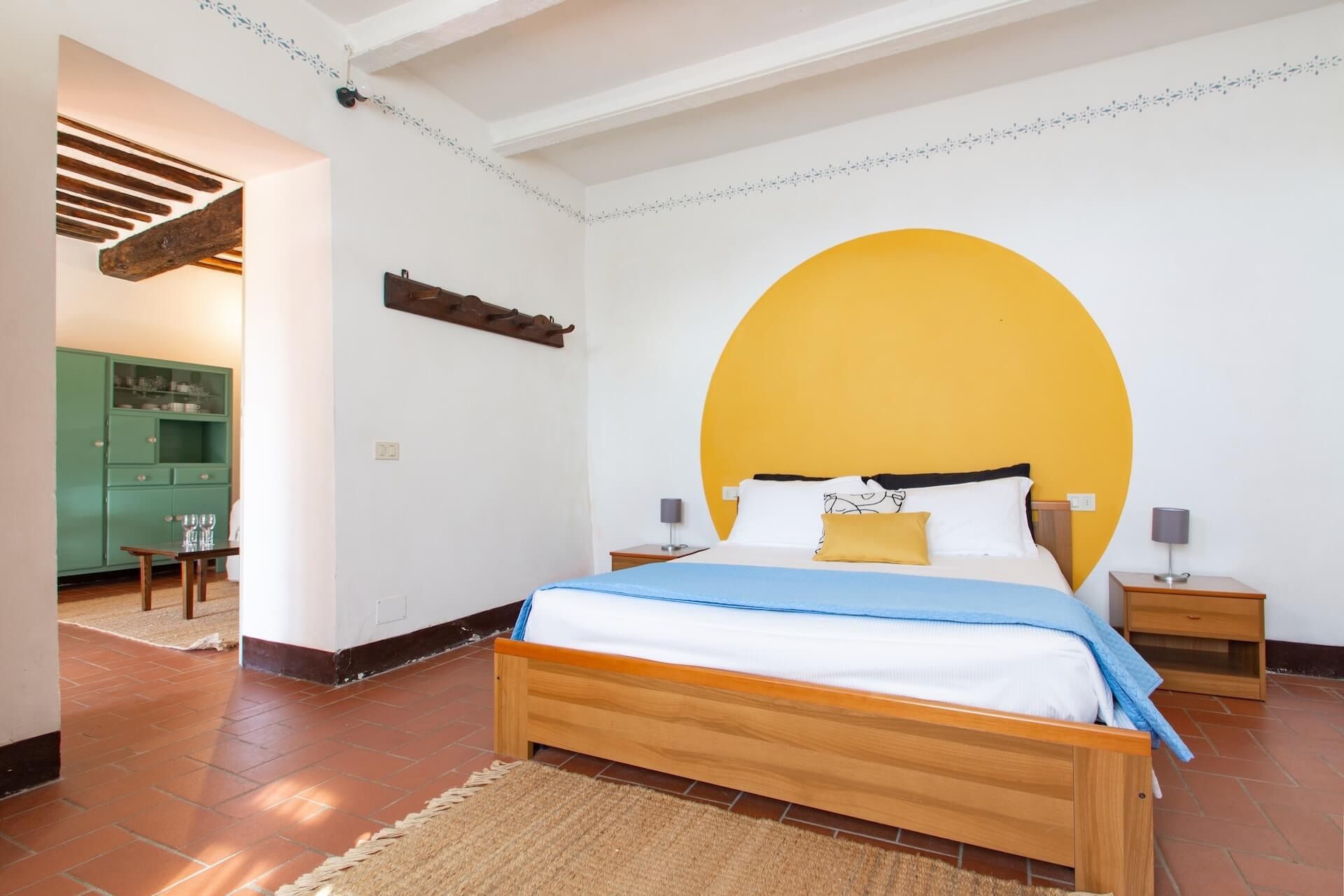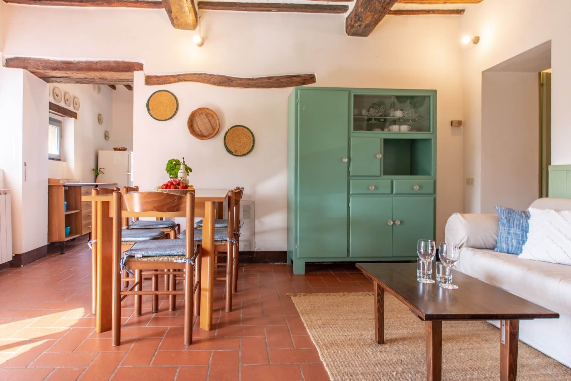This apartment is just a short walk from the medieval village of Paciano, where you’ll find a selection of local restaurants. It’s set in an old stone building with views over the Valdichiana Valley and Lake Trasimeno. Inside, it’s a little dated in places, but full of traditional charm, with wooden beamed ceilings and tiled floors. You’ll have access to a shared pool and garden with walking trails, plus your own bit of outdoor space with a dining table and veranda. At full capacity, one guest will sleep on the sofa bed in the living area, which might be a bit snug – but the setting more than makes up for it.