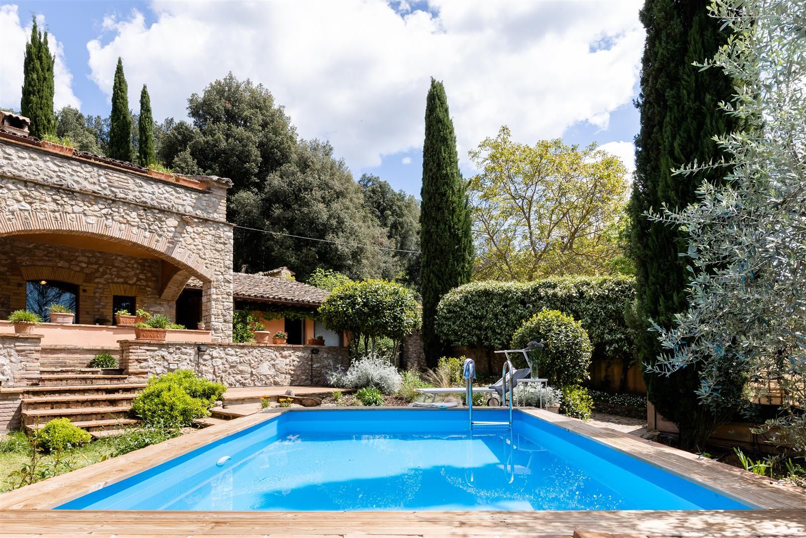 Fancy a peaceful escape to the heart of the Umbrian countryside? This 18th-century farmhouse should do the trick. Made up of a main house and an annexe, with multiple kitchens and dining rooms, it's perfectly suited to families or groups travelling together. In the lush gardens, you'll find an outdoor pool, and on the terrace, there's a dining table and a pizza oven – perfect for authentic Italian dinners under the stars. From here, it's a short drive to local towns and villages like Todi, so you can explore Umbria and be home for a glass of wine before sundown.