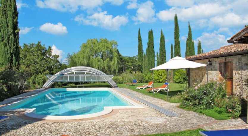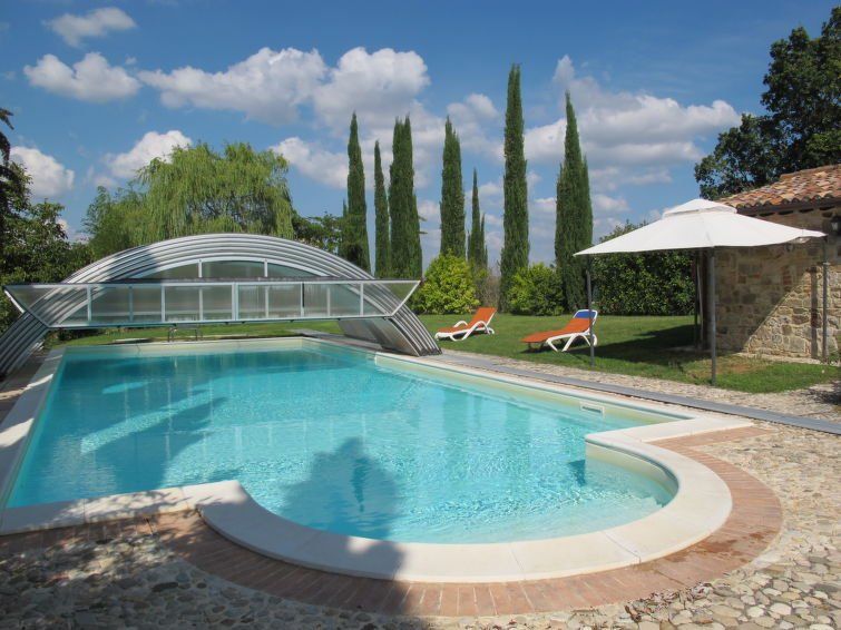 Everything very spacious: room, kitchen, terrace, barbecue, property, pool and view.