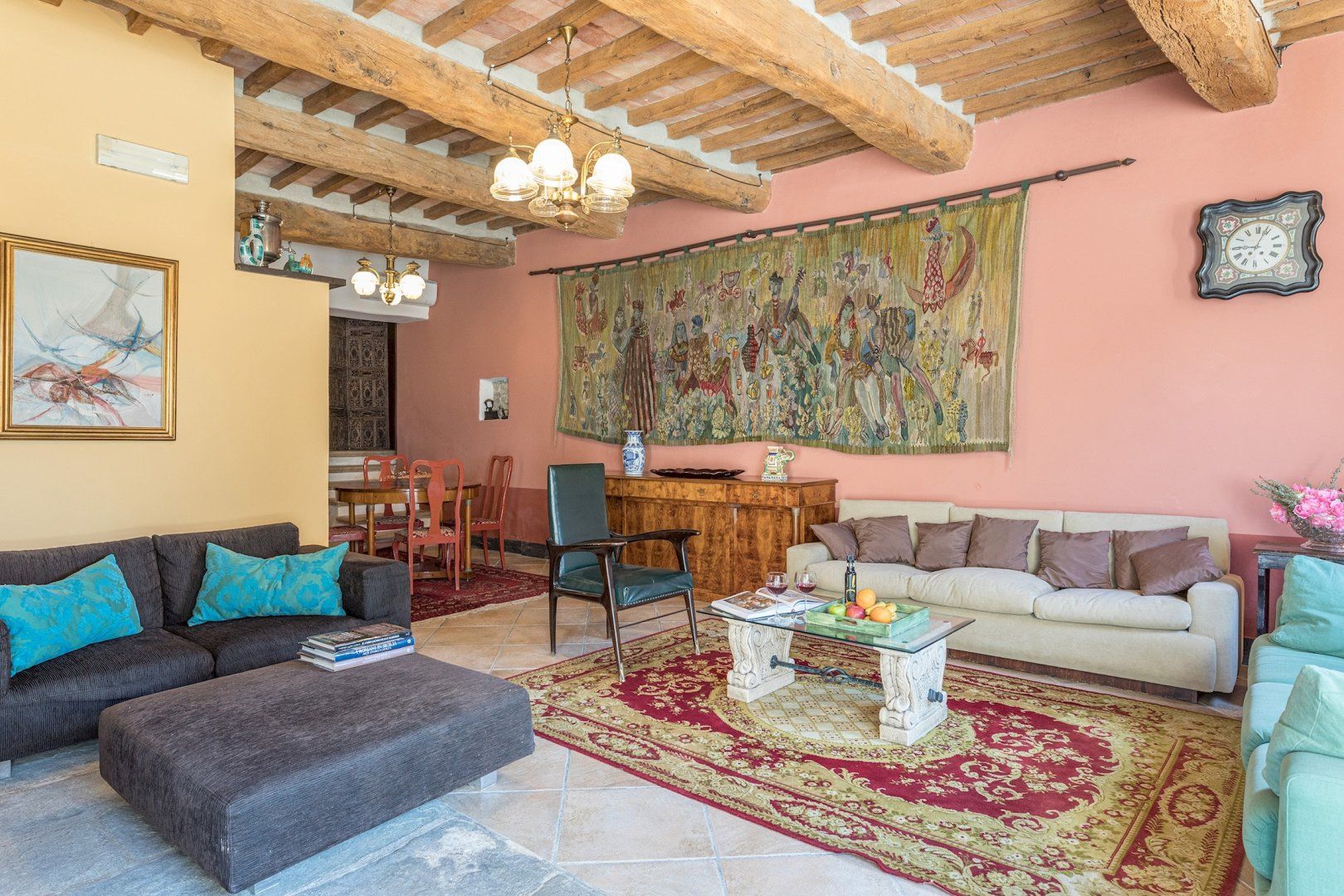 Accommodation is split between three separate buildings set around the courtyard. Two annexes have their own kitchenettes, living rooms and dining area so the group can spread out. The main villa is home to myriad antique-filled lounges and living rooms, including a striking main lounge set around the ancient hearth. Low, wood-beamed ceilings and old agricultural tools on the walls give that rustic farmhouse feel. A little games room invites guests to sit down for a game of chess or to peruse the library of books in here. But the real bonus inside is the dedicated celebration room which is a vast, barn-like space which can be set up for dining, dancing or even a spot of yoga.