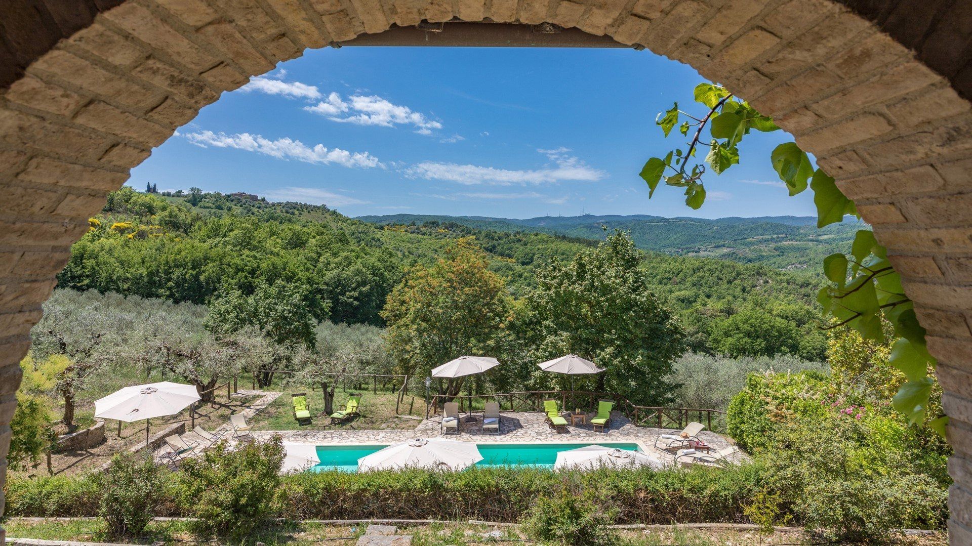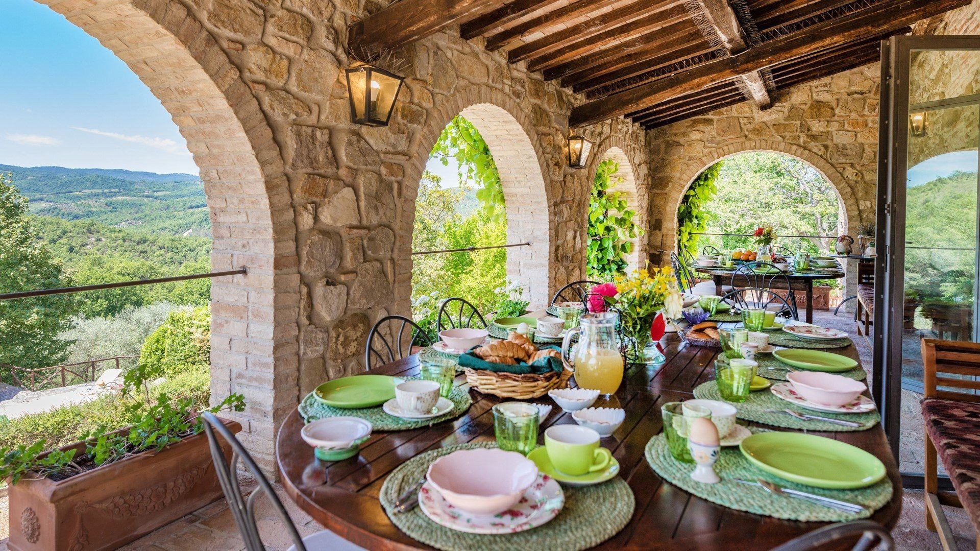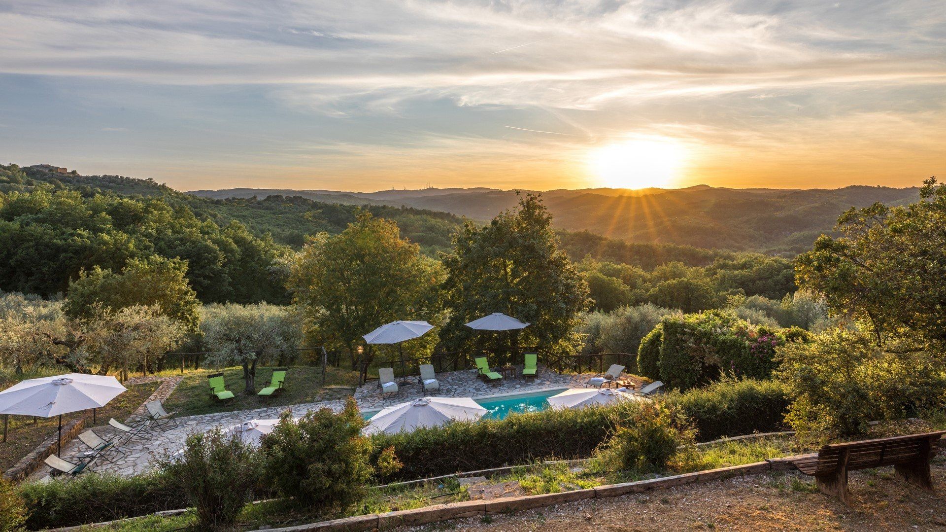 The yard, where wheat was once threshed by hand, is now home to a smattering of chairs and tables for tipples in the sunshine. The porticoed upper terrace is the perfect spot for breakfast, or big barbecue lunches, with views of the 22-hectare estate. But the crowning glory of the gardens has to be that Roman-style swimming pool with its panoramic view of the countryside.