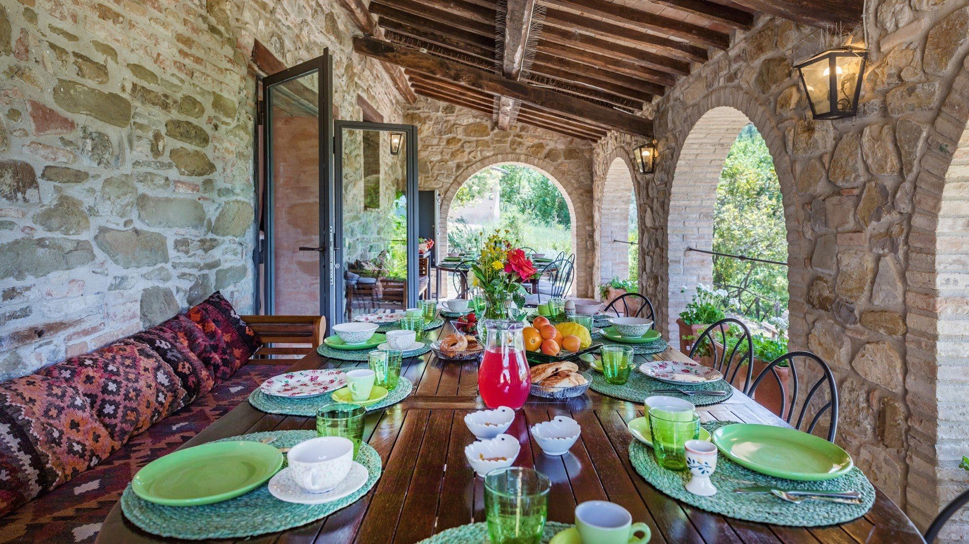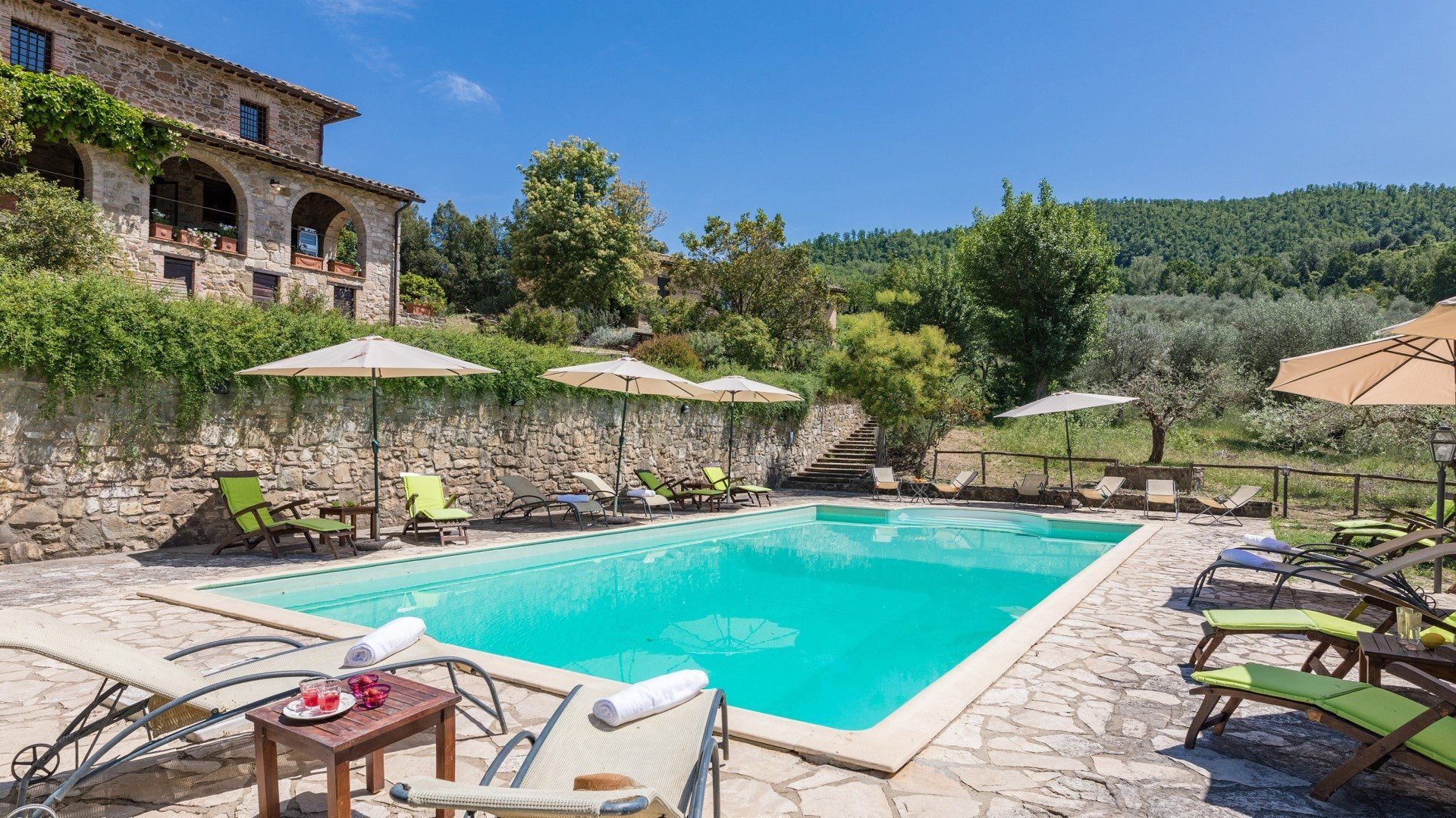 Sitting within a medieval borgo (little village) whose heyday was the early 17th century, this villa complex embraces old-world Umbria. It’s pure peace and quiet out here between the endless olive groves (extra virgin olive oil is the region’s speciality) and rolling hills covered in a patchwork of fields. It’s five kilometres to Monte Castello di Vibio with its ancient theatre and fifteen kilometres to the pretty town of Todi for restaurants and supermarkets.