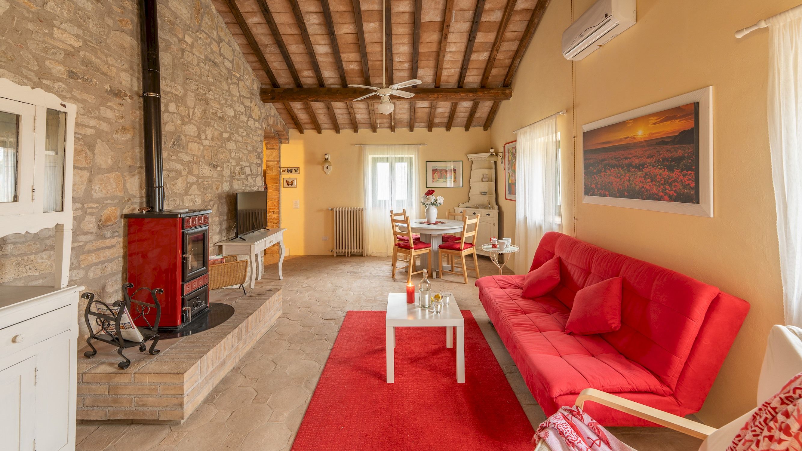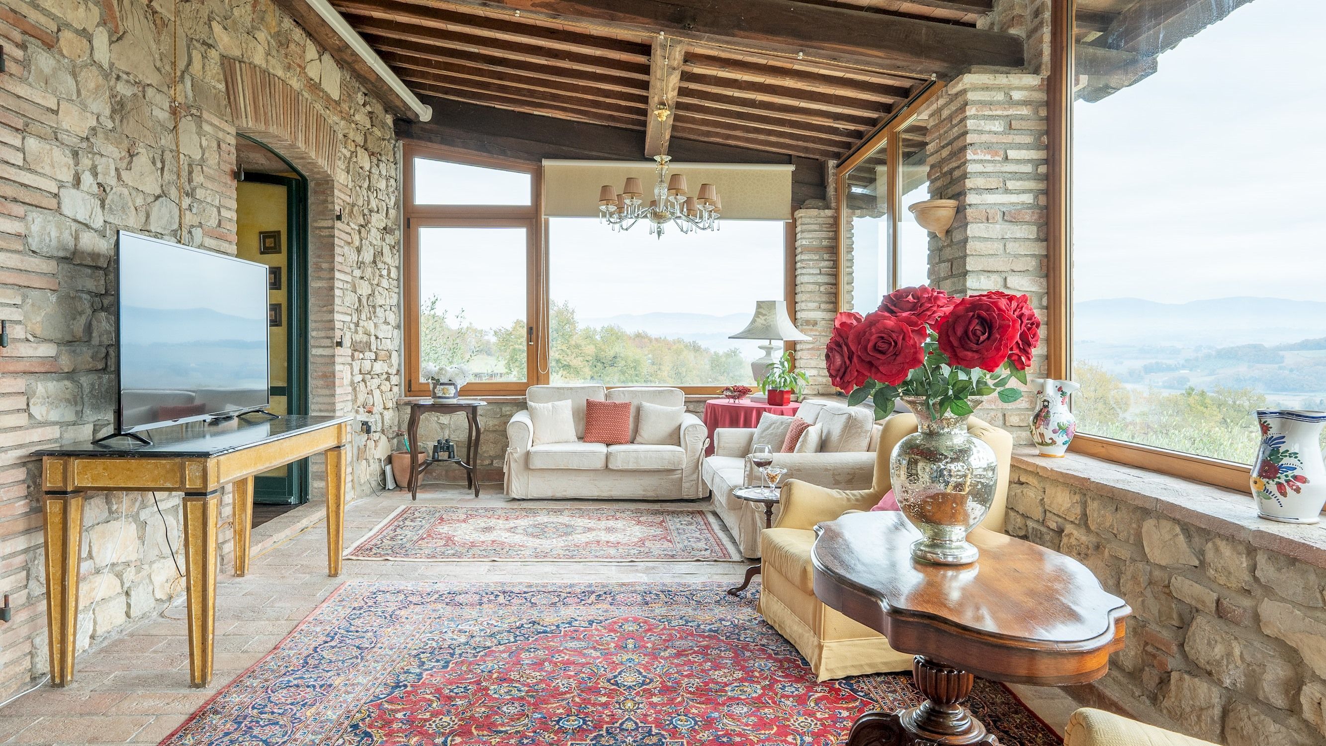 Traditional and cosy, this villa has all the hallmarks of an Umbrian getaway. The private pool is open in the summer and boasts panoramic views of the surrounding hills. Indoors, there's plenty of character to admire – the home was built in 1616, after all. Our favourite spot is the conservatory-style lounge, with its large windows showing off the scenery. Two bedrooms are located in a separate annexe, making it ideal for those wanting a bit more space and privacy. As for location, you'll be based near the medieval village of Monte Castello di Vibio and within easy driving distance of Todi, Perugia, and Orvieto.