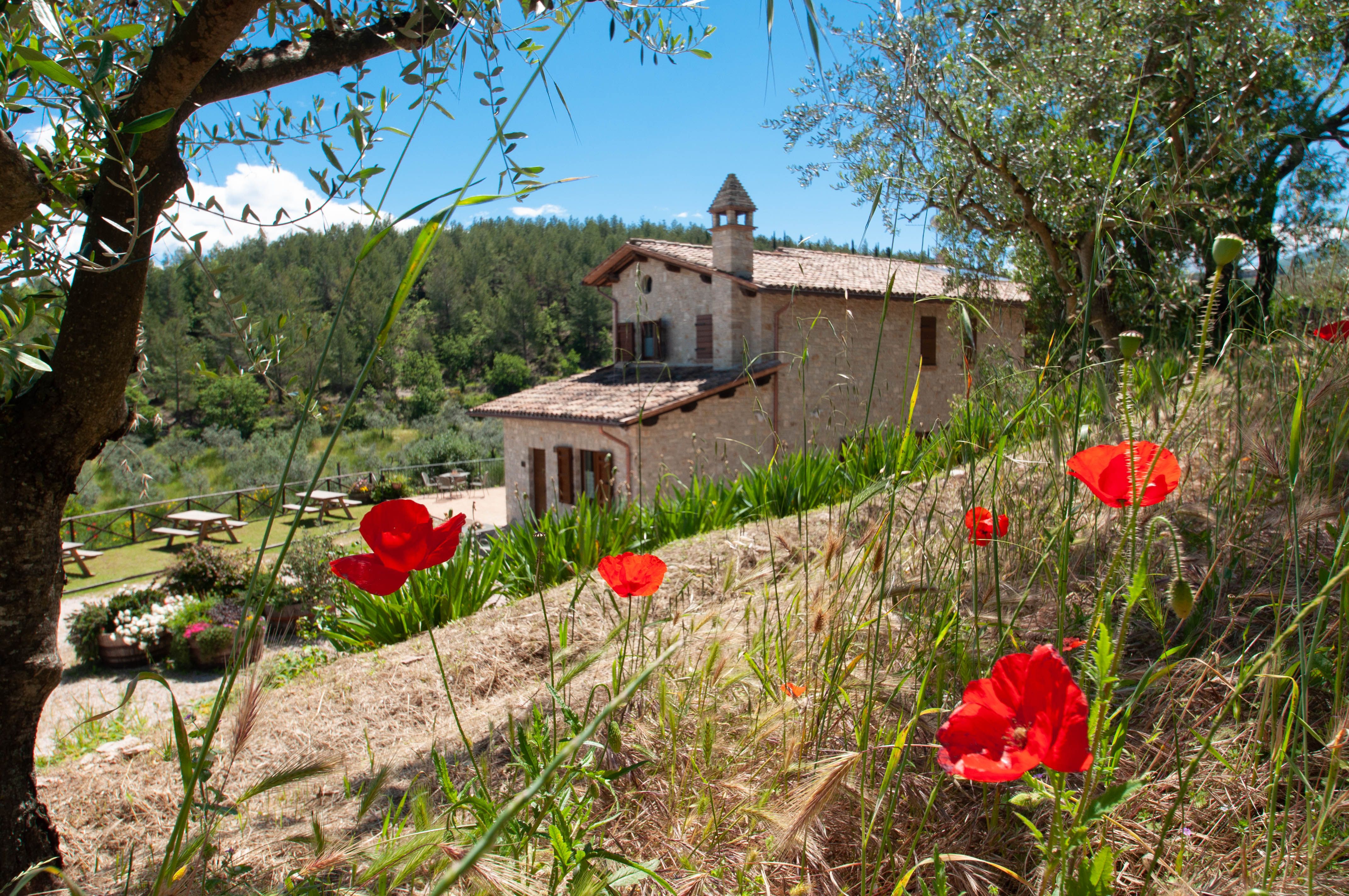 Swim under starry skies in the shared swimming pool. Dine alongside sprawling countryside views. Bask in the sun surrounded by manicured gardens. All of this and more is on offer at this home in the heart of Umbria. Contemporary and stylish, this apartment offers everything you could need for a comfortable stay. And, while the kitchen is on the smaller side, it has everything you could need for whipping up a light bite. That said, with local bistros and bars just a short drive away, you'll have lots to choose from. All things considered, this home is ideal for a romantic escape or solo retreat in Italy.