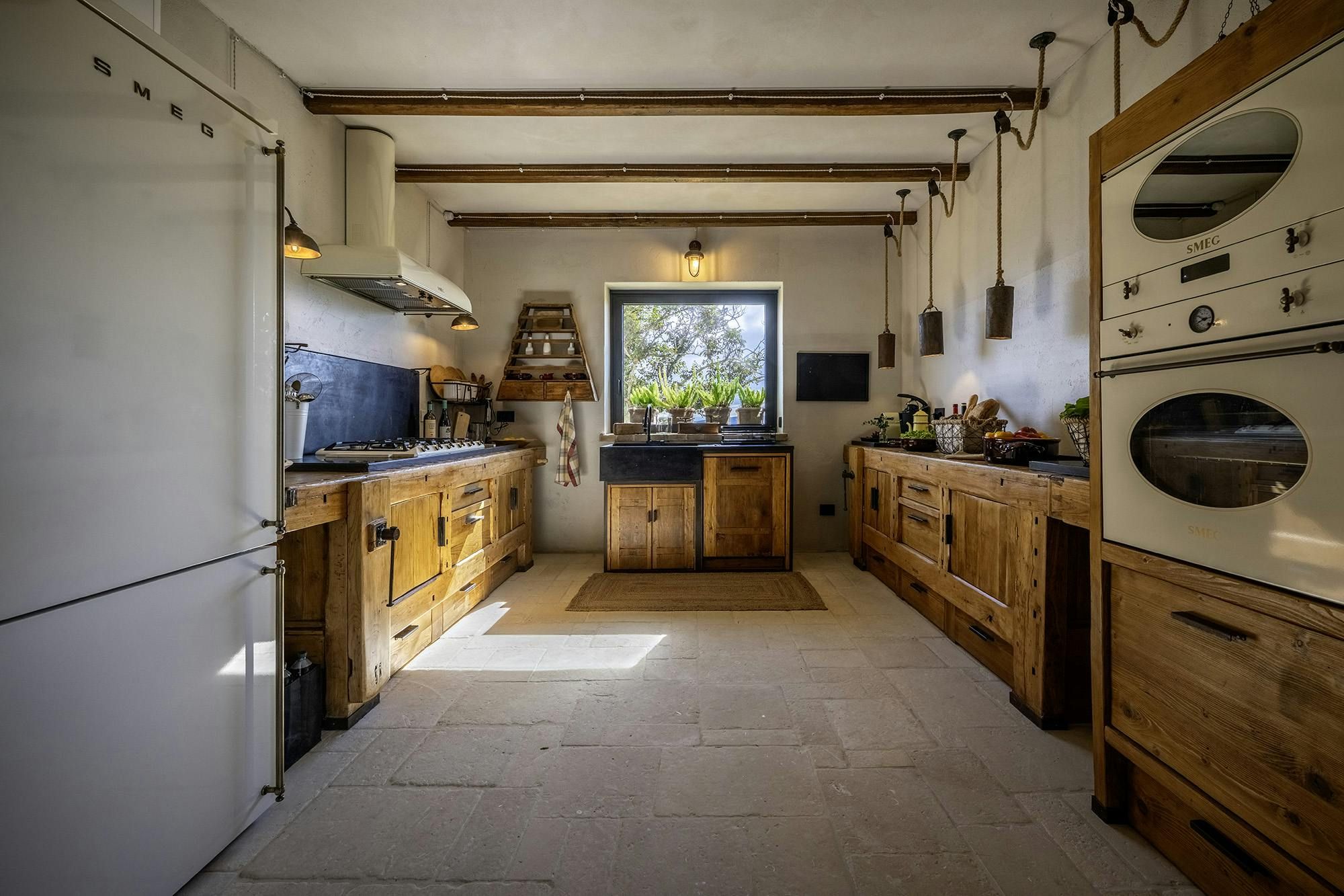 A special stay awaits at this villa in Umbria. It’s in the tiny hamlet of Montegiove, close to the sleepy village of Montegabbione – the perfect setting for a tranquil getaway. Perched on a hillside, the house offers sweeping views of the surrounding countryside, best enjoyed from the patio and pool. Inside you’ll find another swimming pool (heated for year-round comfort), along with elegant bedrooms that all open to the garden. We love the open-air kitchen too, where you can cook up an alfresco feast while sharing a glass of something from a local vineyard.