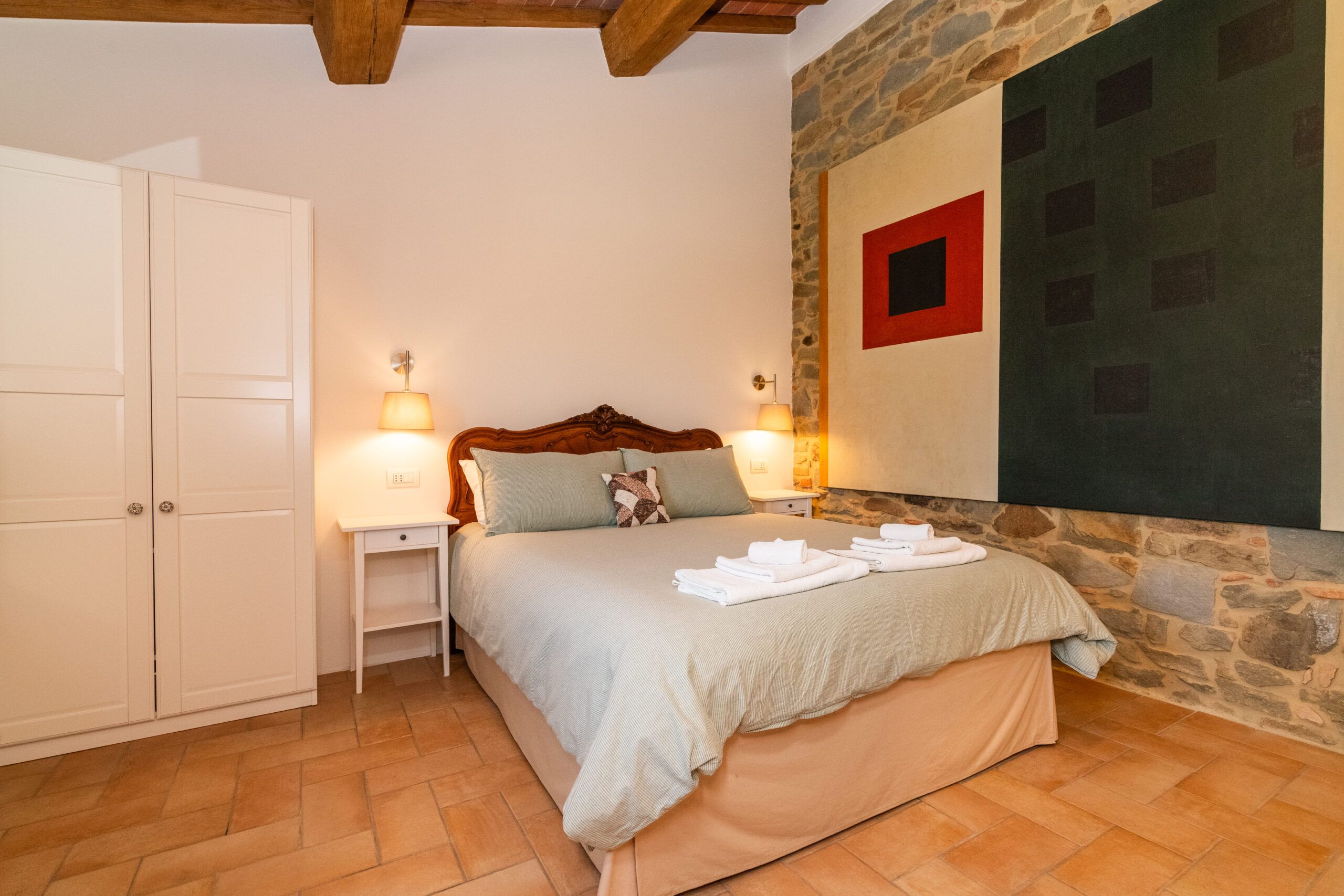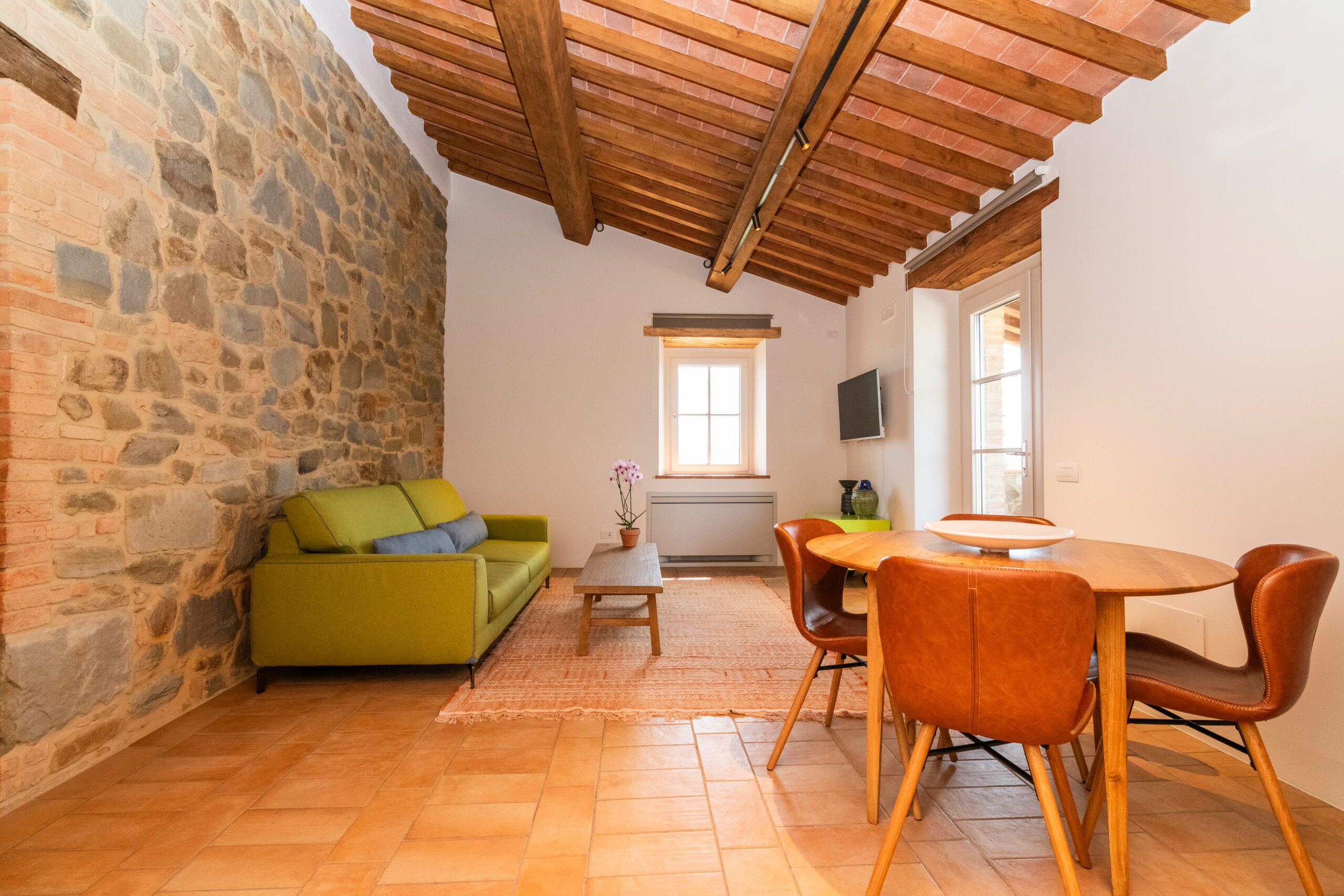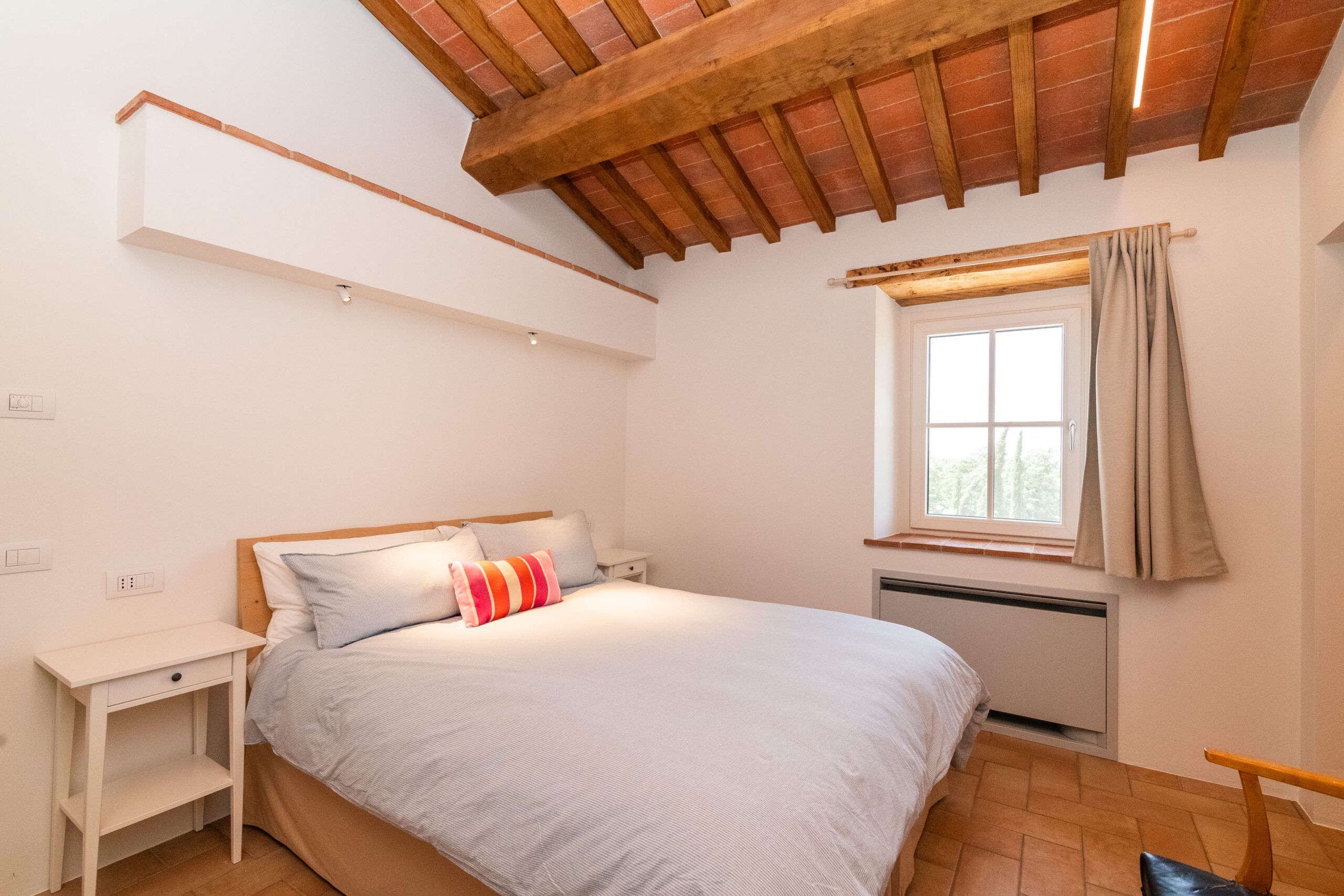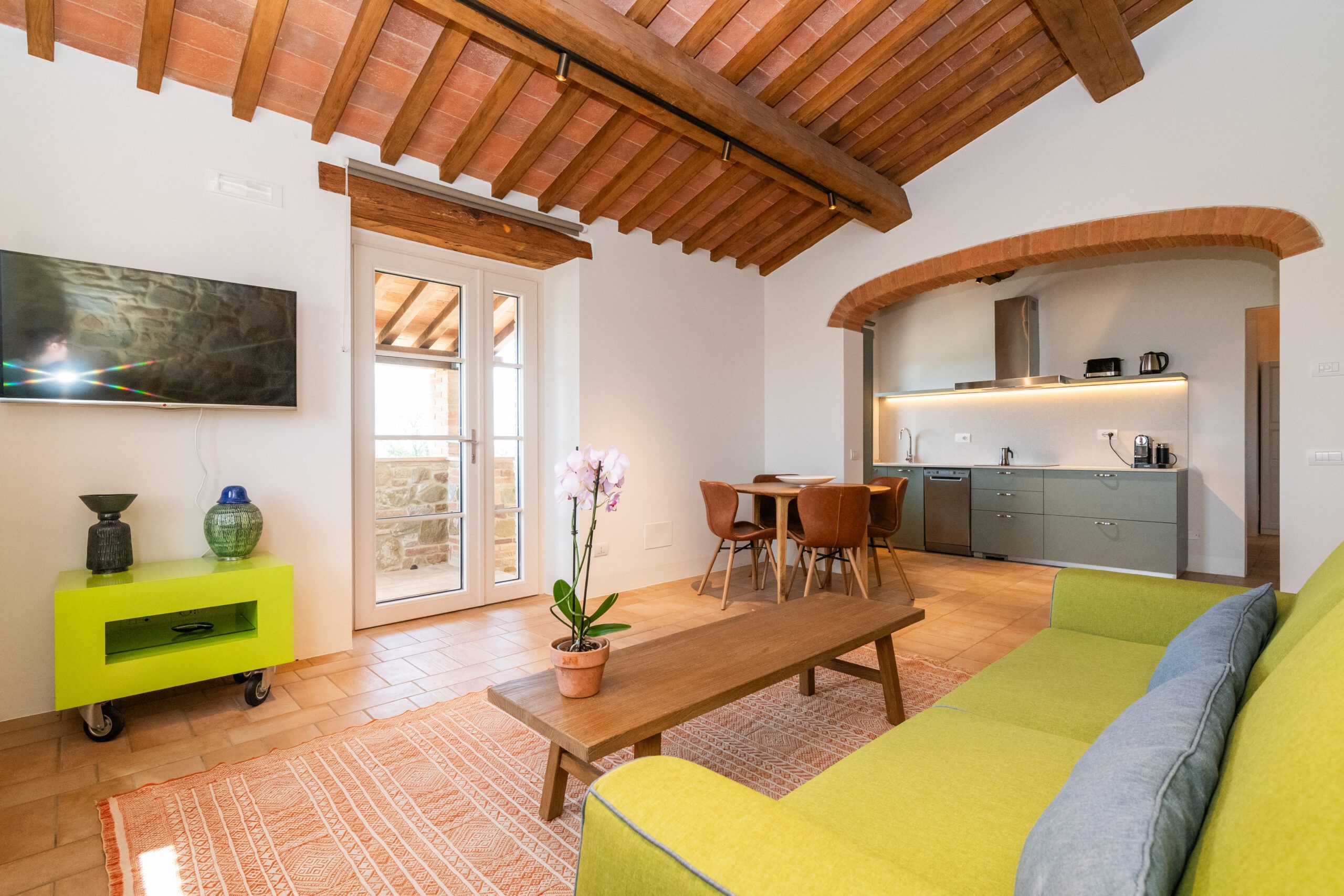 Set on an expansive 27-acre estate in the peaceful Umbrian countryside, this home benefits from the hosts' passionate care for the 18th-century villa and its surrounding grounds. The modern amenities in this cosy apartment are welcome, but you can feel the history of the building, too, like the exposed wooden beams and stone walls. Although the open-plan living room isn't huge, you'll likely spend most of your time outside, whether exploring the vegetable garden, lavender fields, or olive groves (ask nicely and you might be able to sample some homemade olive oil). Cool off in the shared pool and then retreat to the patio with drinks at sunset to round off a dreamy Italian getaway.