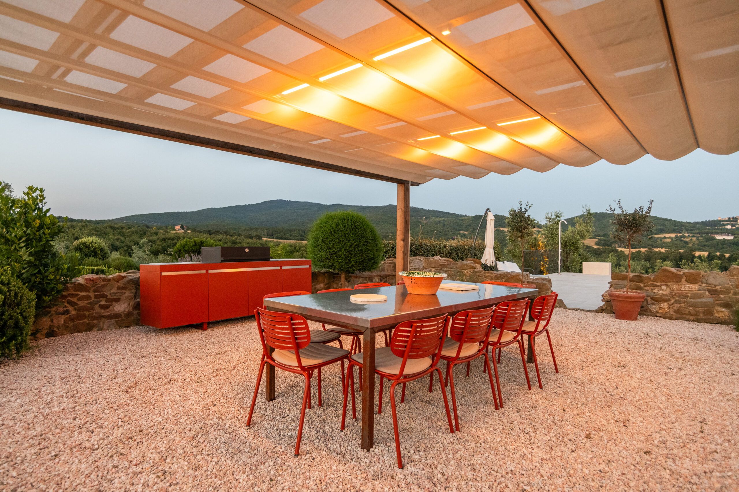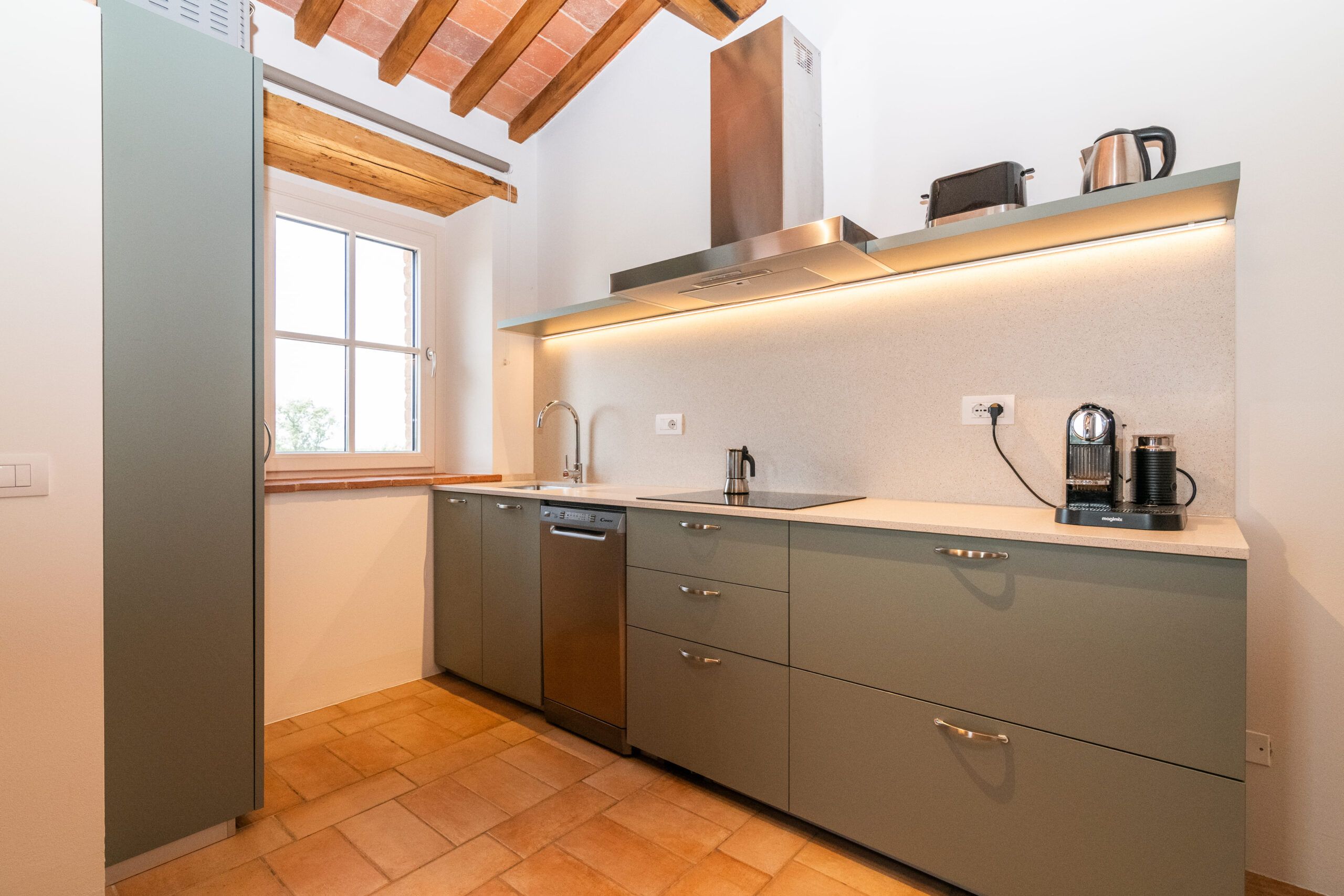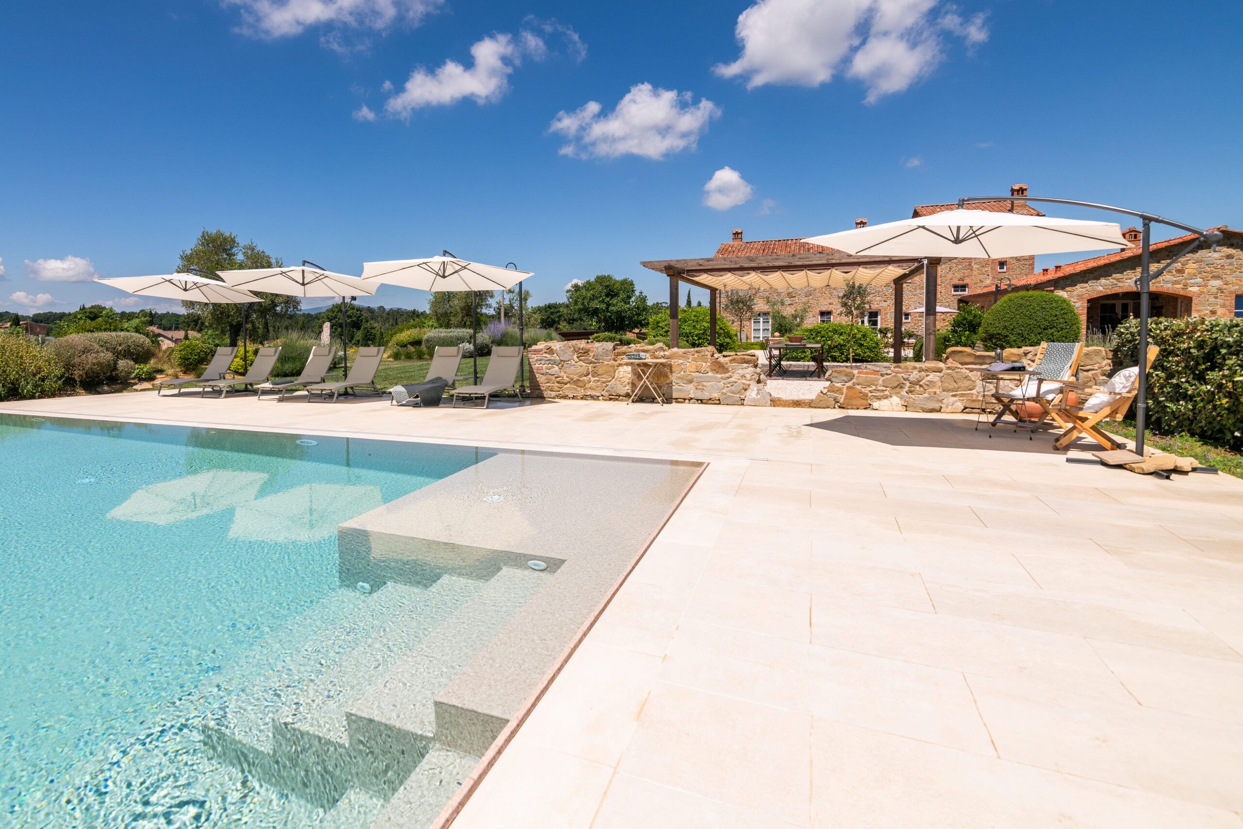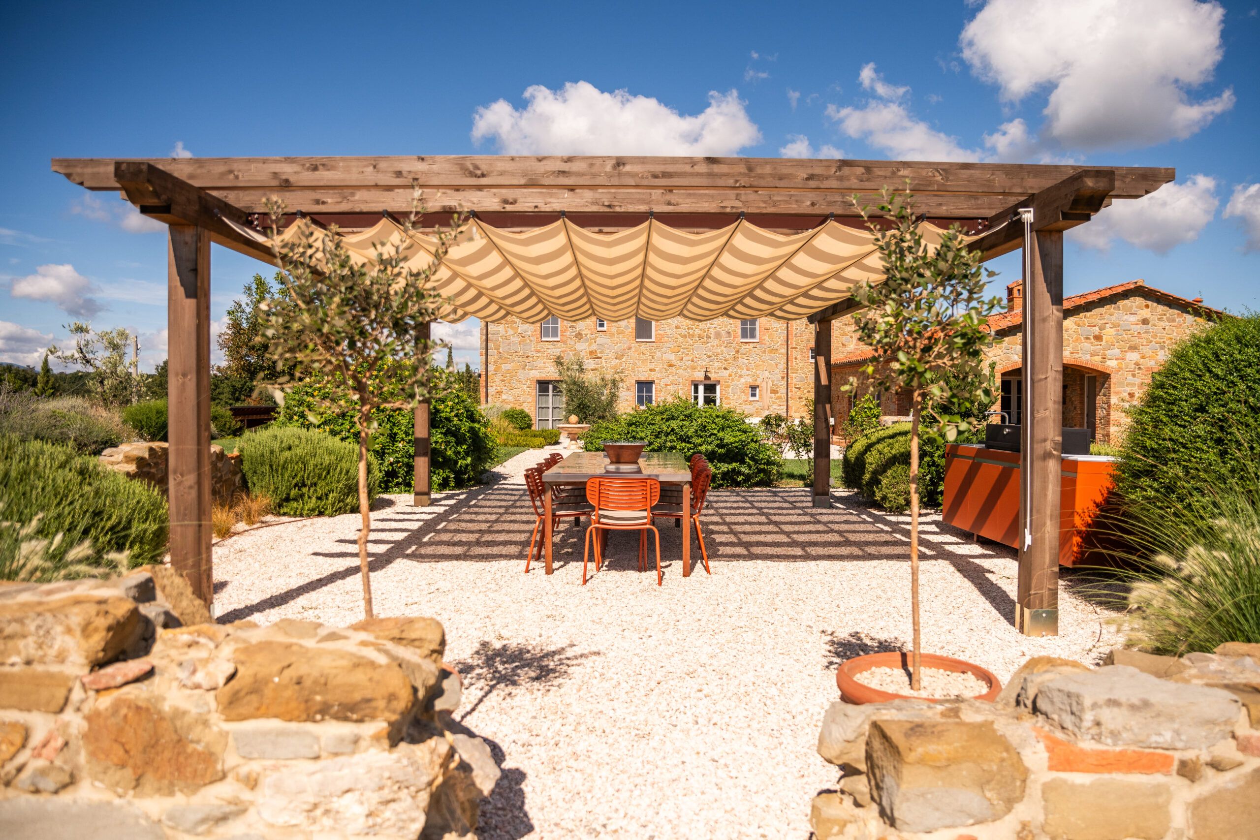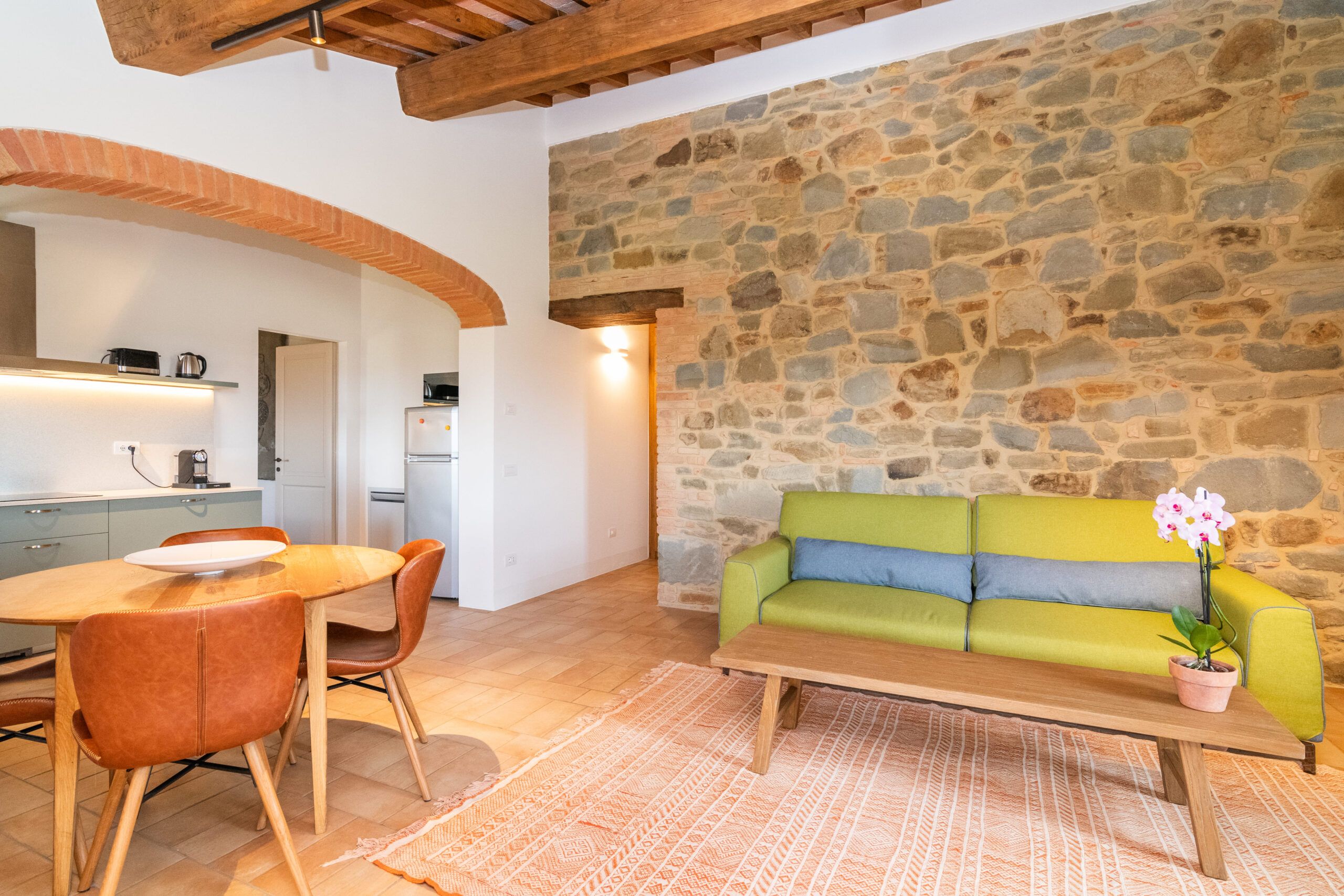 Set on an expansive 27-acre estate in the peaceful Umbrian countryside, this home benefits from the hosts' passionate care for the 18th-century villa and its surrounding grounds. The modern amenities in this cosy apartment are welcome, but you can feel the history of the building, too, like the exposed wooden beams and stone walls. Although the open-plan living room isn't huge, you'll likely spend most of your time outside, whether exploring the vegetable garden, lavender fields, or olive groves (ask nicely and you might be able to sample some homemade olive oil). Cool off in the shared pool and then retreat to the patio with drinks at sunset to round off a dreamy Italian getaway.