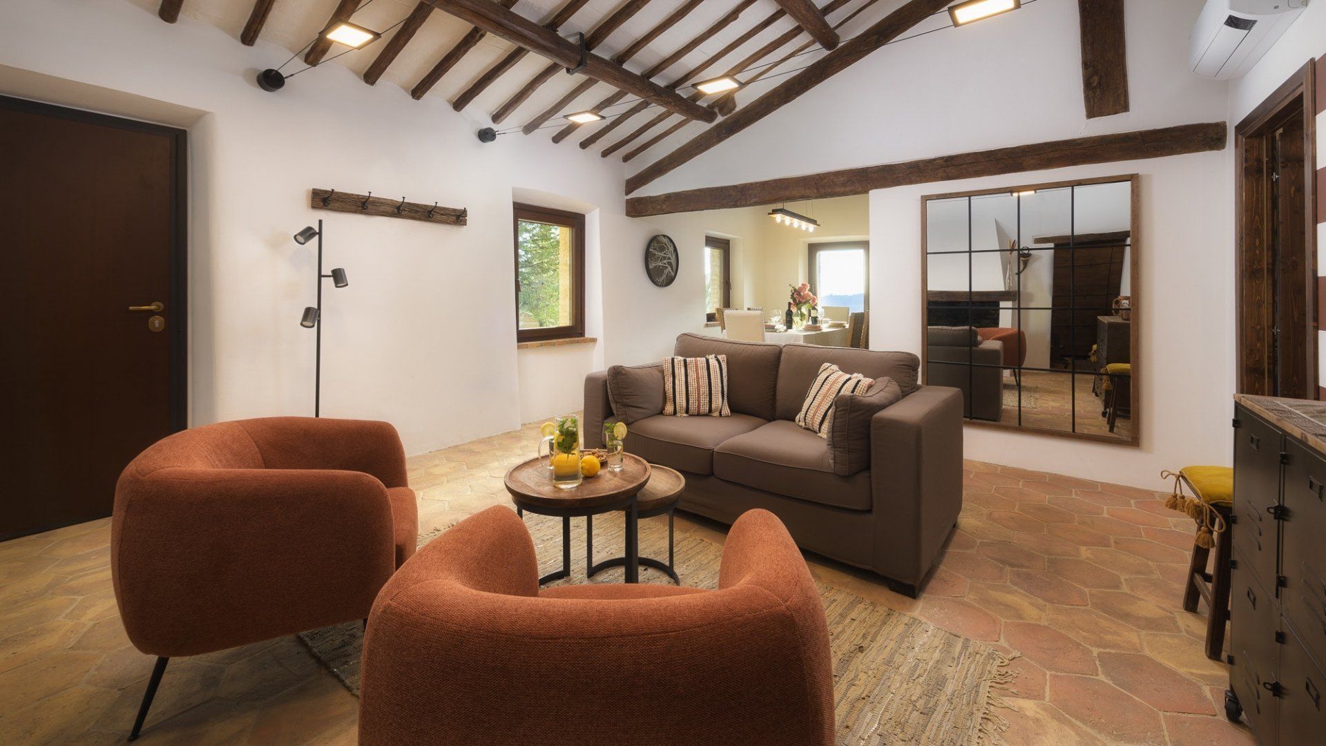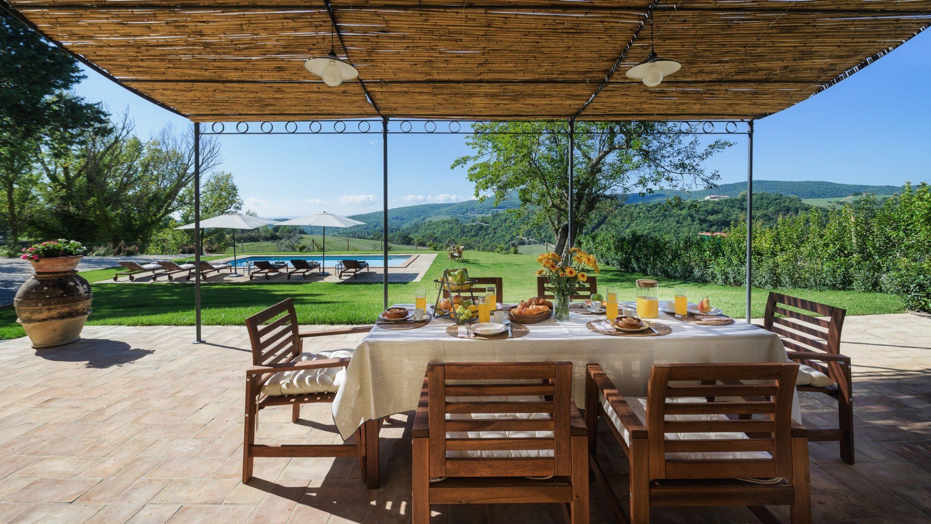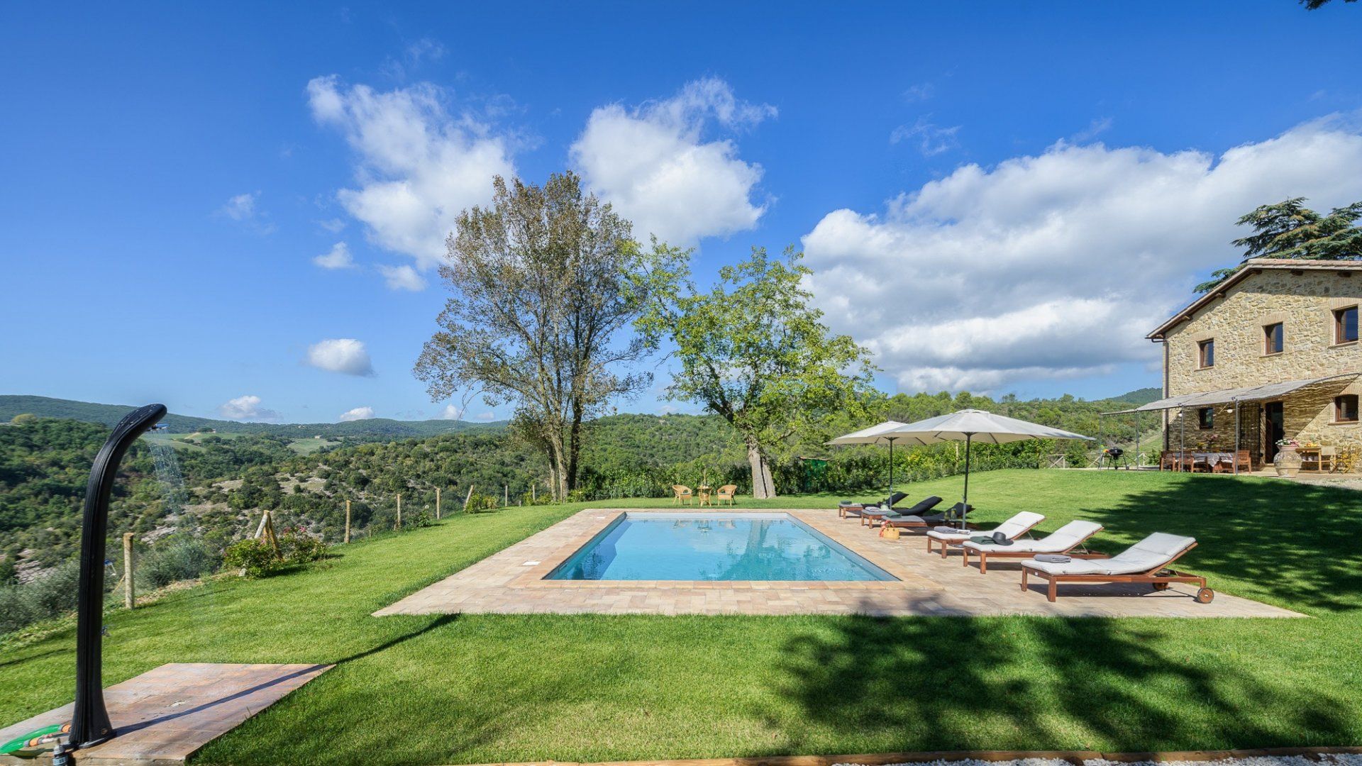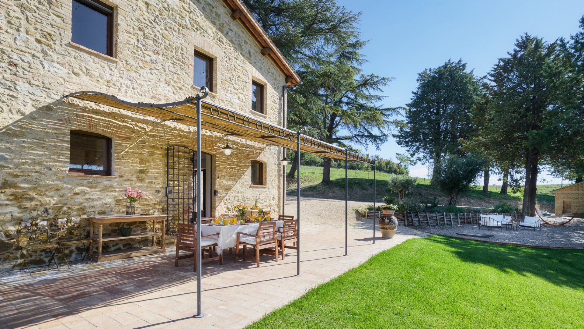 Mixing the old with the new, this characterful villa has traditional wood beams and terracotta floors to draw you in. Standing by the original fireplace, you'll start each morning in this soulful kitchen, preparing an Italian breakfast where you can indulge your sweet tooth. How about sitting at the sun-shaded table and dining alfresco with the ones you love most? Just across the lawn, perhaps you'd prefer to spend your downtime splashing around in the pool, or sitting beneath the dappled sunlight and discussing your daily itinerary.