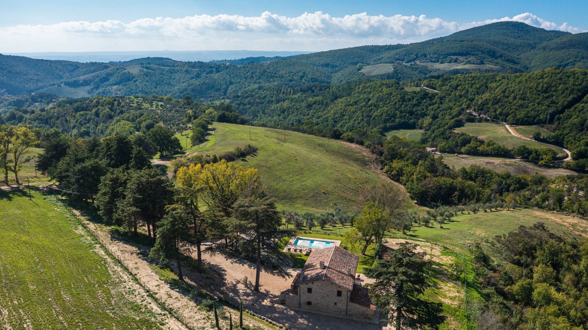 Perched in a privileged position with scenic views over the Umbrian countryside, this idyllic hideaway sits in the hamlet of Prodo. On your doorstep, you'll discover the nature reserve of Parco Fluviale del Tevere, where woodland trails and local vineyards await – as well as the Corbara lake. Or, if you fancy a nearby day trip, history lovers flock to Orvieto from far and wide to visit landmarks like the National Archaeological Museum.