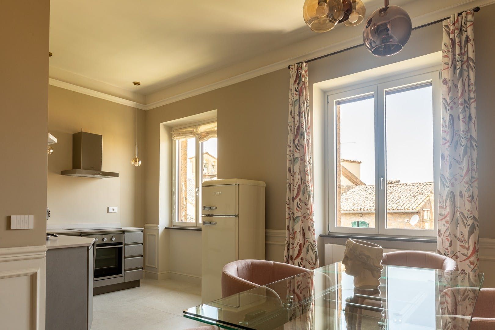 This home in a palazzo in Orvieto is a little bit special. The palazzo boasts a wonderfully central location, and looks out over the city and gardens. This apartment has two terraces, plus additional shared rooftop terrace reached via a fairly steep spiral staircase. If you can manage the stairs, though, you’ll be rewarded by the views, which stretch as far as the surrounding Tuscan and Umbrian hills. Inside, you'll get to enjoy the blend of modern and antique decor, which adds to the charm of this home.