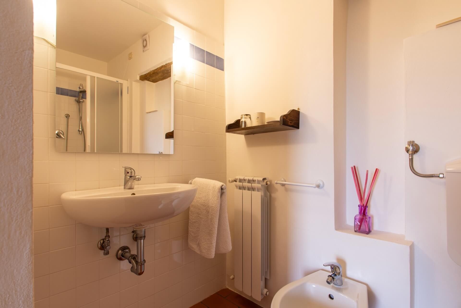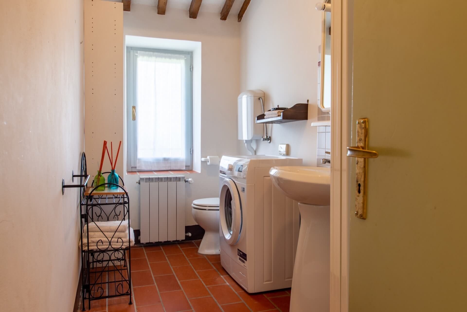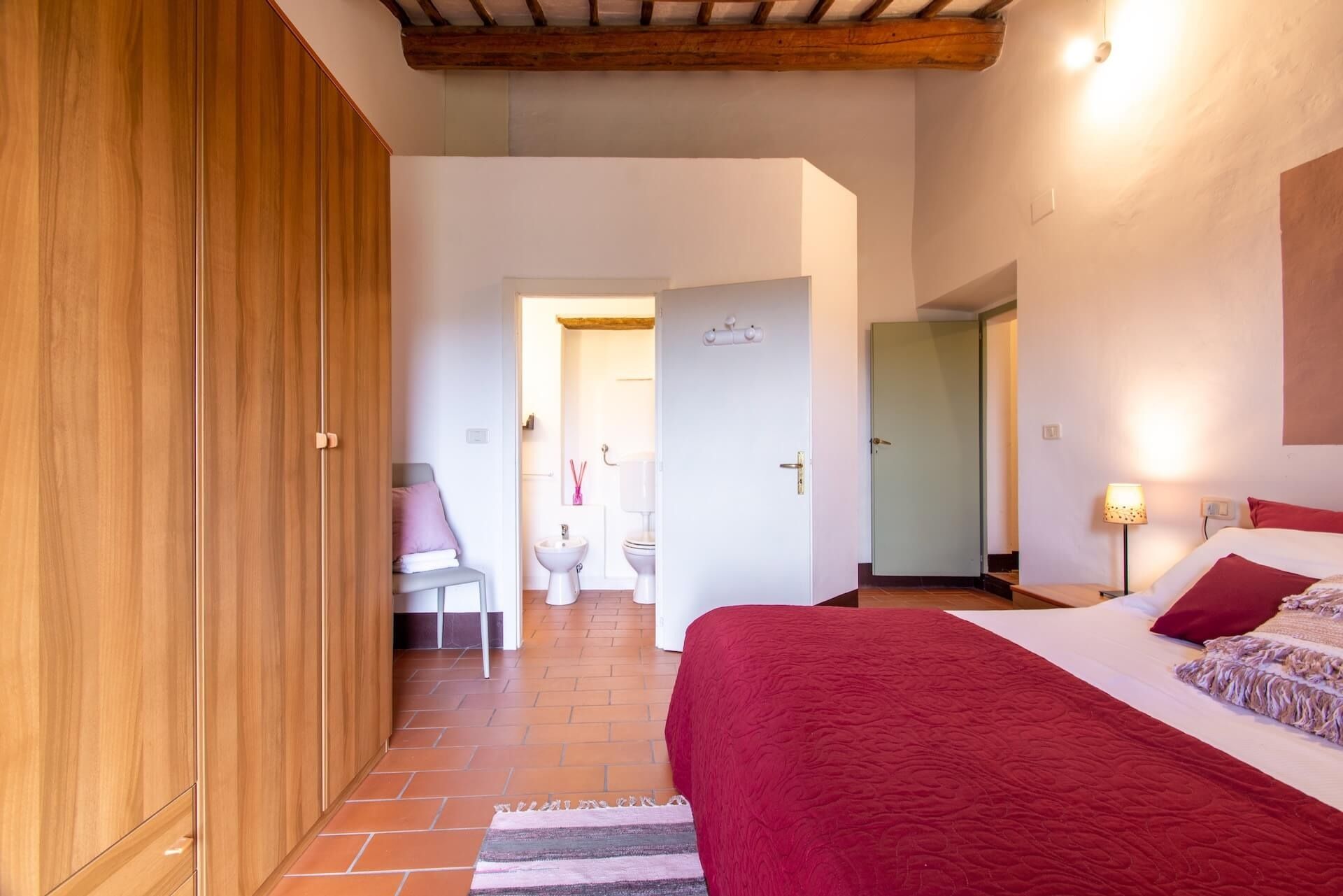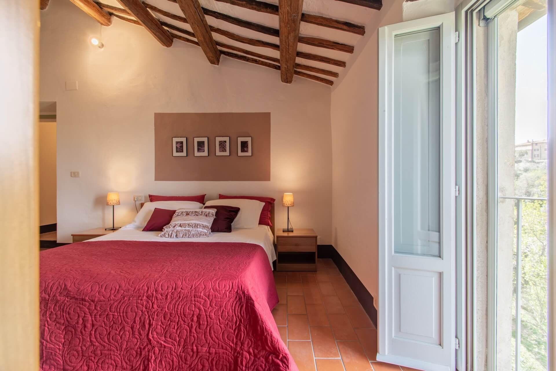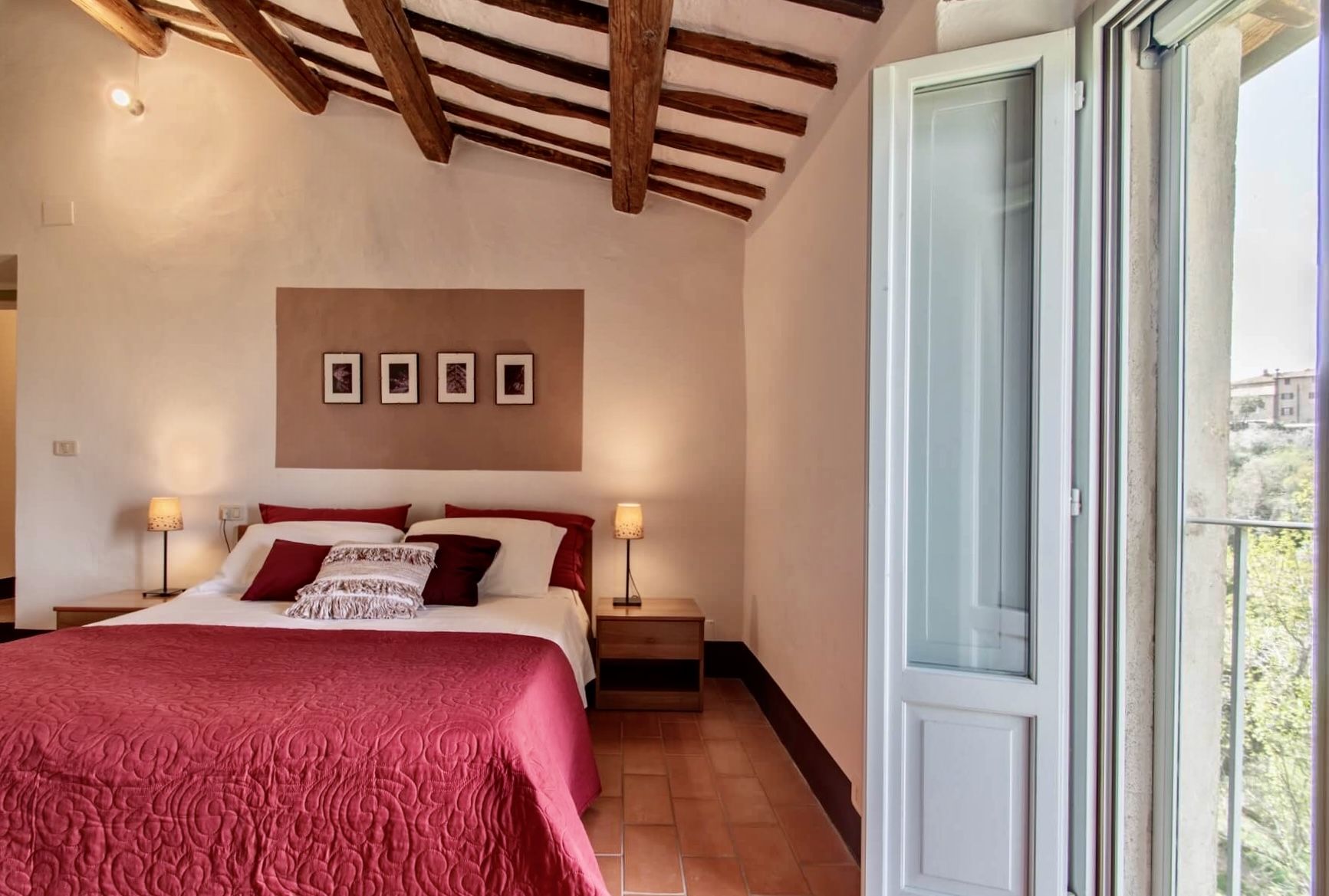 Nestled near Paciano on the border between Umbria and Tuscany, this home is in a charming spot. Lake Trasimeno is nearby too, which is a particularly picturesque place for a swim or a stroll. Back at the apartment, you’ll find everything you need to get comfy, including a characterful kitchen for homemade meals. There’s also a communal pool (perfect on sunny days), along with space to enjoy dinner and drinks in the garden. Or you could walk into the village, where you’ll find a grocery shop, bar, and a handful of local eateries.