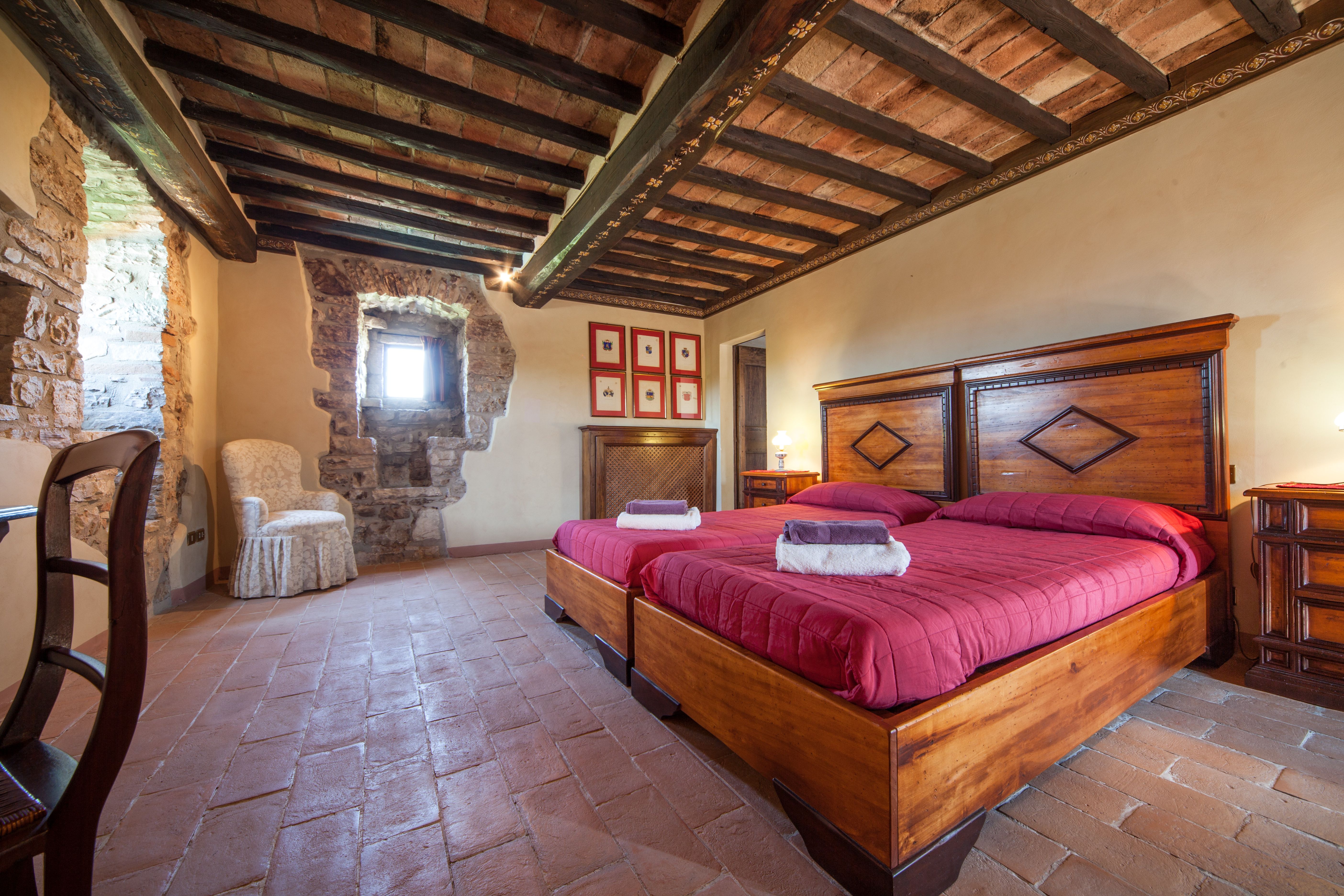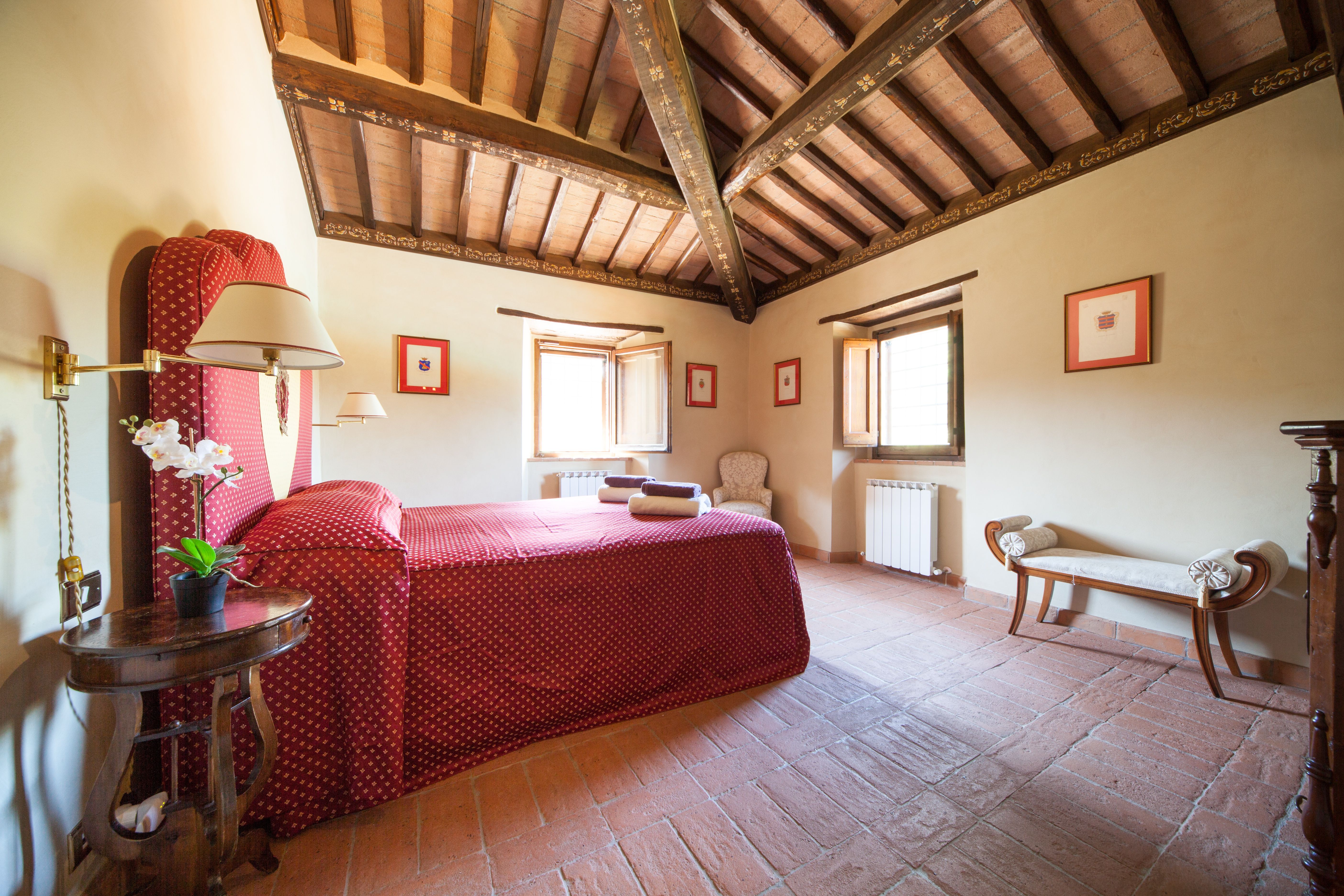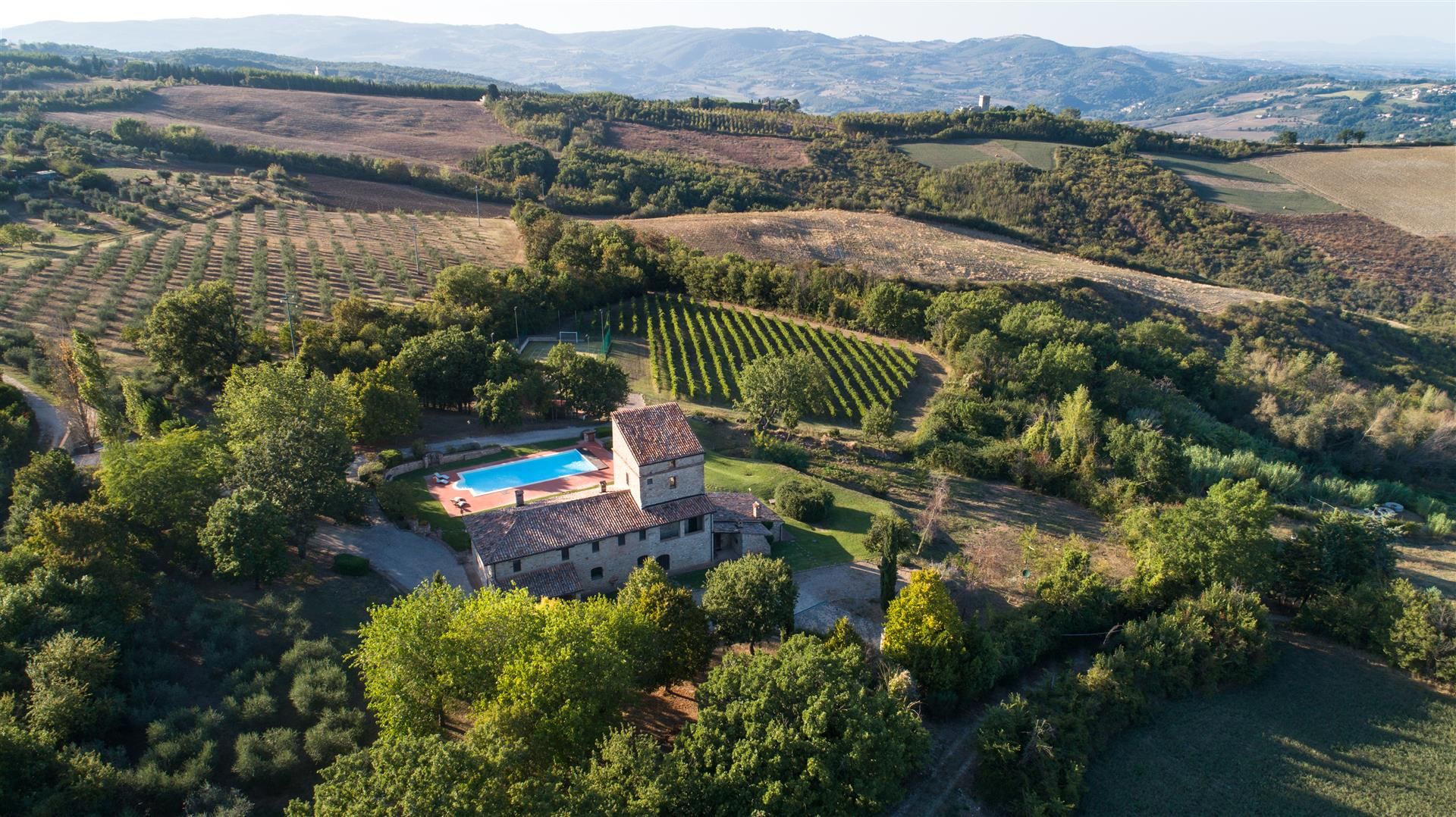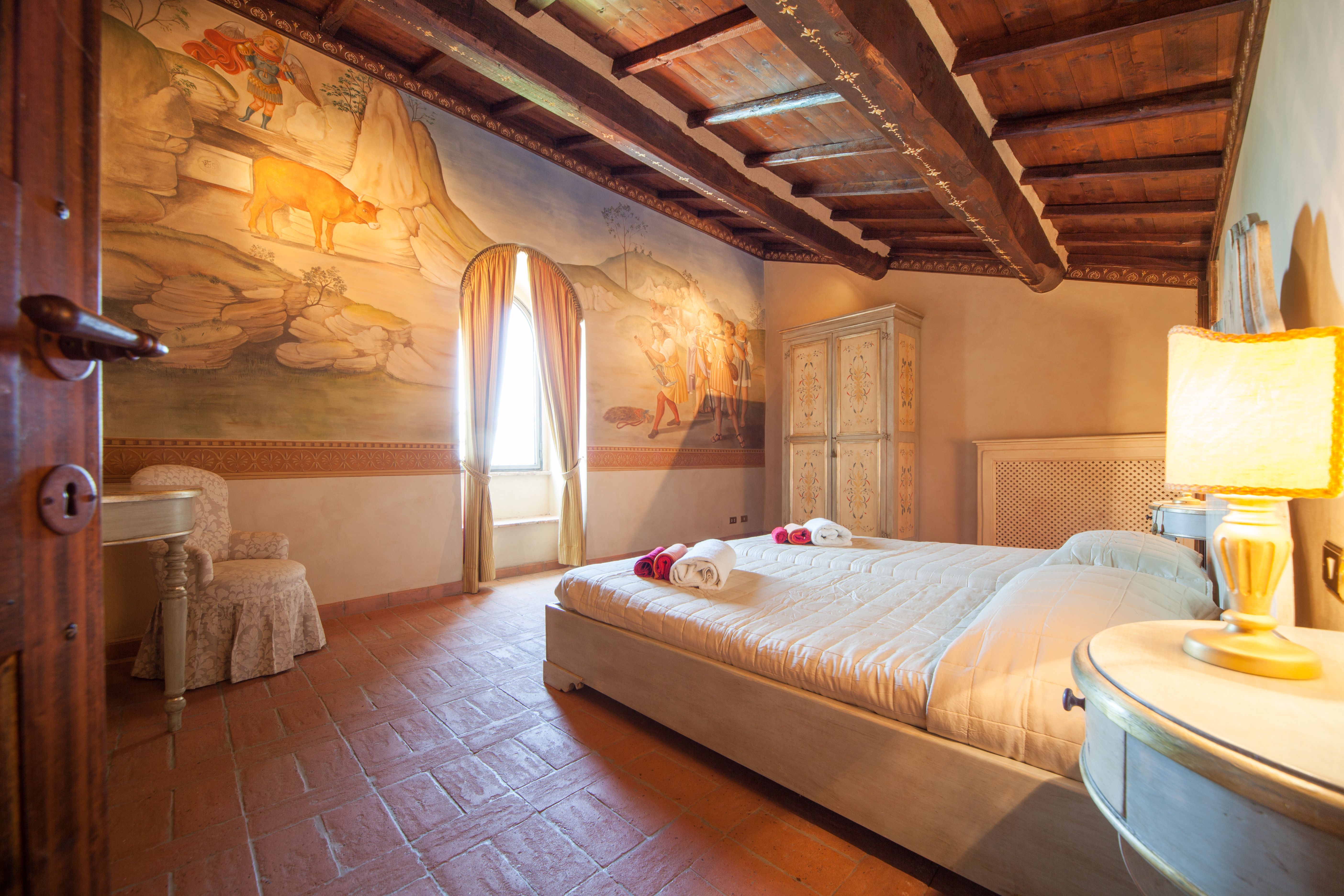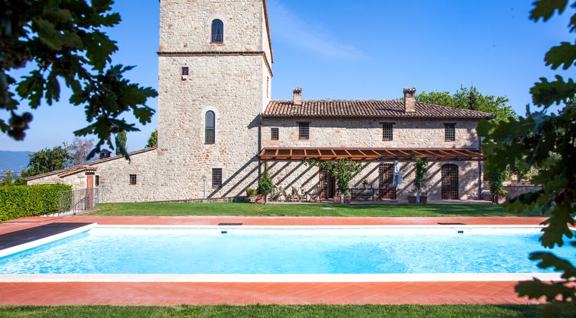 This home used to be a medieval watchtower dating back to the 14th century, but today it provides a rustic escape in the Umbrian countryside. We love the sweeping views of the countryside from the top floor, and the traditional living spaces are what you’d expect from a historic building – think brick archways and exposed stone walls. More active guests will appreciate the private tennis court, home gym and swimming pool, but it’s easy to relax here on a sun lounger with a book, too. When you’re ready to explore, the hilly village of Todi is a short drive away, where you can hike up to see its famous domed church.
