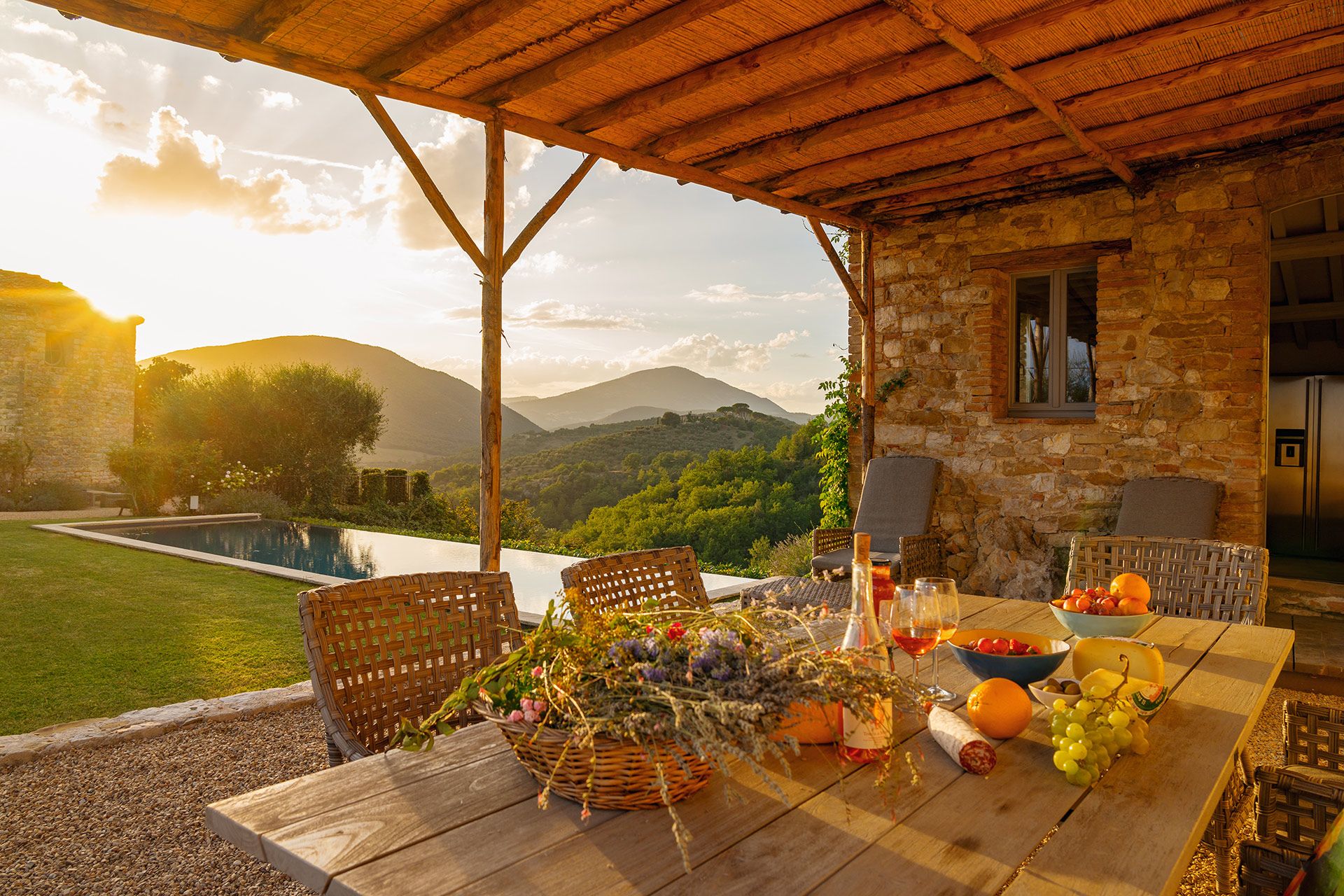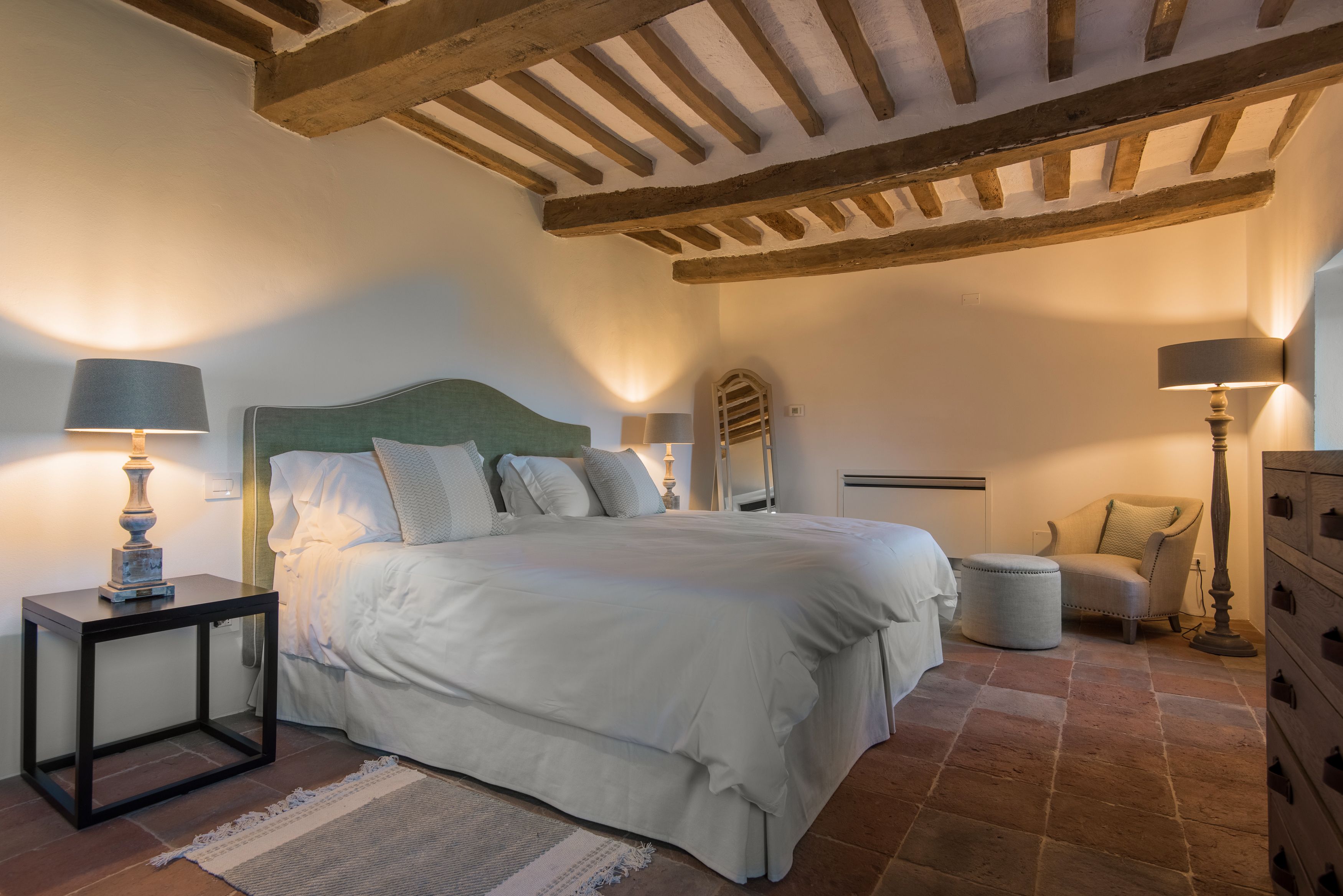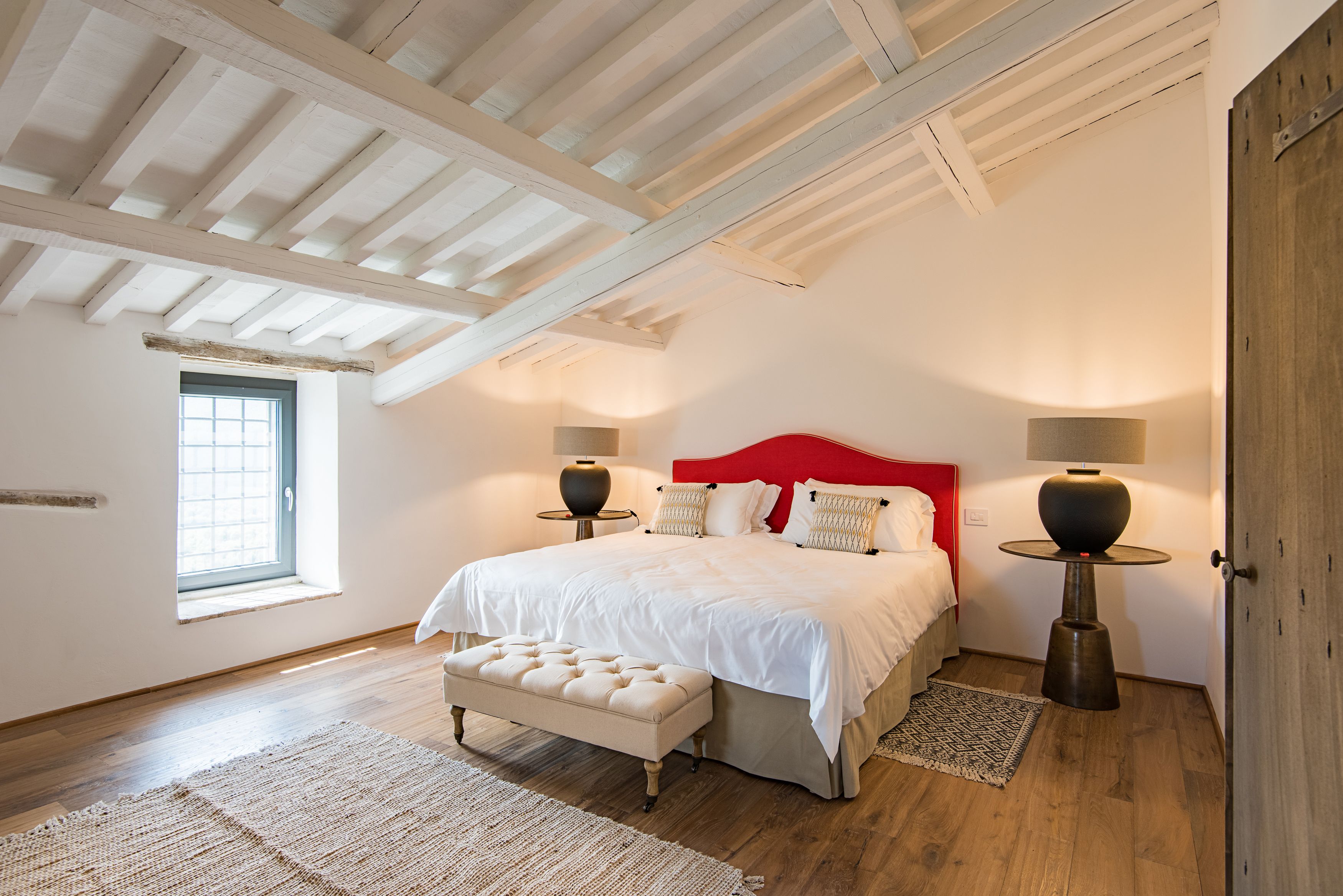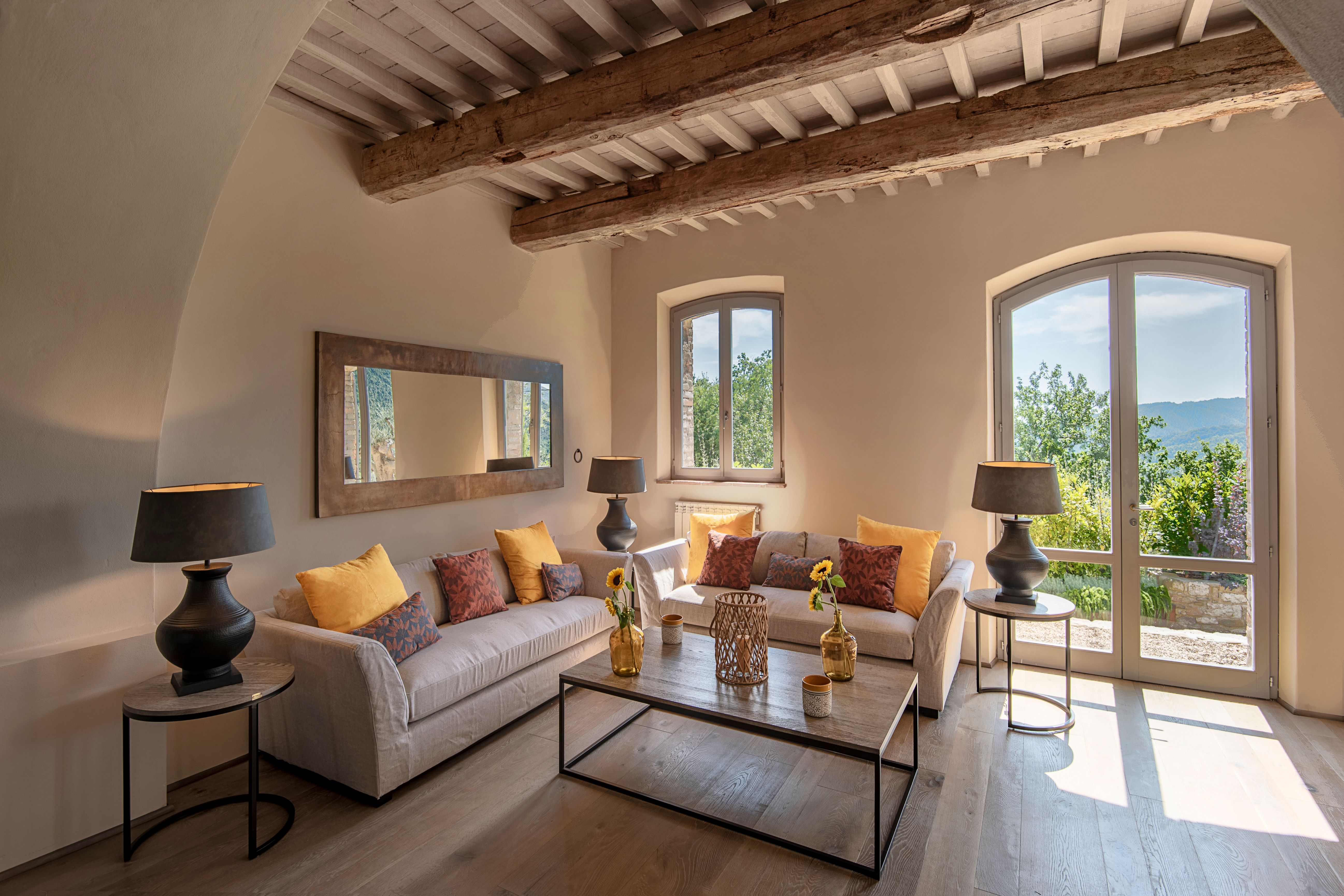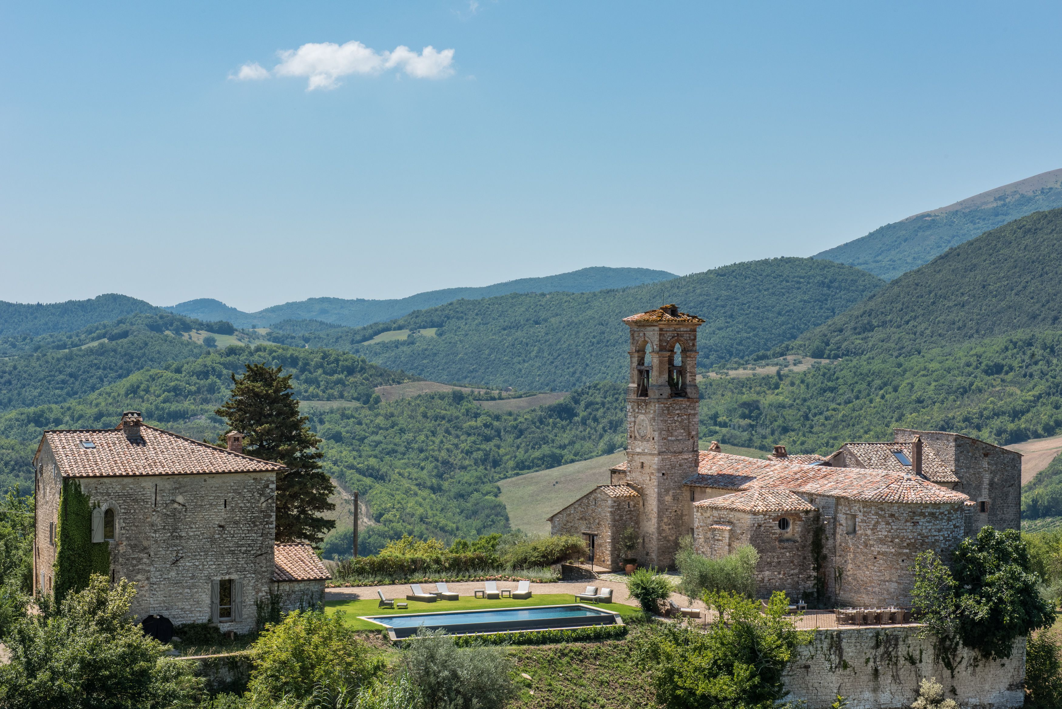 Here’s a home we really love – an ancient castle in the Umbrian countryside, transformed into a luxurious villa. Set on a vast estate among rolling hills and olive groves, it’s a perfectly picturesque place to relax, and just a short drive from pretty Perugia. With rooms spread across the main house and a separate guest house, it offers plenty of space for a group getaway or celebrating a special occasion. Speaking of which, there’s an 11th century church here which can host weddings and other events, providing an enchanting venue for a memorable day.
