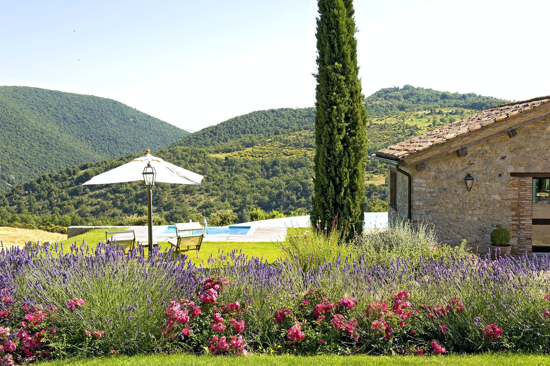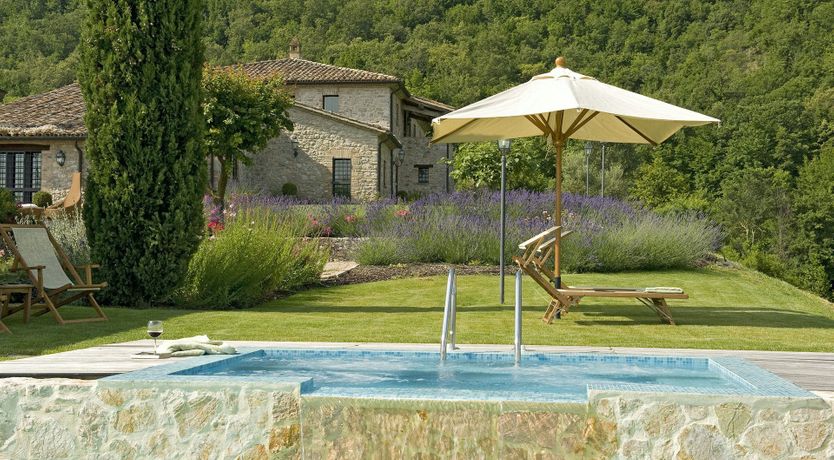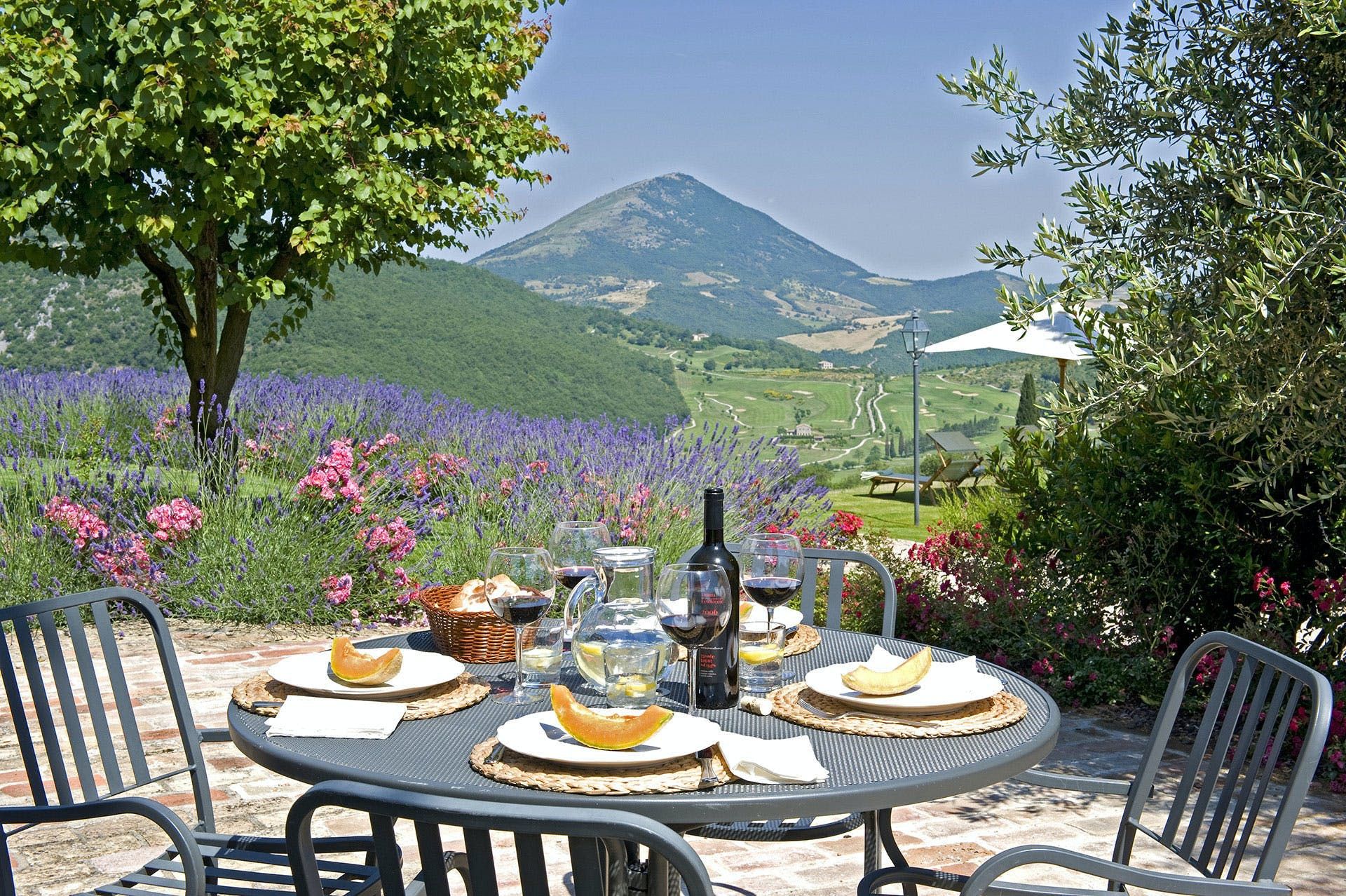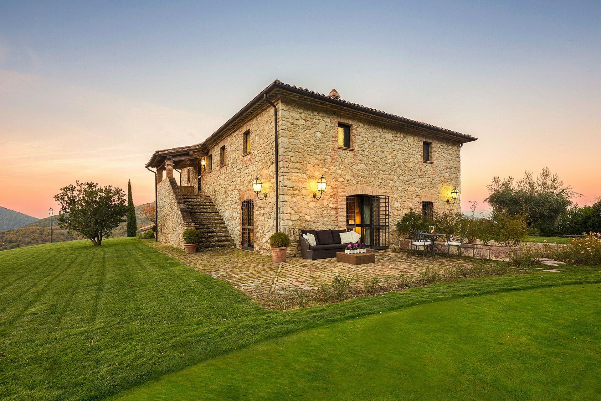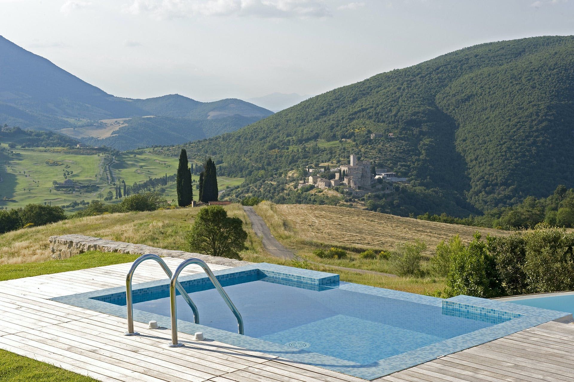 This home in an exclusive Umbrain estate is where versatility meets beauty. With hectares of land spilling out into woods, olive groves, and lakes at your feet, the panoramic terraces and private swimming pool all have a picture-perfect backdrop. As for the versatility, that lies in the way the bedrooms have been split between three apartments and a cottage, each with a living area and kitchen, so everyone gets space and privacy. The on-site restaurant takes reservations, but they also deliver, and you can speak to your host about wine tastings when you're not golfing at the course minutes away or exploring Lake Trasimeno.