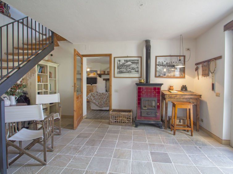 " Paradiso", 7-room villa 300 m2 on 2 levels, on the ground floor. Very beautiful and tasteful furnishings: entrance hall with tiled stove. Exit to the garden. Large living/dining room with open-hearth fireplace, TV, flat screen and heating stove. Exit to the garden. Living/sleeping room with 1 x 2 bunk beds, 1 double bed, kitchen corner, bath/bidet/WC, heating stove and air conditioning.