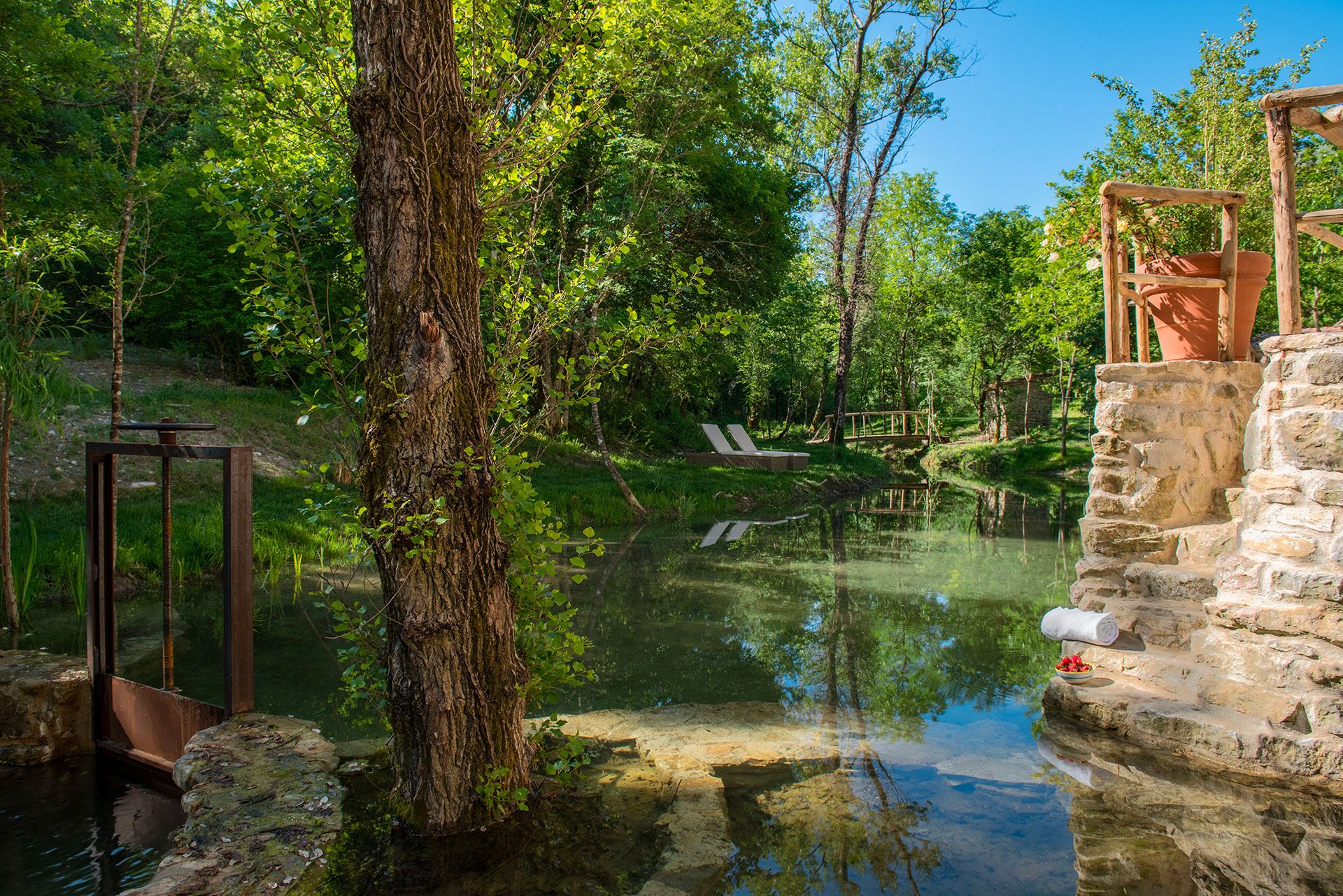 Tucked within the stone walls of a medieval estate in the rolling Murlo valleys, this home is understated luxury at its finest. Everything you need for a truly rejuvenating retreat is at your doorstep, from a private sauna and pool to outdoor rivers and, our favourite part, the underground hot tub set in the ancient vault of a 13th-century mill. The original character features have been carefully respected, while the current finishes are modern yet refined. It brings you back in time without sacrificing comfort, and when you're ready to step back into the world, the best of Umbria and Tuscany are at your doorstep.