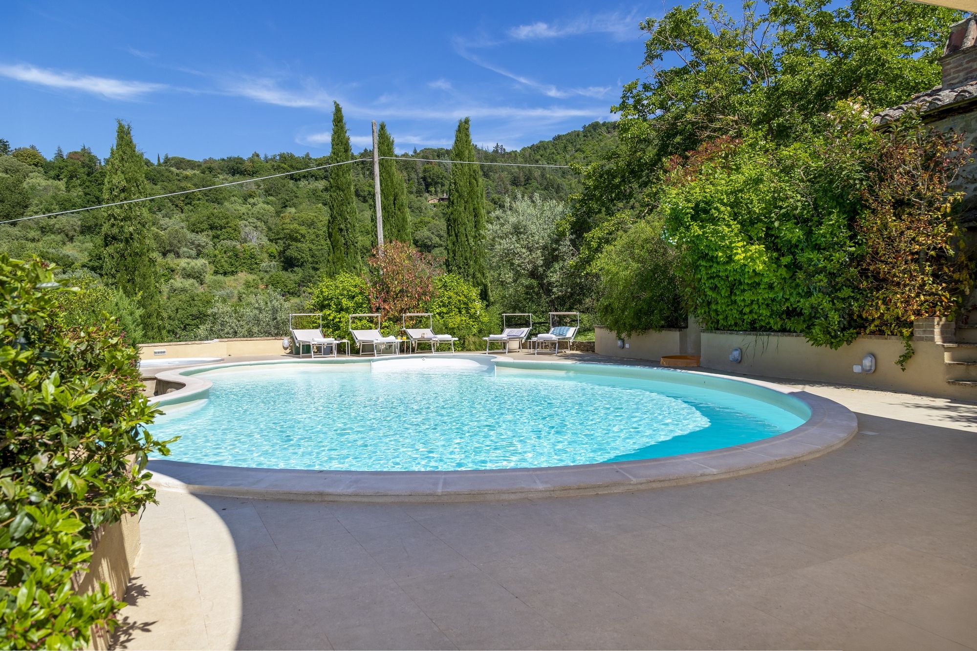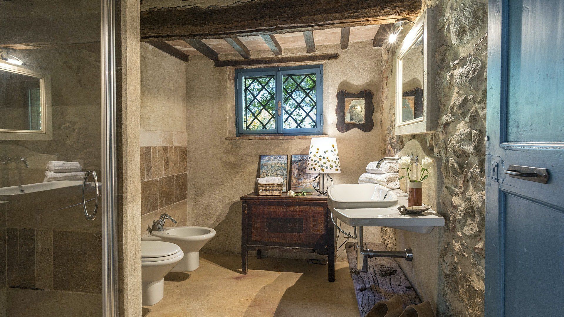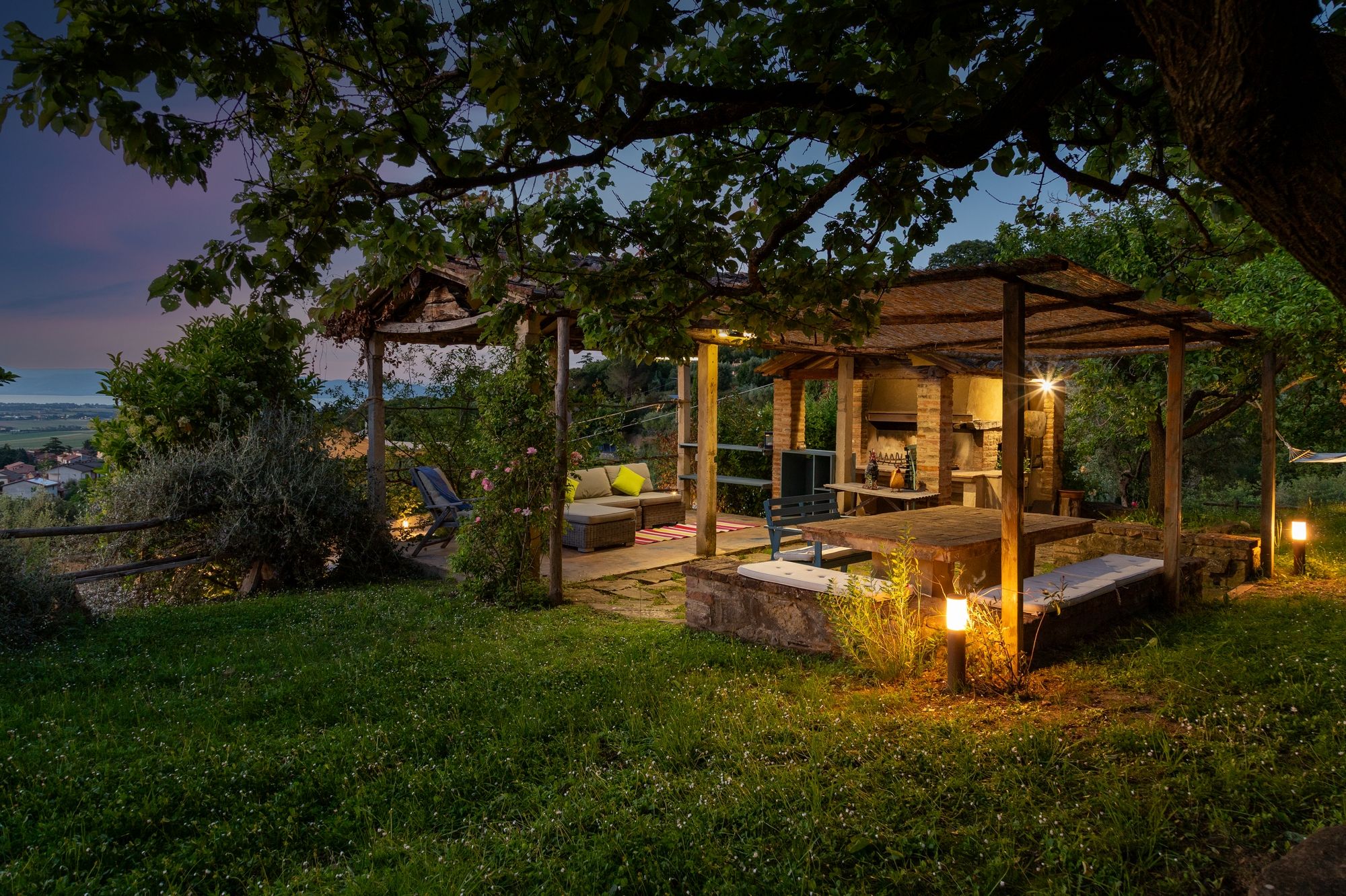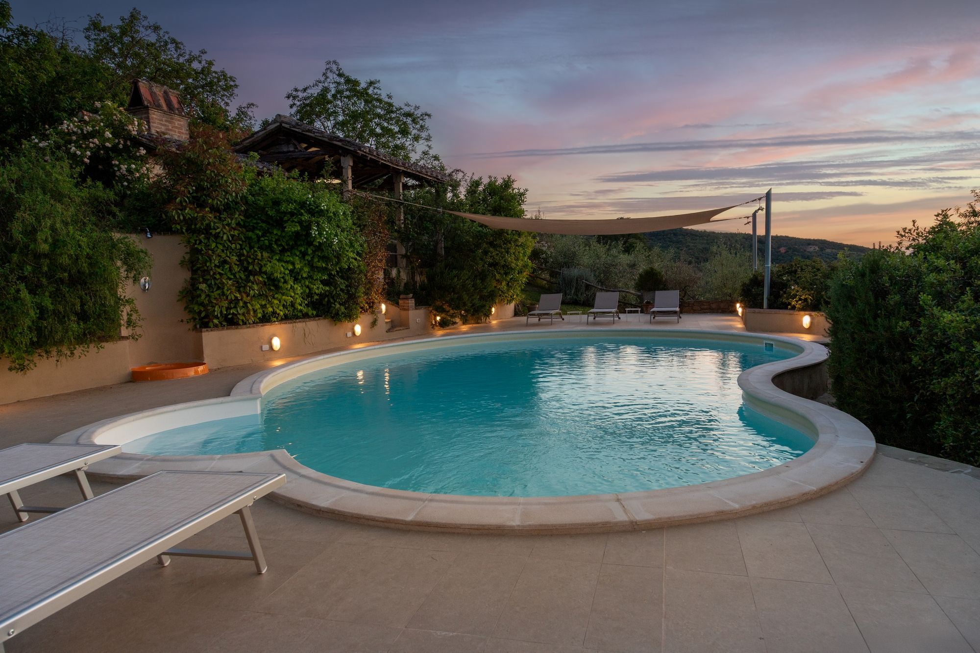 Spend just a few moments relaxing in the jacuzzi, appreciating the views of the Umbrian countryside, and you'll see why we love this rural farmhouse. The hosts have carefully restored all the historic features and rustic charm you'd expect in a place like this – think colourful tile flooring in the downstairs kitchen, exposed stone walls in the bedrooms, and plenty of antique walnut furniture. But it's not just the traditional character we love. This home offers plenty of modern comforts, too, with two kitchens, a sparkling swimming pool and a whirlpool bathtub. Whether you're napping in the cosy living areas, sunbathing by the pool or sipping apéritifs on the shady patio, you'll feel right at home here. Swing the day away in the hammocks before firing up the built-in barbecue or wood oven for a tasty alfresco dinner made with ingredients from the garden. Then, watch the sunset over the olive groves. The location is perfect for exploring the region – scenic Lake Trasimeno is just a twenty-minute drive, while artsy Perugia is just under an hour away.