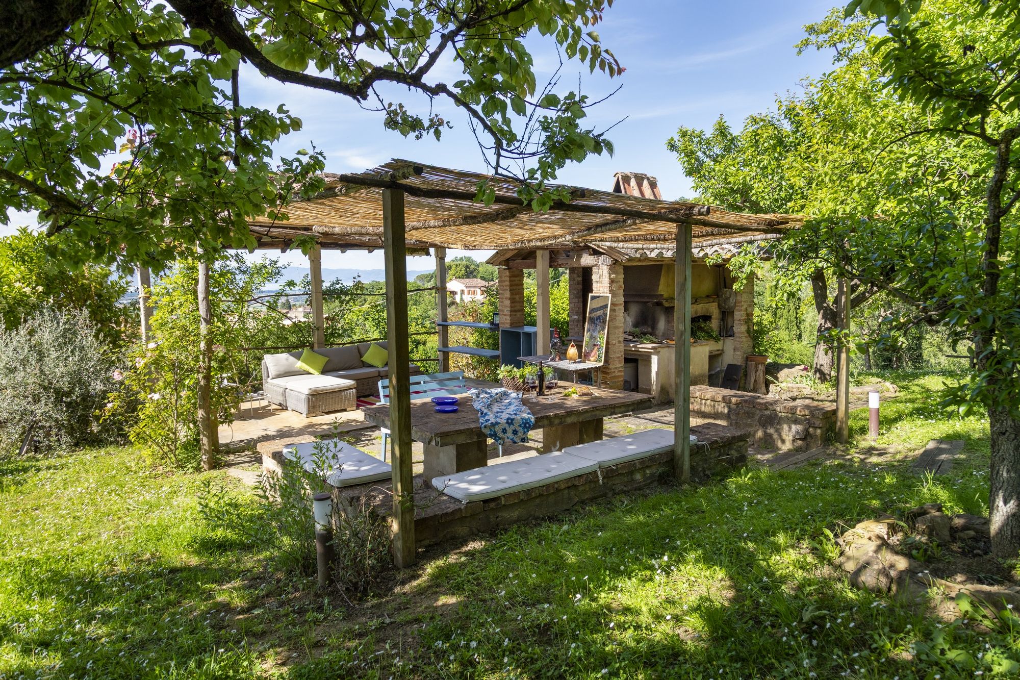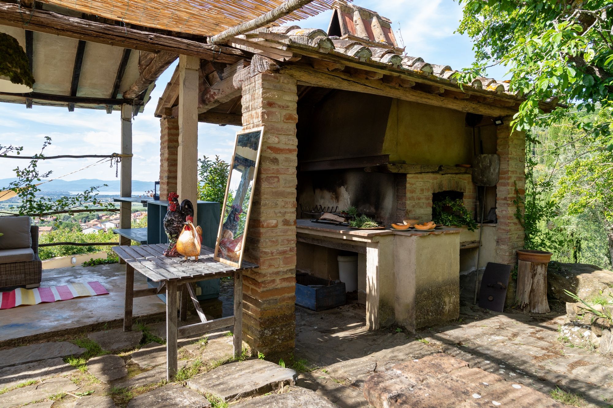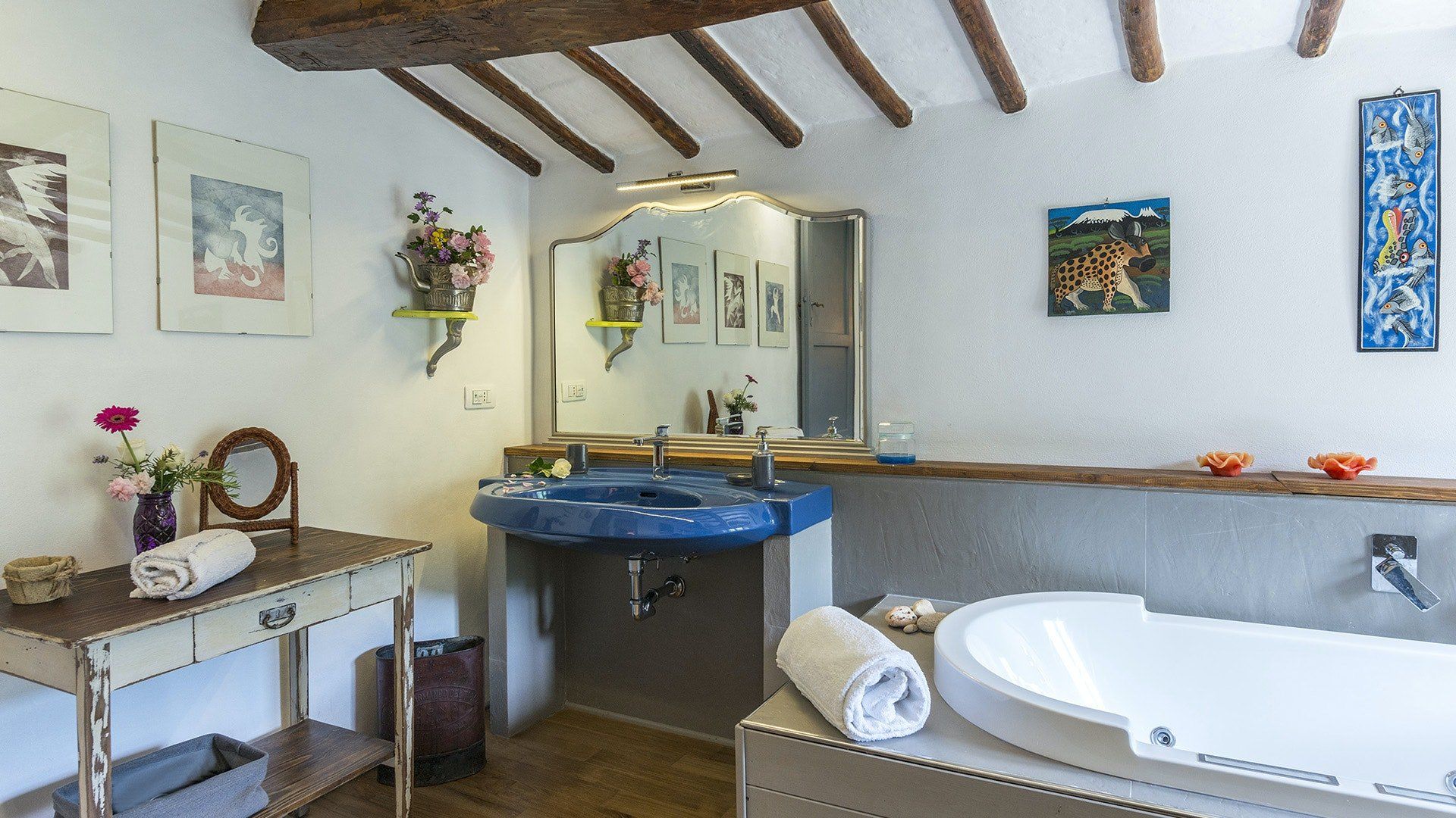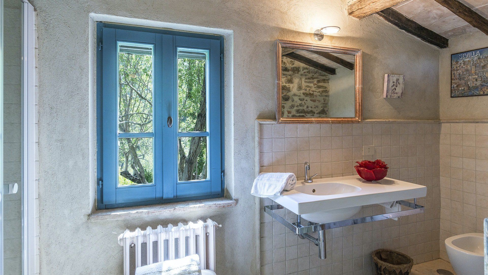 Spend just a few moments relaxing in the jacuzzi, appreciating the views of the Umbrian countryside, and you'll see why we love this rural farmhouse. The hosts have carefully restored all the historic features and rustic charm you'd expect in a place like this – think colourful tile flooring in the downstairs kitchen, exposed stone walls in the bedrooms, and plenty of antique walnut furniture. But it's not just the traditional character we love. This home offers plenty of modern comforts, too, with two kitchens, a sparkling swimming pool and a whirlpool bathtub. Whether you're napping in the cosy living areas, sunbathing by the pool or sipping apéritifs on the shady patio, you'll feel right at home here. Swing the day away in the hammocks before firing up the built-in barbecue or wood oven for a tasty alfresco dinner made with ingredients from the garden. Then, watch the sunset over the olive groves. The location is perfect for exploring the region – scenic Lake Trasimeno is just a twenty-minute drive, while artsy Perugia is just under an hour away.