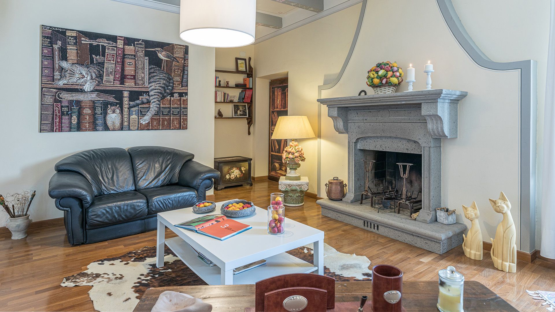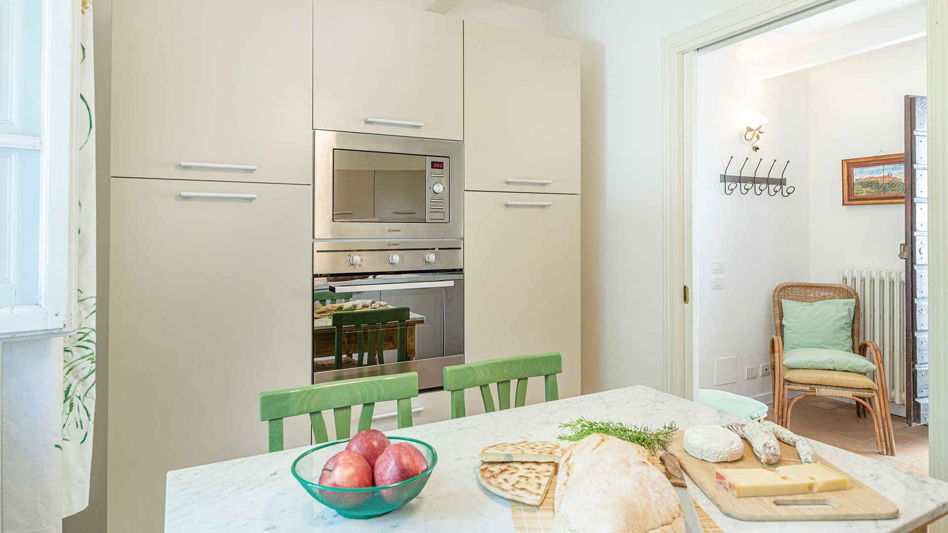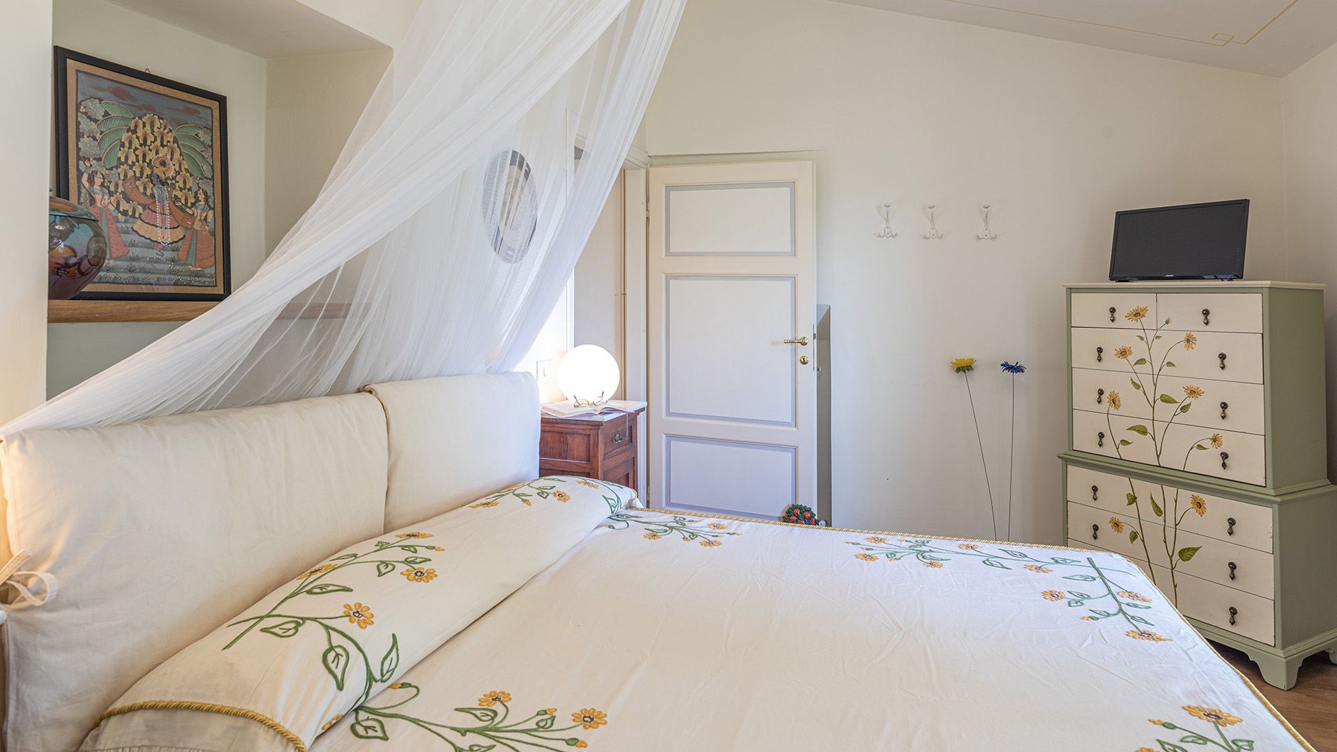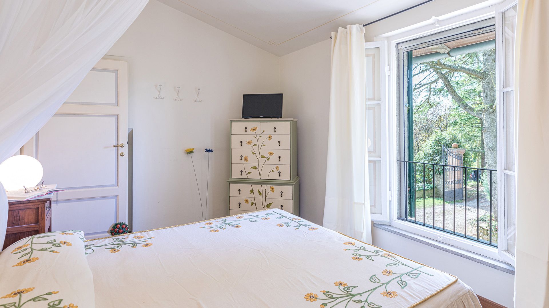 Set amidst Umbria’s rolling hills and verdant woods, this home is a true escape from the hustle and bustle of city life. Less than a five-minute drive from the medieval village of Monteleone d'Orvieto, it’s a relaxing retreat full of sensory romance. Breathe in the sweet-smelling flowers that frame the home’s grounds, look out onto the forested paths beyond the front gates and feel right at home within its pretty pink walls. Inside, contemporary and vintage furnishings combine with an elaborate hearth and cowhide rug in the first-floor living room, while downstairs, rustic charm abounds in the bright, white dining room. Exit through the French doors to reach the lush garden, where a jade green swimming pool invites swimming and sun-soaking aplenty. In the evening, the pool takes on a magical lantern-lit glow, perfect for sundown dips. Steal yourself away for an intimate drink under the stone portico, then sit down for an al fresco meal, courtesy of the barbecue. When it’s time for bed, canopied beds and a private suite under the home’s eaves will treat you to a dreamy night's sleep.