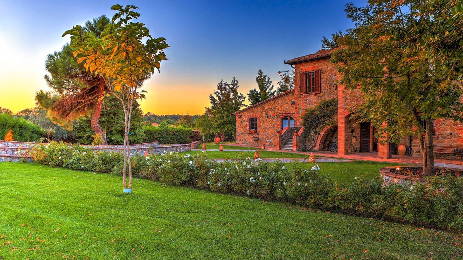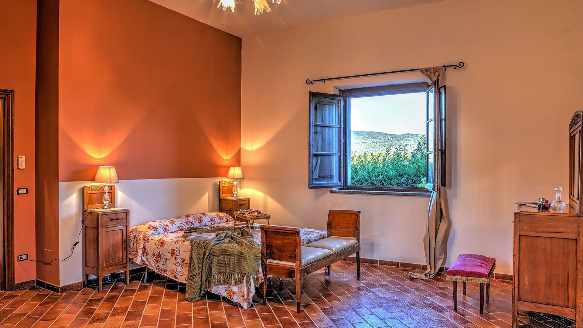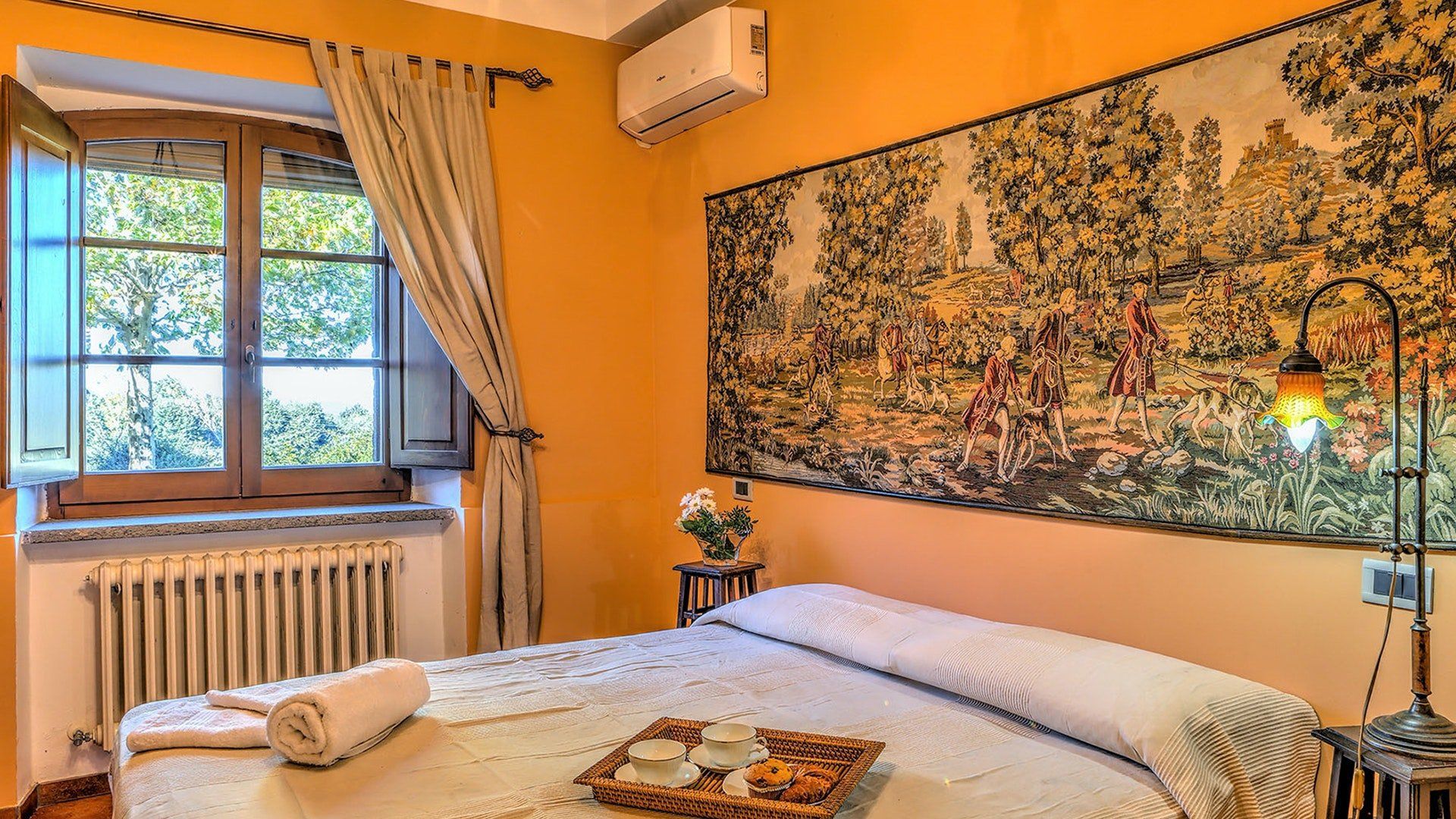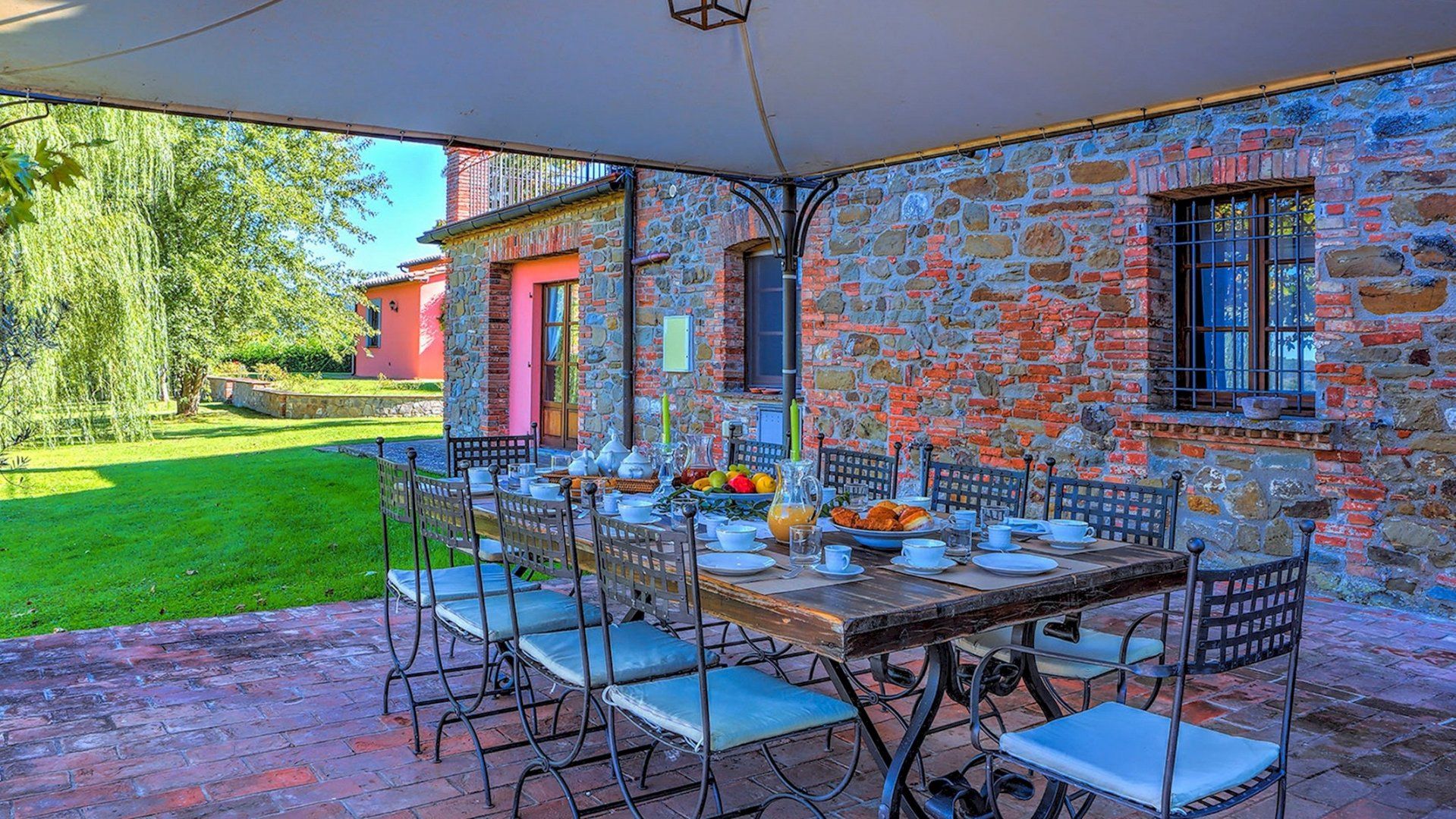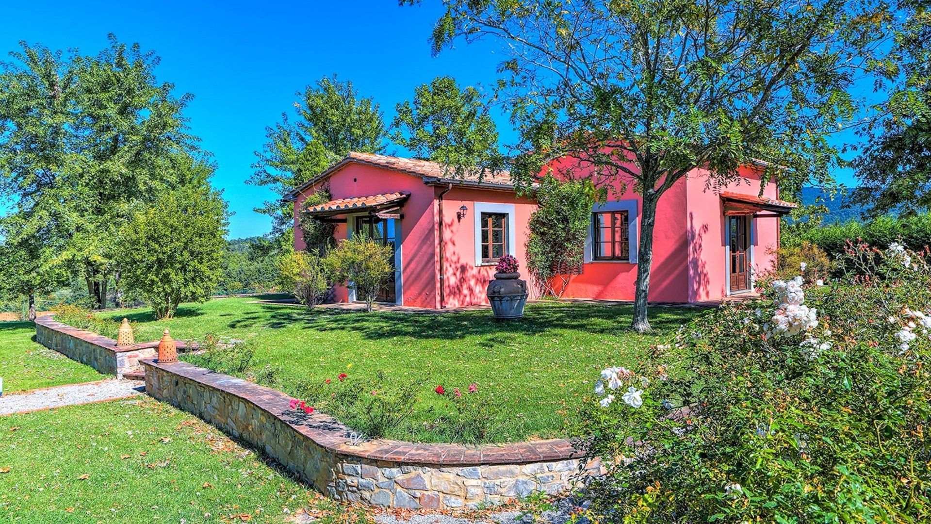 We could get used to this – a rustic Italian villa that oozes charm, surrounded by lush Umbrian countryside. A short drive takes you to the shops and cafes of medieval Città della Pieve, and charming destinations like Trasimeno Lake and Perugia are within easy reach too. This is a seriously good spot. In the home itself, Persian rugs sit adorn the polished tiled floors, lending a feeling of laid-back luxury, while a grand fireplace takes centre stage in the open living area. The kitchen is dominated by stainless steel and provides everything you need to realise your culinary dreams. Then, share your meals with nine of your favourite people at the garden table outside, with views of the countryside as your backdrop. Handily, there is also a separate, self-contained annexe for those who require some extra privacy. It comes with its own kitchen, en-suite and billiard table. Outside, the large, inviting pool is where we suspect you’ll spend most of your time. The well kept garden surrounding the villa is an extremely relaxing place to unwind – get the outdoor pizza oven on and set the world to rights until the sun goes down. Then do it all again tomorrow.