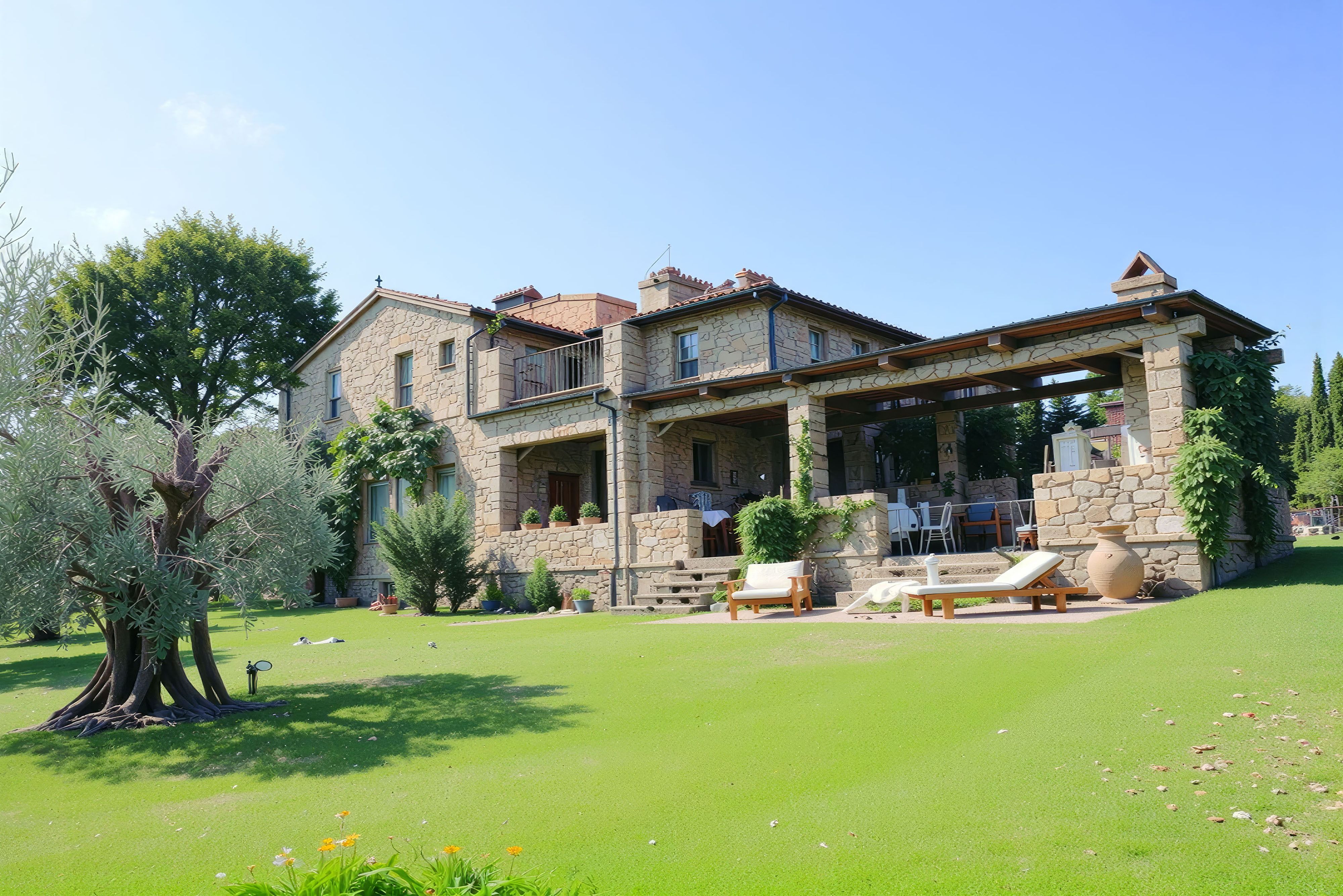 If you've ever felt like packing up and running away to Italy now is your chance. This charming restored countryside estate sits among olive-covered hills on the Tuscany-Umbria border with all the ingredients you need to live la dolce vita. The interiors have an air of faded grandeur but are comfortable and particularly cosy on winter nights with a roaring fire on the go. It's the exteriors, however, where this house really shines. In addition to the private saltwater swimming pool, there's a traditional wood-fired pizza oven, outdoor dining spaces and several terraces with hammocks and loungers. The cherry on top? The ice cream maker for whipping up homemade gelato.