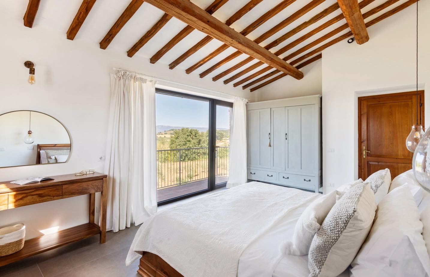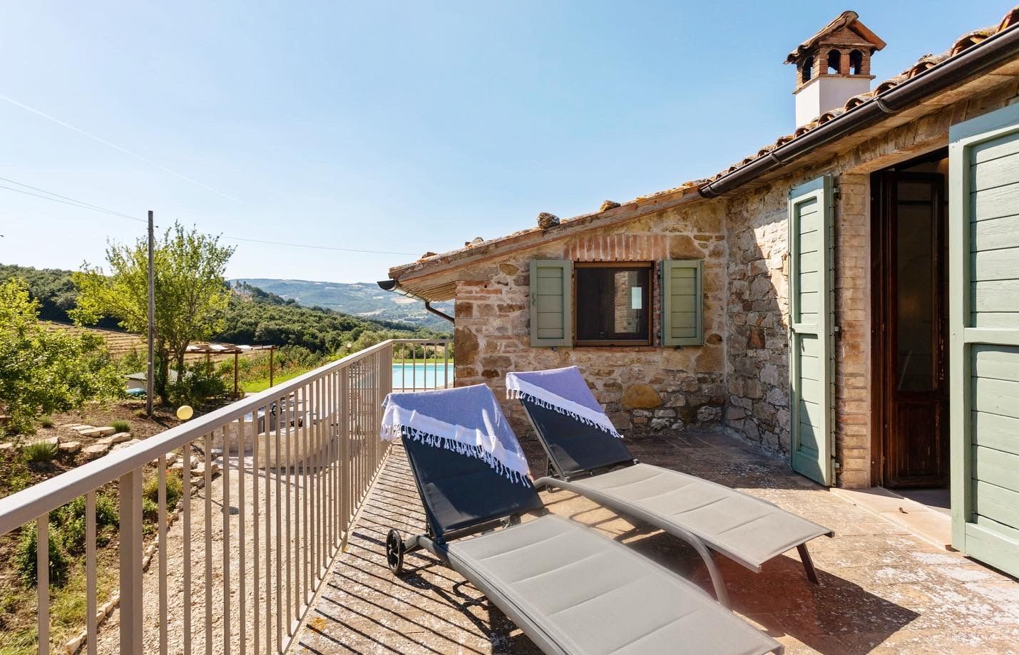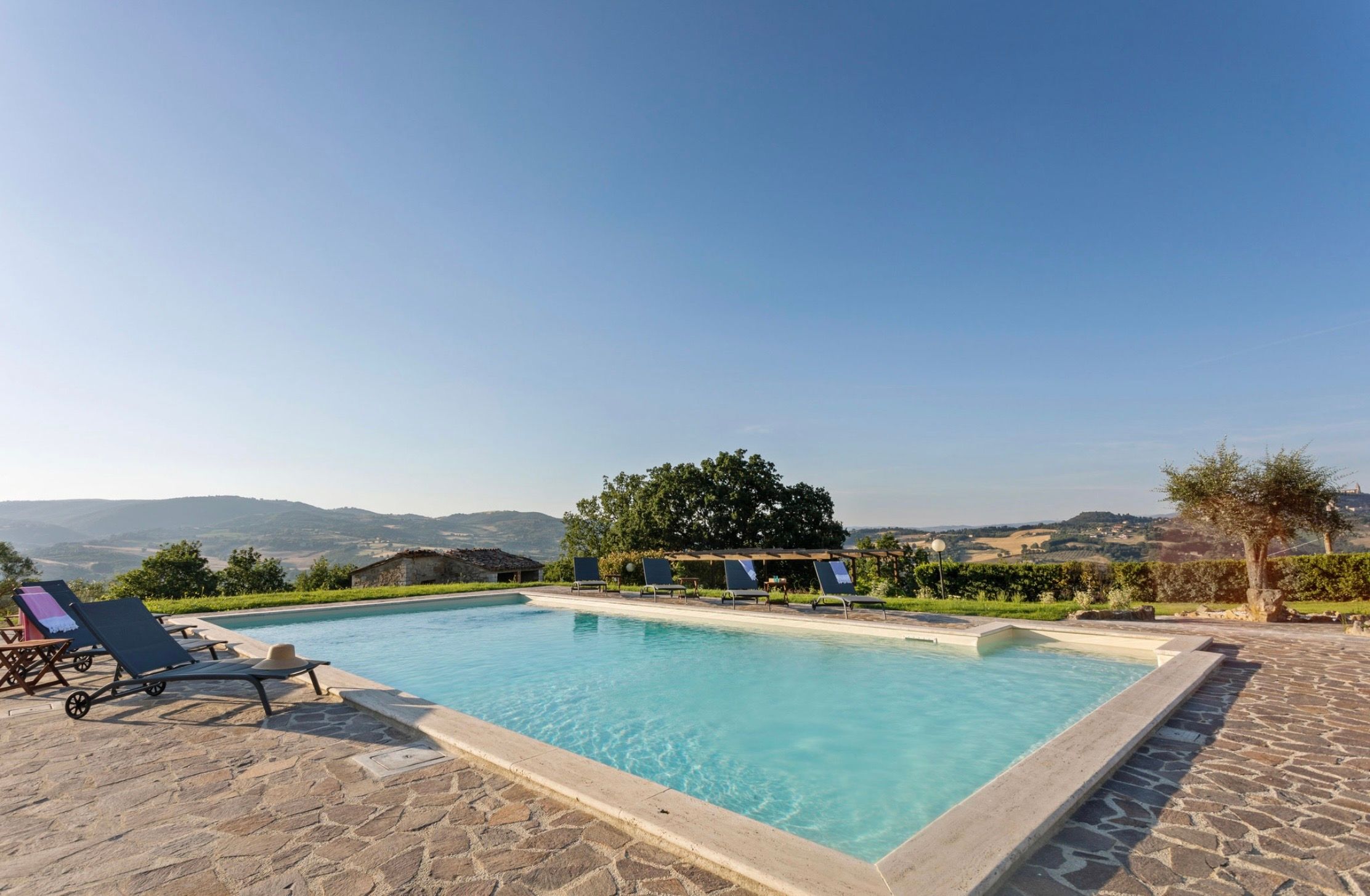 Located just 4 kilometres from Todi, this farmhouse offers rustic charm and peaceful surroundings. You can glimpse the historic cityscape from the primary suite's windows – a perfect way to start the day. We're big fans of the contemporary kitchen and the cosy living space. Outside, spend the afternoon lounging by the pool, basking in the views, and enjoying meals under the pergola. Keen to explore? Todi is close by, Perugia is a forty-five-minute drive, and Assisi is less than an hour away.