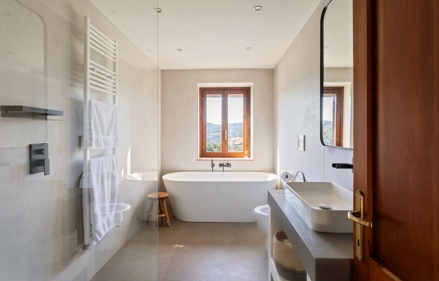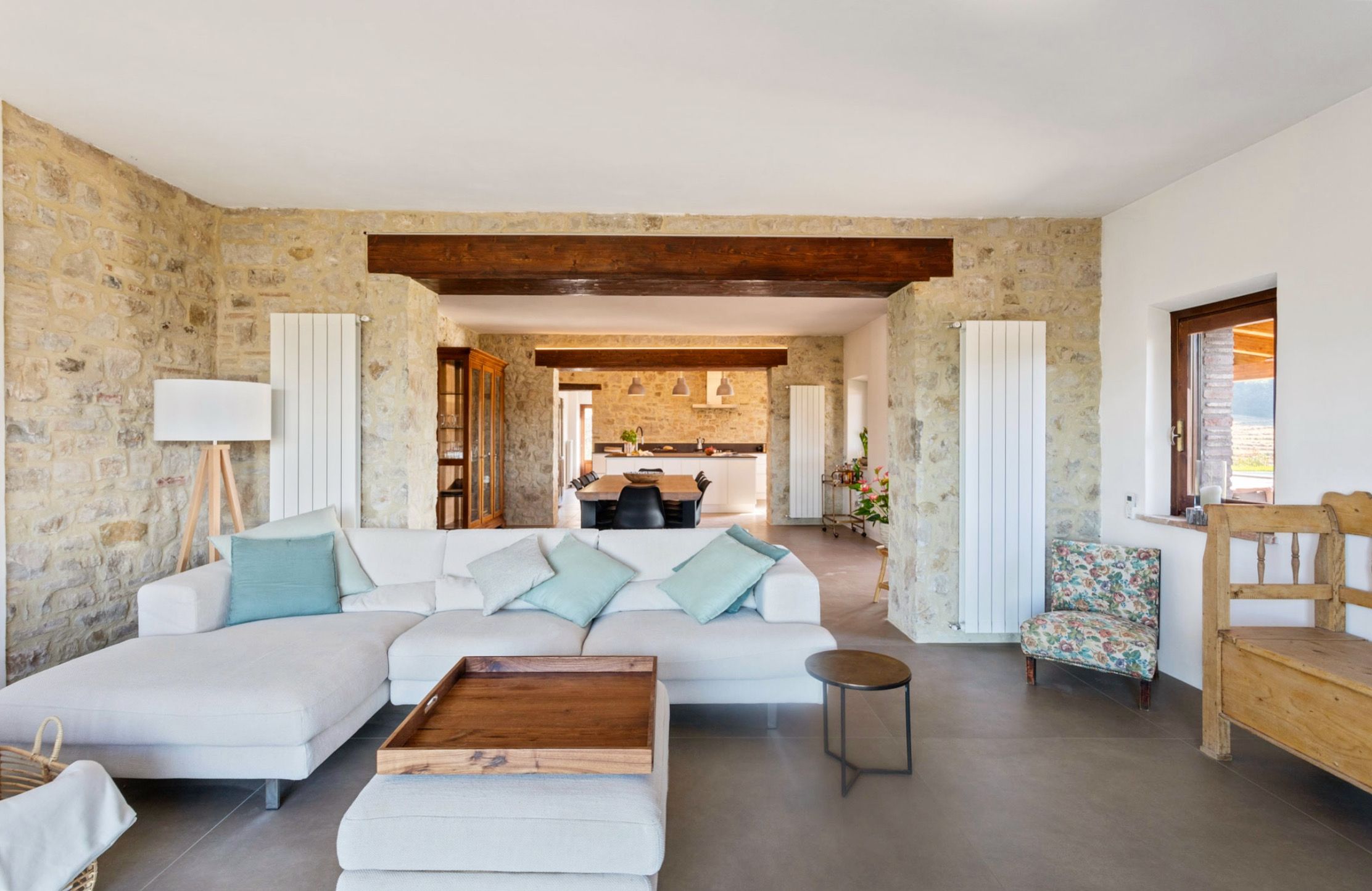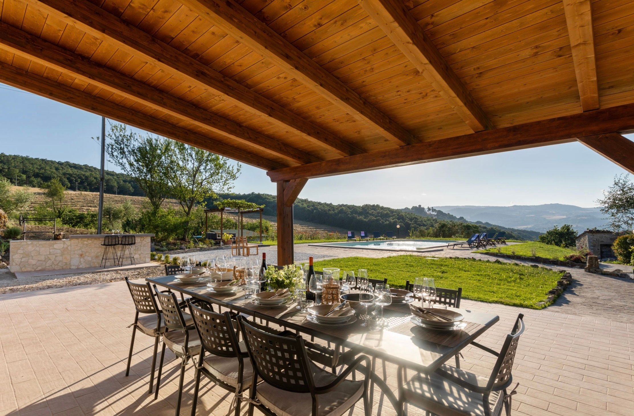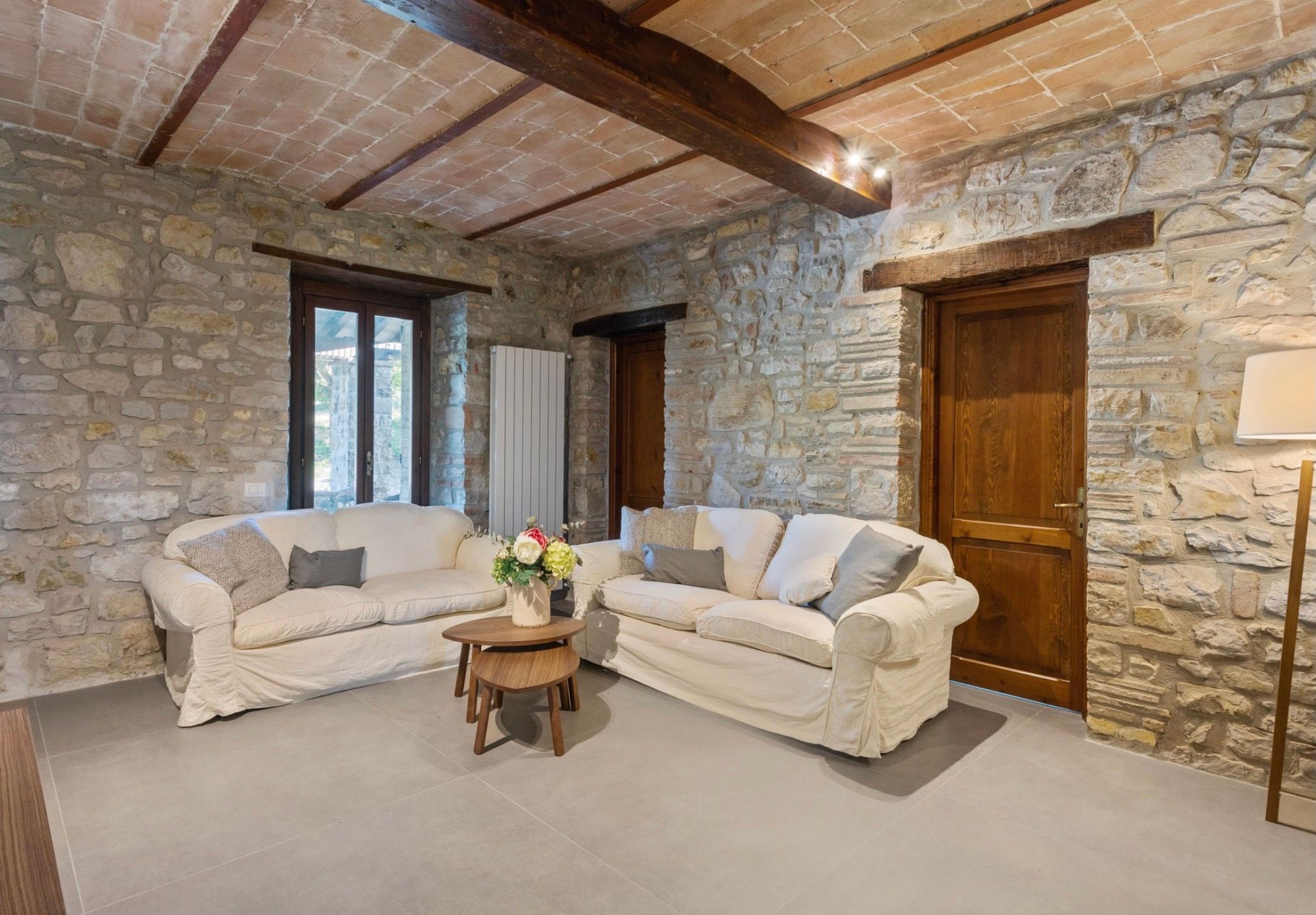 Located just 4 kilometres from Todi, this farmhouse offers rustic charm and peaceful surroundings. You can glimpse the historic cityscape from the primary suite's windows – a perfect way to start the day. We're big fans of the contemporary kitchen and the cosy living space. Outside, spend the afternoon lounging by the pool, basking in the views, and enjoying meals under the pergola. Keen to explore? Todi is close by, Perugia is a forty-five-minute drive, and Assisi is less than an hour away.