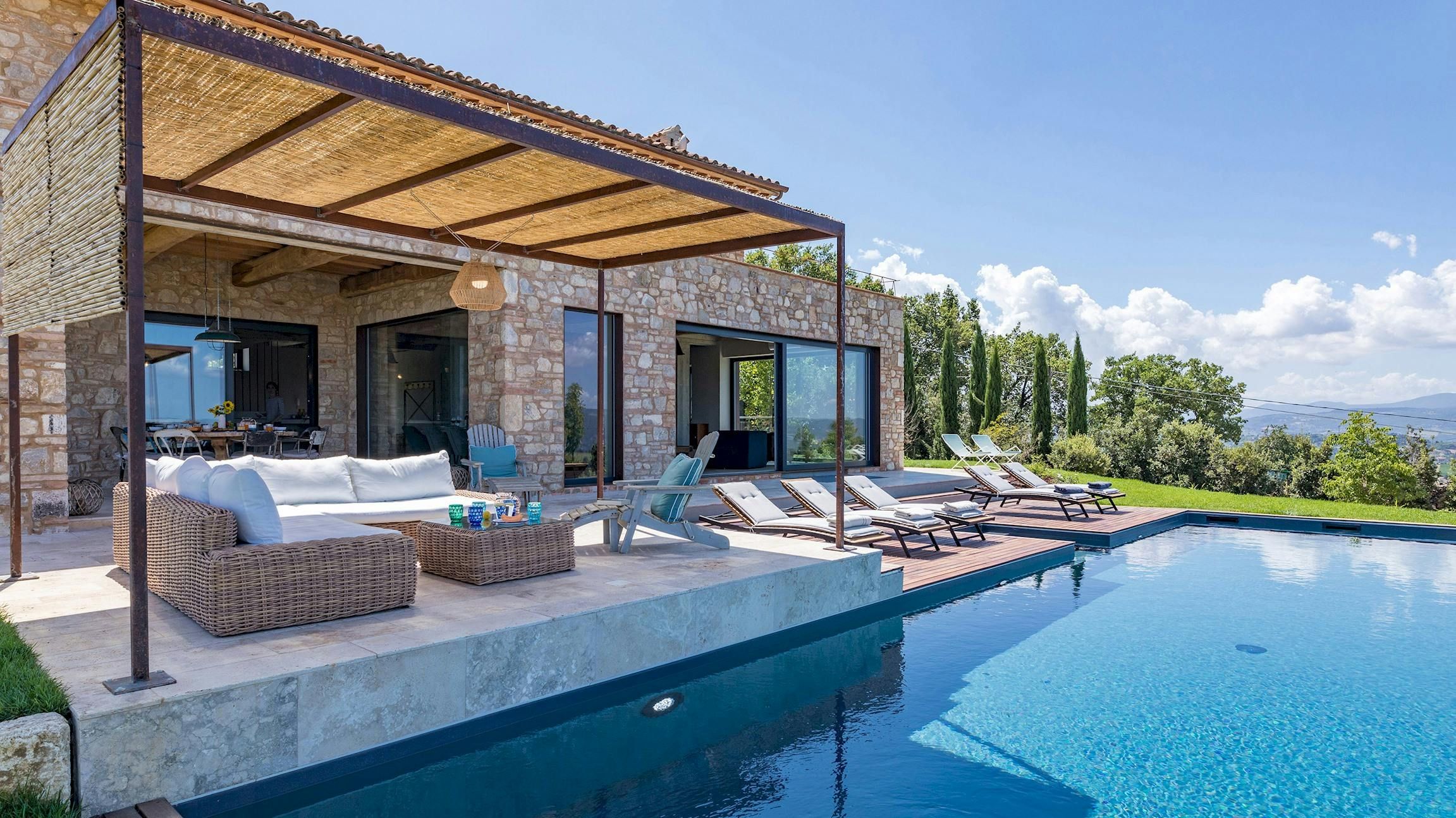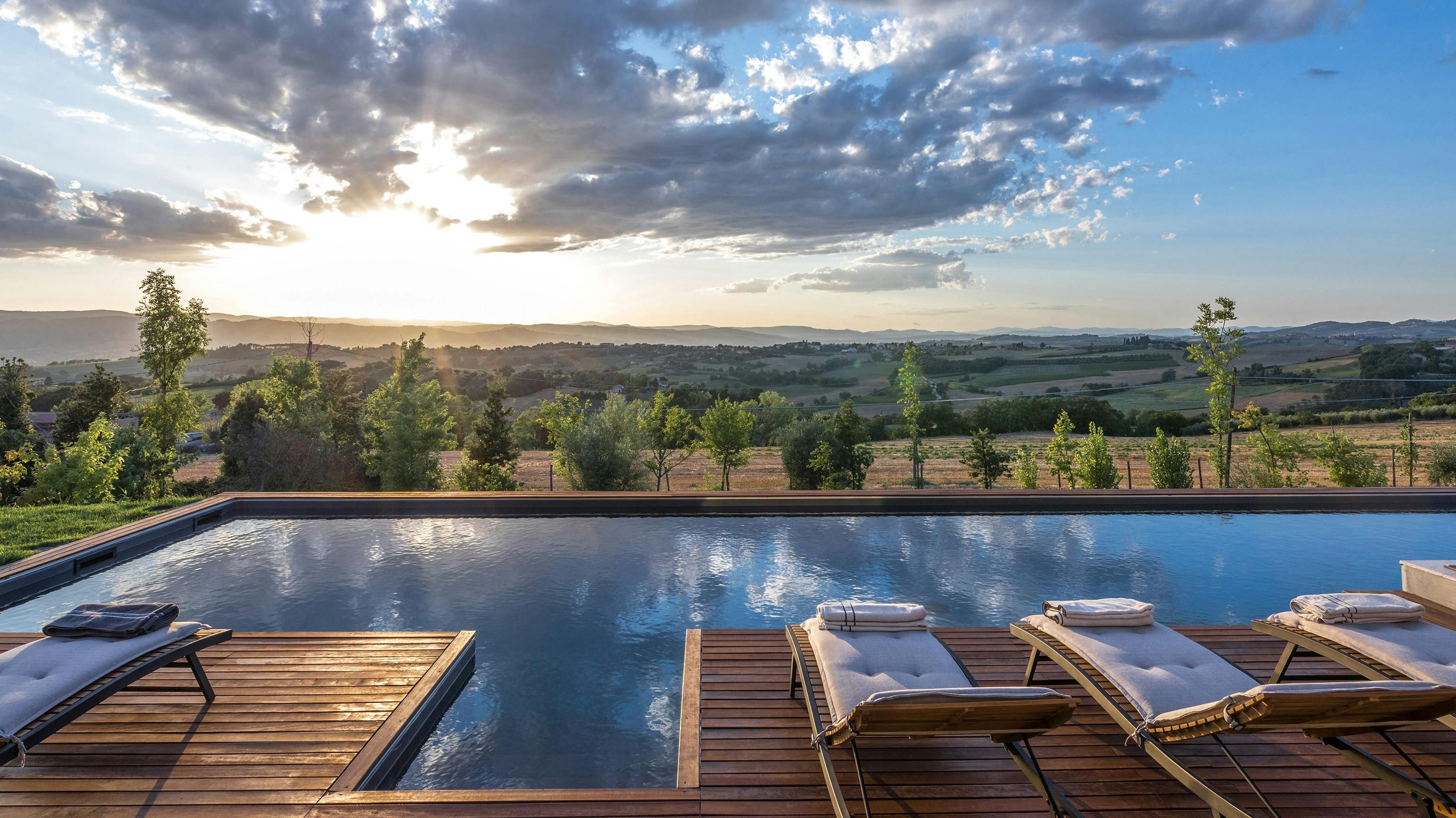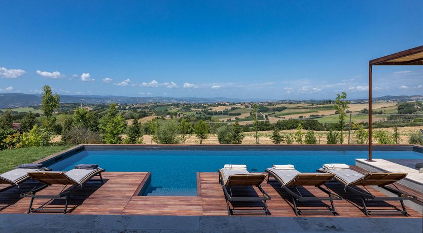 Wrapped in olive groves, vineyards and sunflower fields, this contemporary villa is a true escape from it all. With the interiors and exteriors jostling for attention, it’s hard to pick a winner. Inside is modern with vast glass windows and doors welcoming the outdoors in, but the outdoor space just about pips it for us. Sun worshipers will love the welcoming terraces, alfresco dining spots are made for family get-togethers, and the private pool with panoramic views will be popular with all. If you can tear yourself away, it’s just ten minutes to Todi, full of mediaeval charm and authentic Italian eateries.