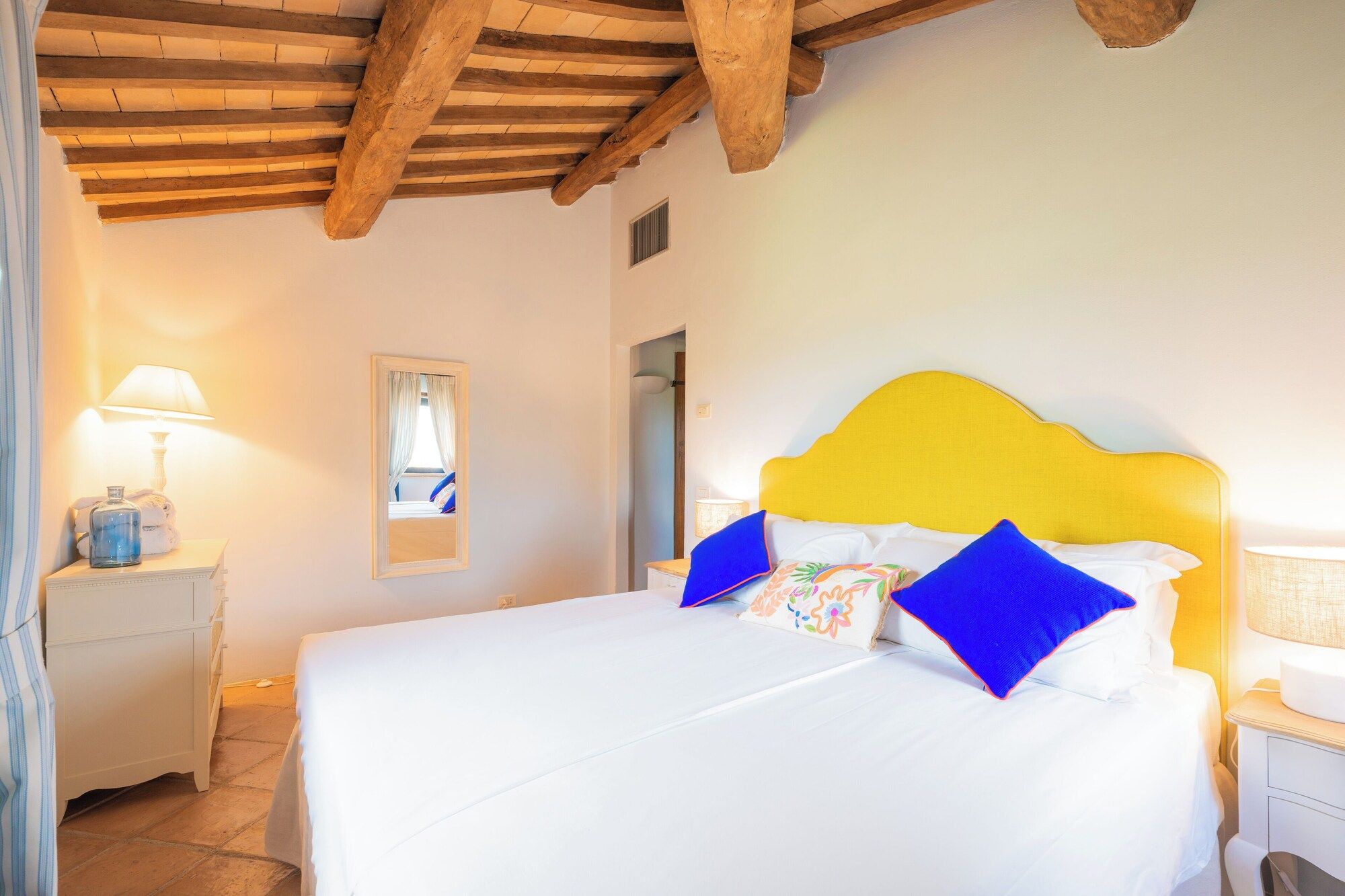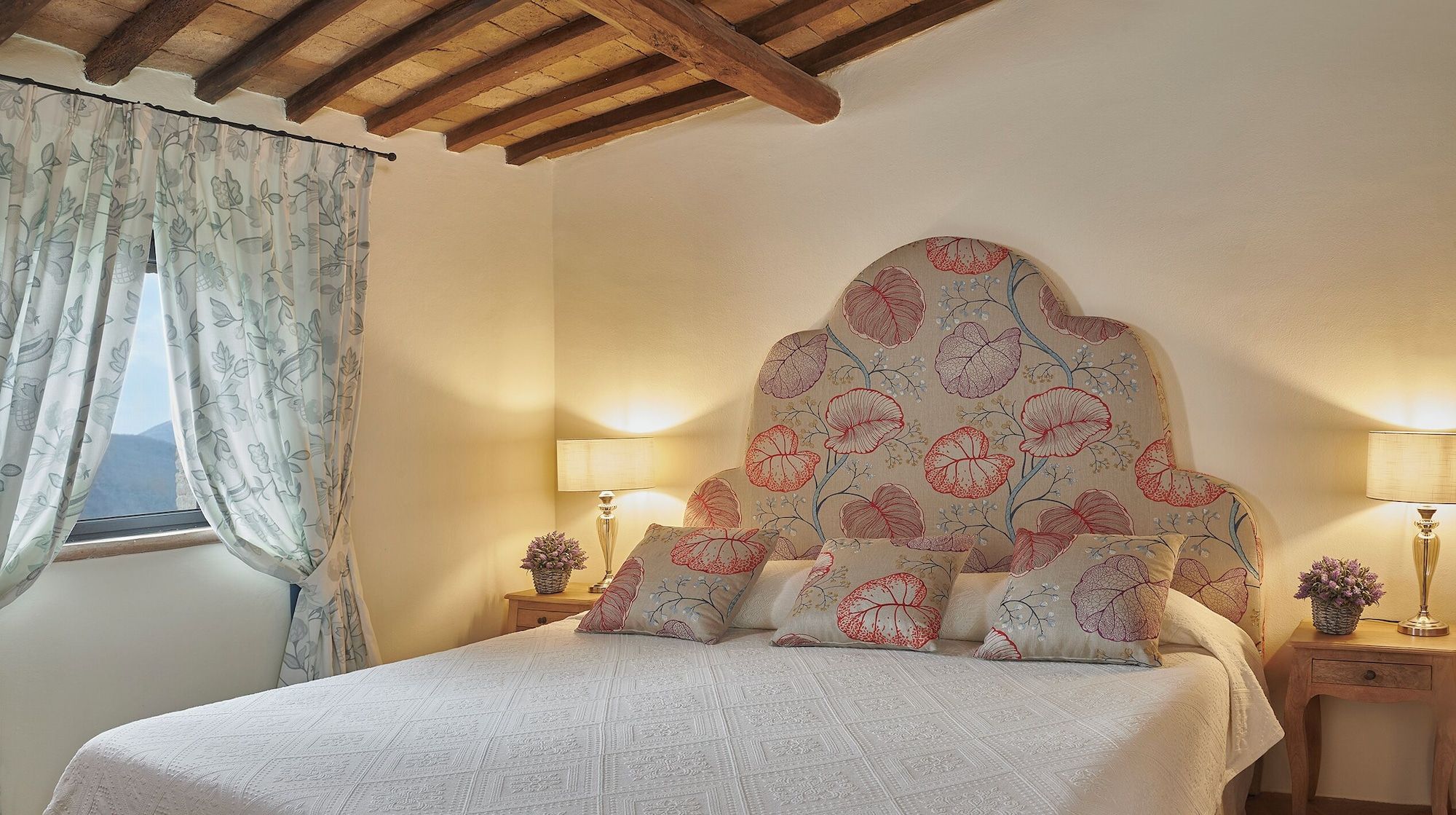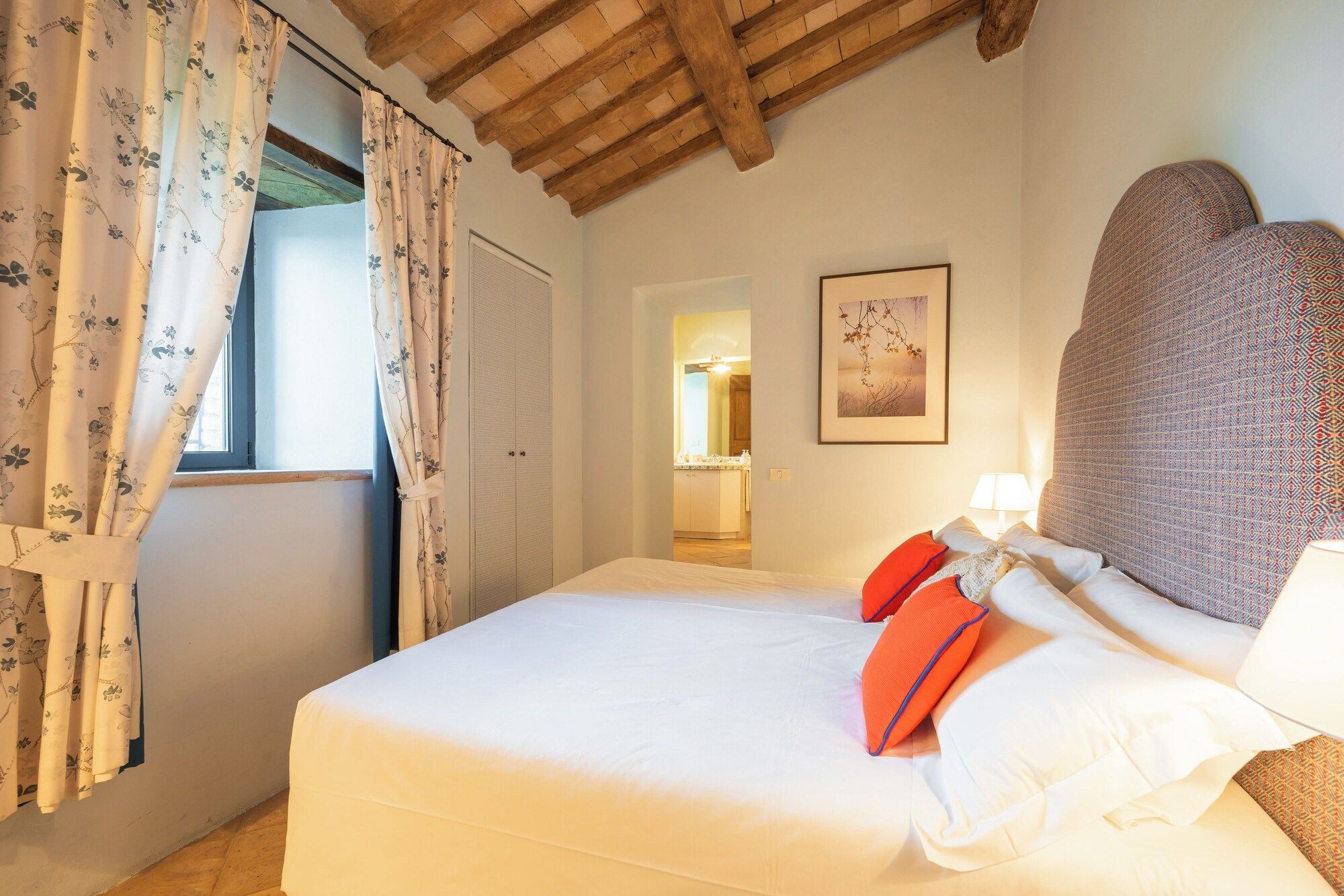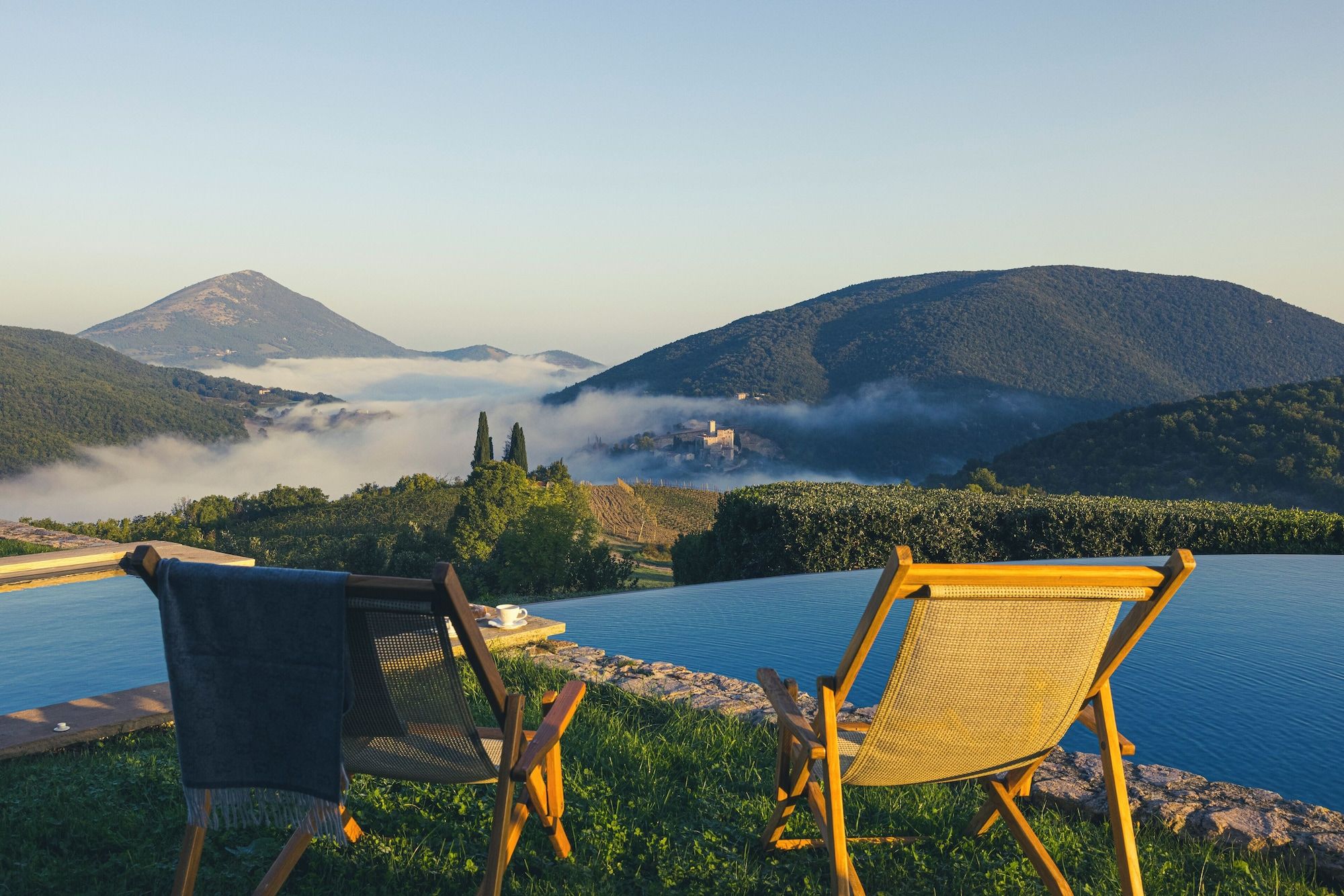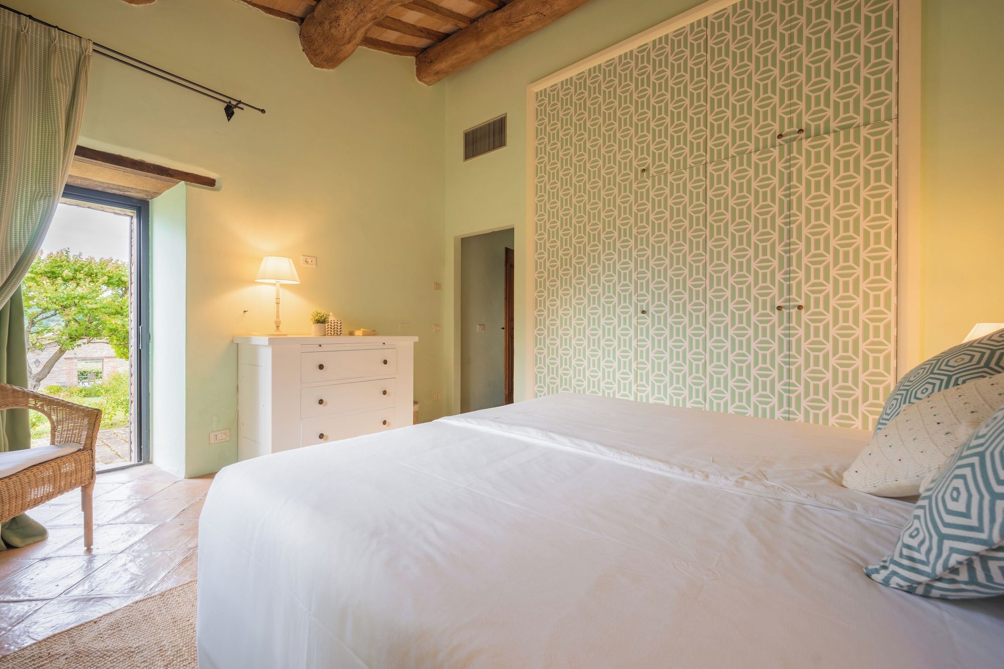Set on an estate and surrounded by countryside, this home invites relaxation. Made up of the main villa and a separate apartment, it’s an ideal choice for large groups of extended family or friends who seek a sociable getaway together yet still enjoy some private time. The outdoor space is the perfect spot to gather together, with a private pool, Jacuzzi and open-air cottage. When you’re ready to explore, you can take to the fairways of the local golf course or drive to Perugia where shops, eateries, and historic landmarks await.