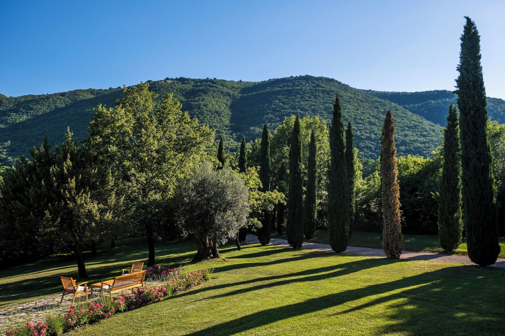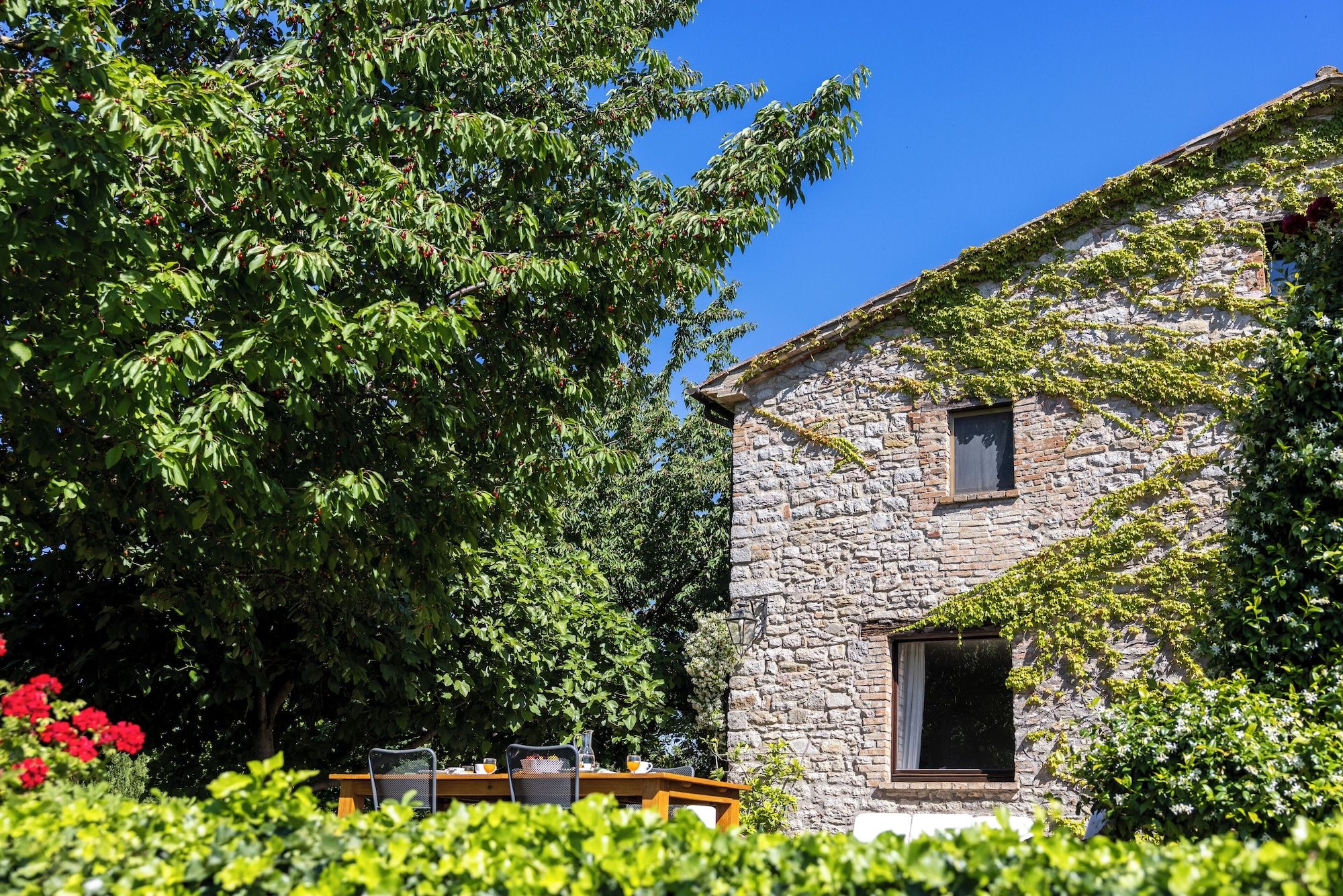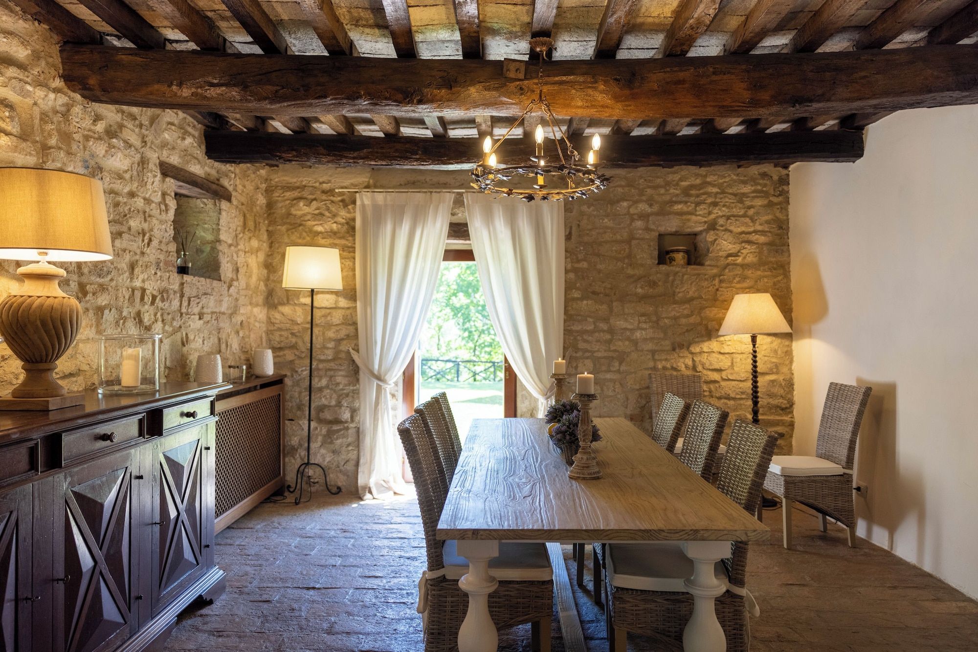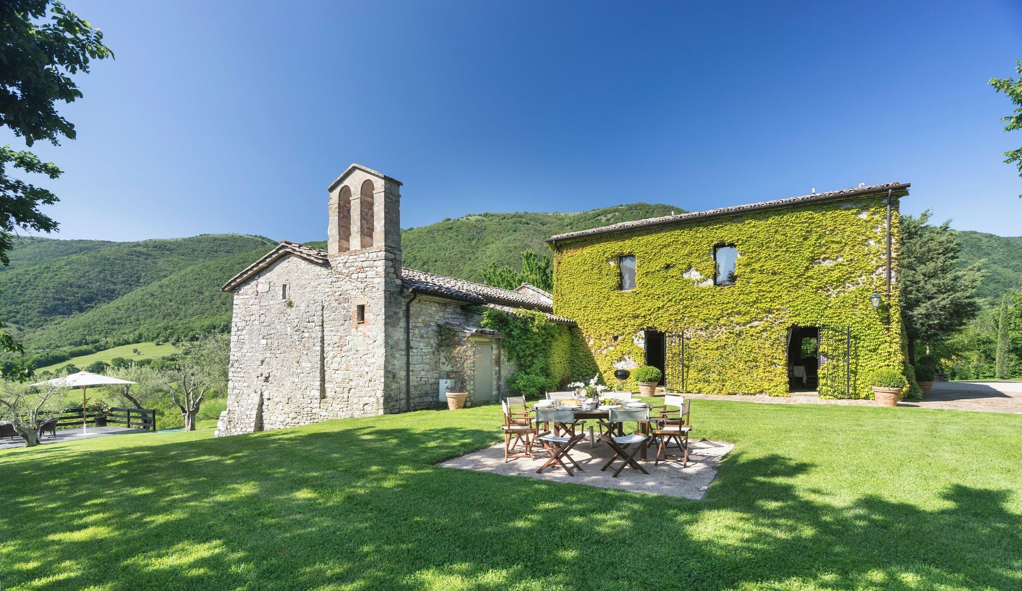 Dating back to the 14th century, this farmhouse has an adjoining church which was once the parish of the estate, so it’s steeped in history. Inside, there are plenty of areas to relax and the elegant decor compliments the character features. Another total highlight is the beautiful vistas of the valley from the garden, terraces and the private heated swimming pool and Jacuzzi. You may feel like staying put in this magical home, but if you want to explore, then Perugia, with its medieval Priori Palace and Gothic cathedral is within driving distance.