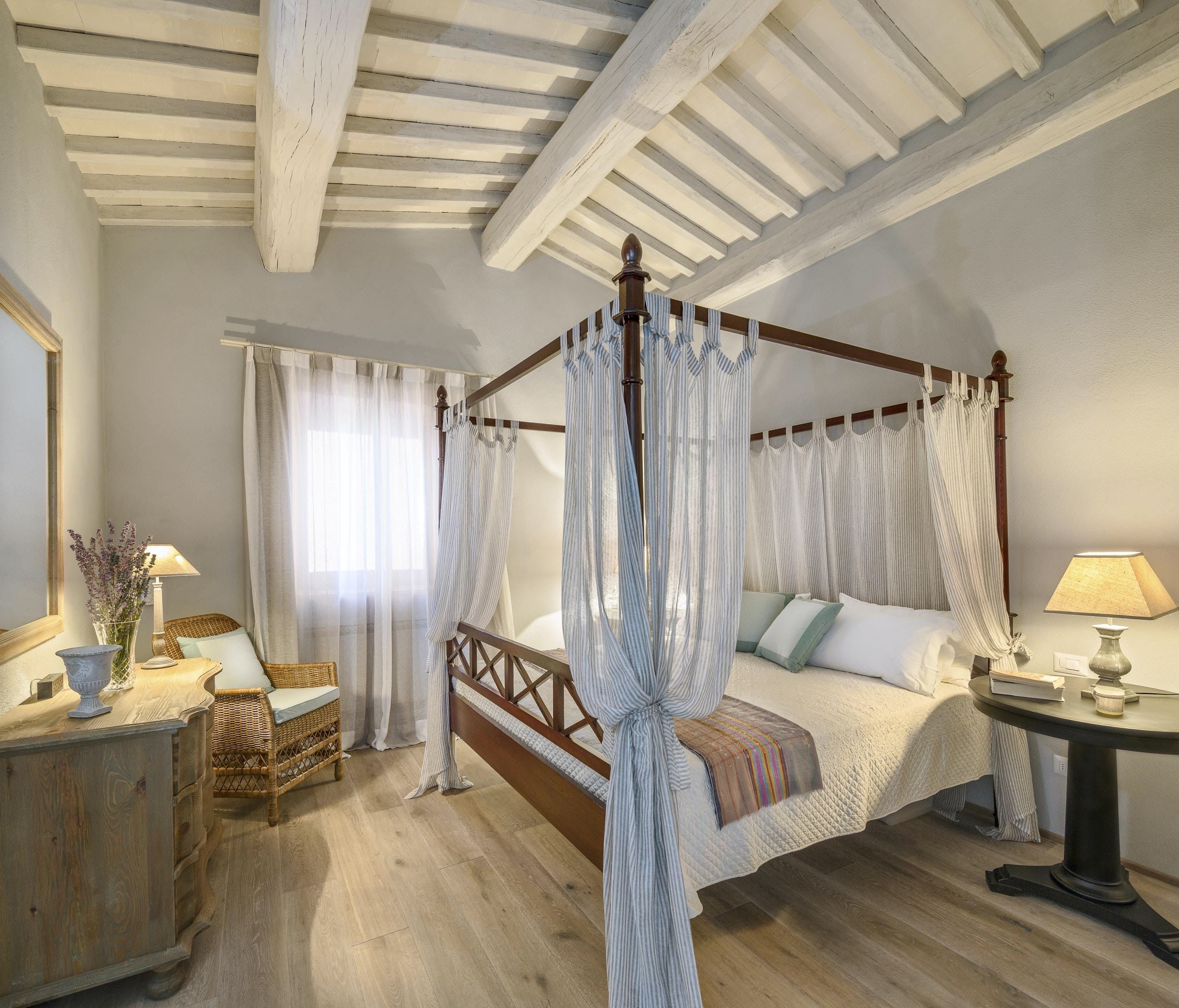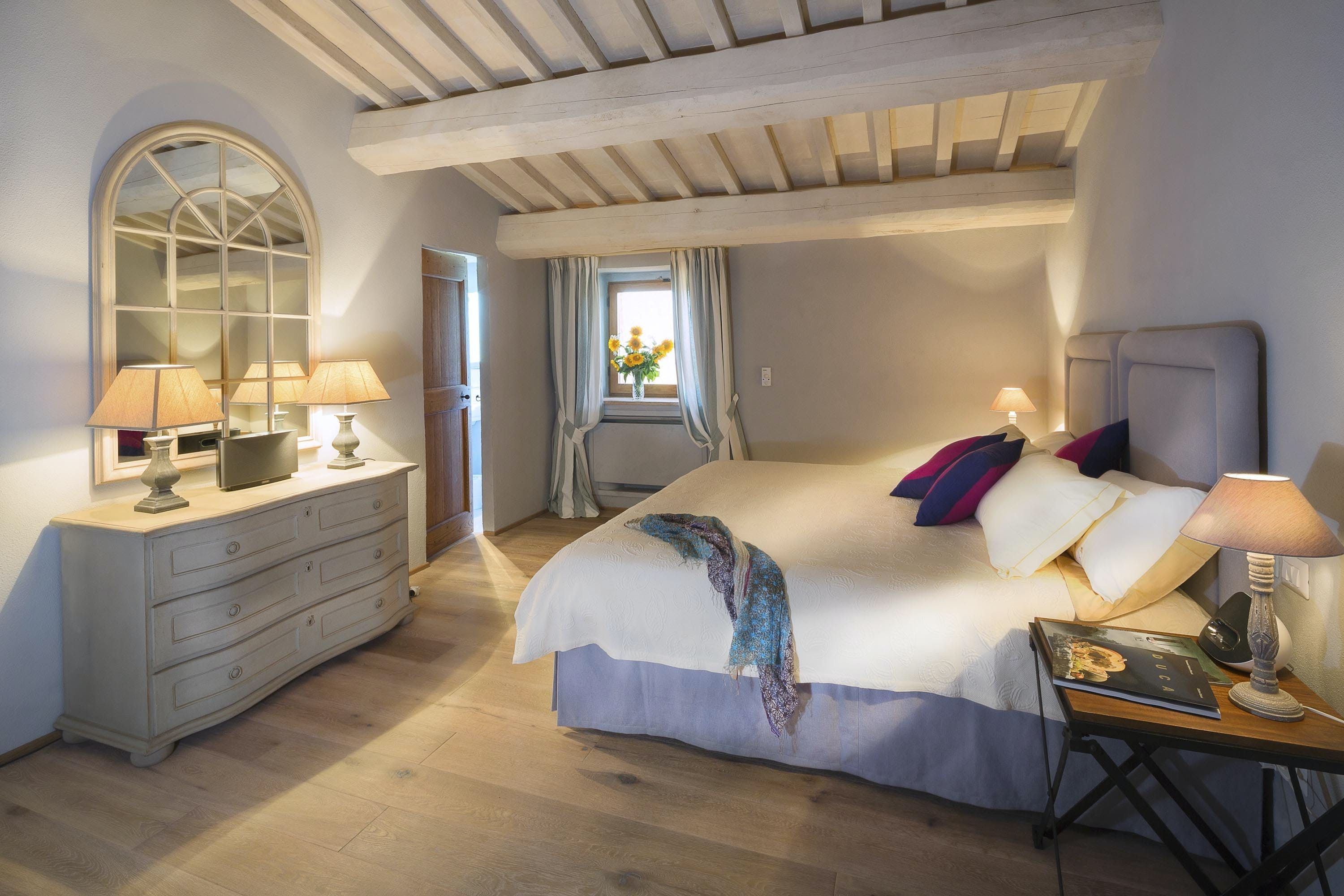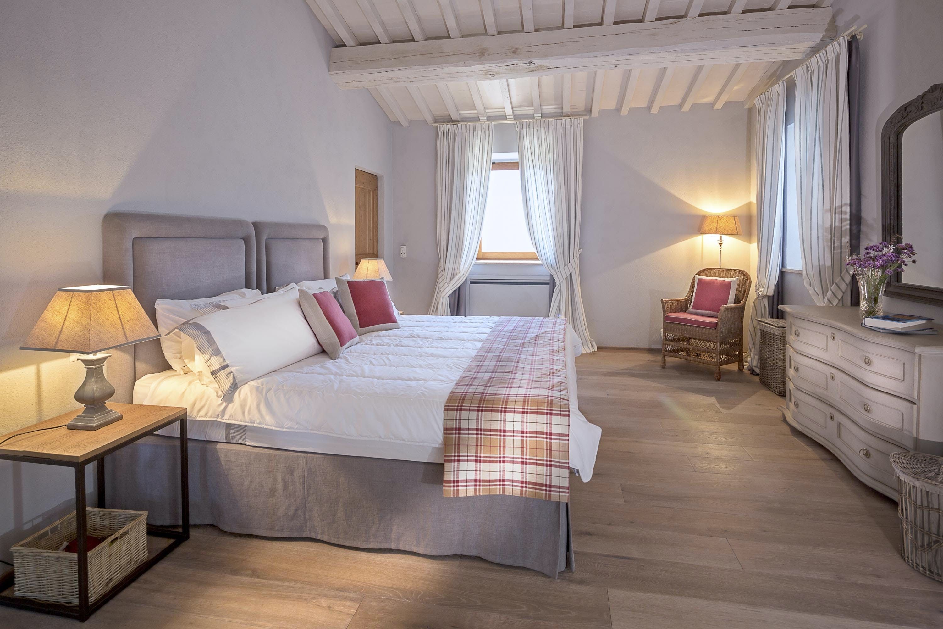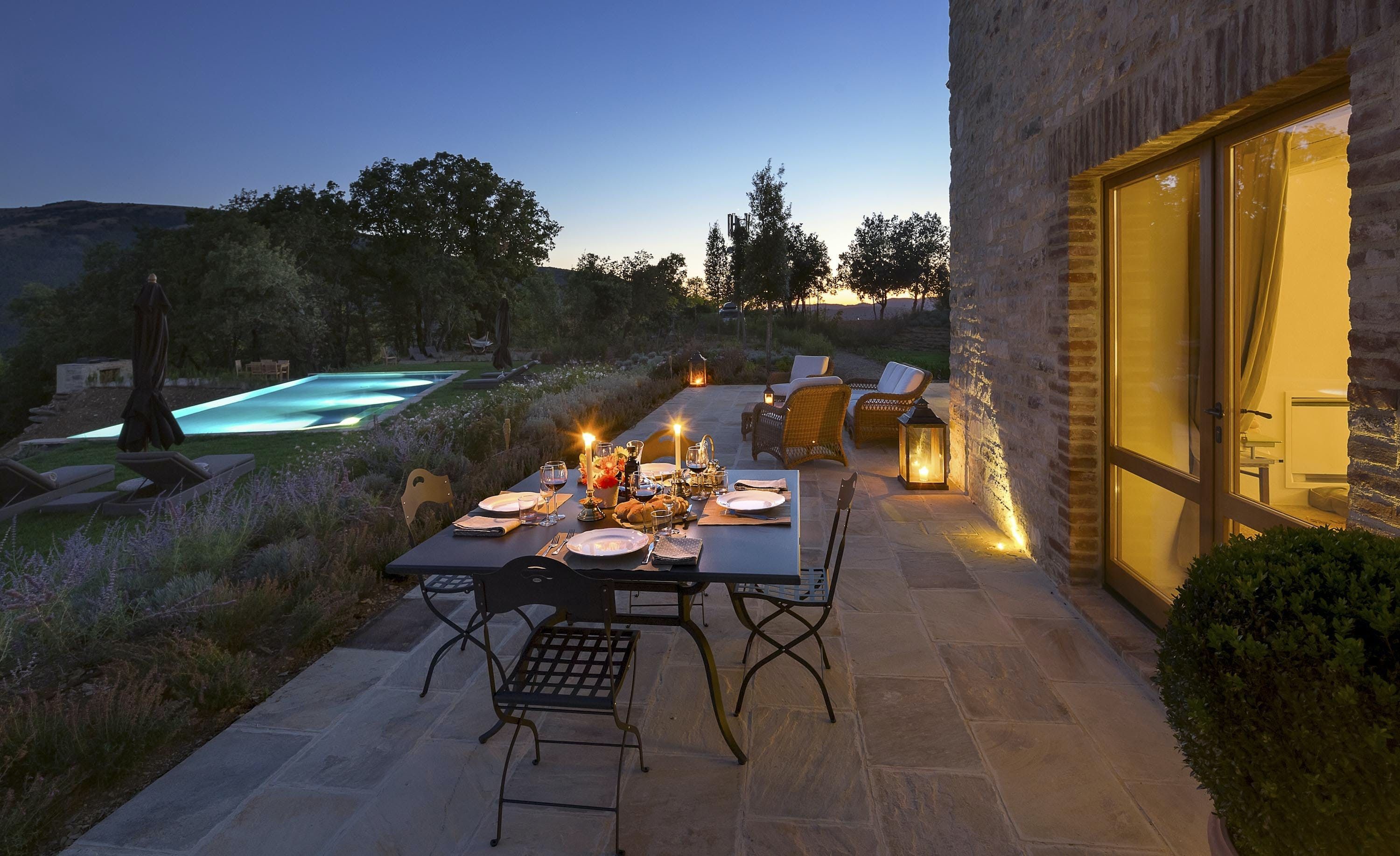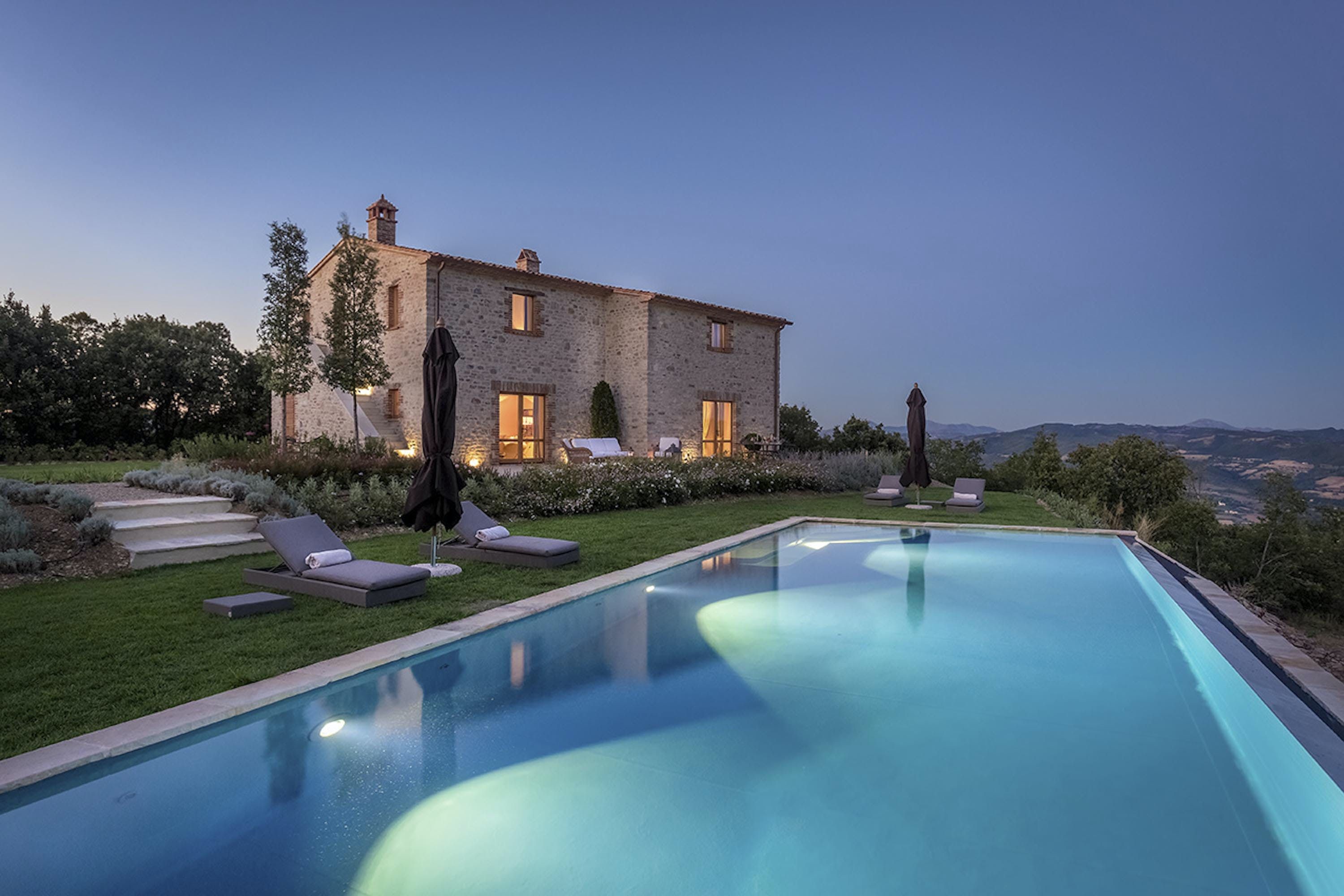 This enchanting villa is situated on an ancient private estate, guaranteeing tranquillity and natural beauty. You’ll be surrounded by acres of woodland and olive groves, while the town of Pierantonio is also just a fifteen-minute drive away. You’ll have a heated pool to enjoy, as well as a picturesque patio, perfect for outdoor feasts, which can be prepared by a private chef upon request. With a wide range of special services on offer, there's no doubt you’ll feel spoiled here.