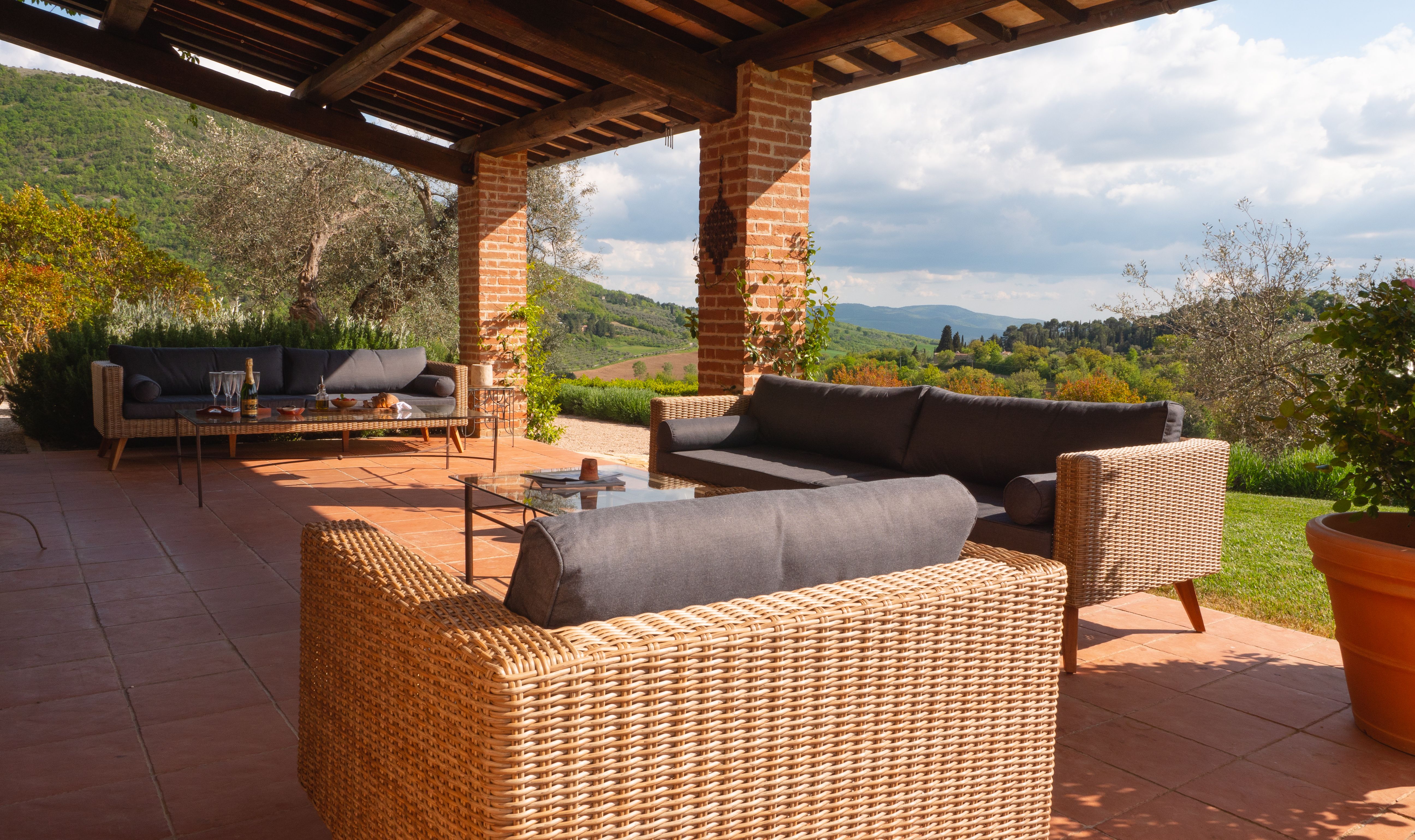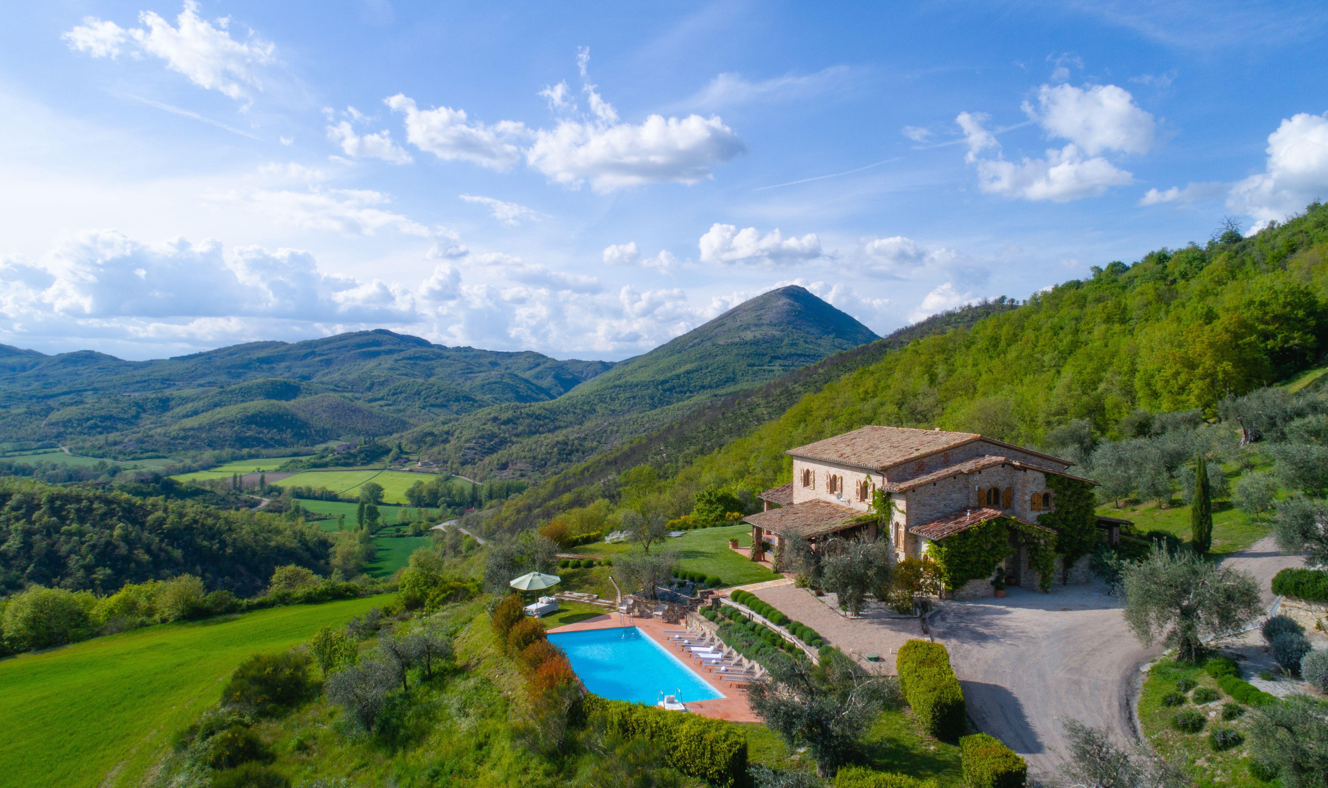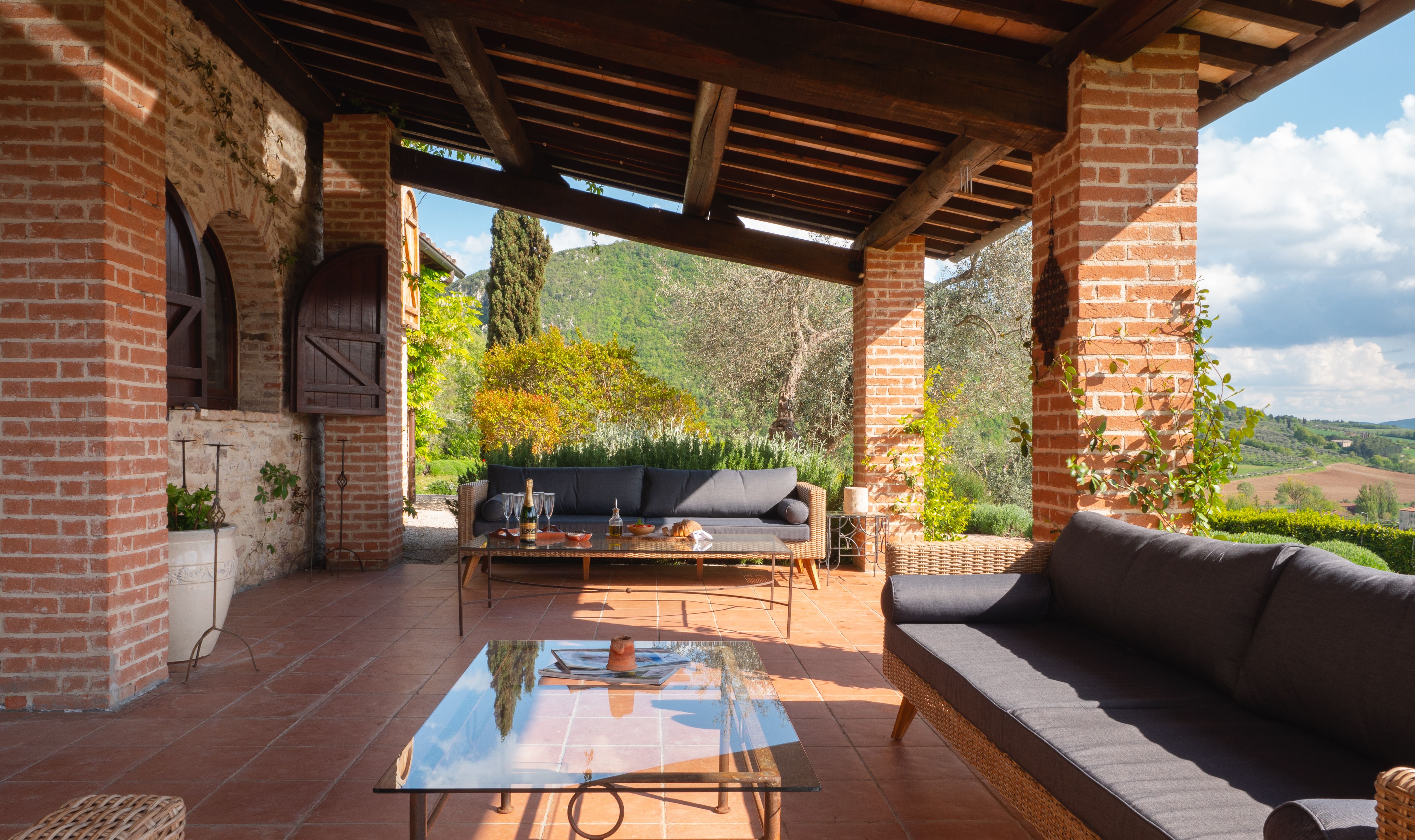 With stunning views over rolling Umbrian countryside, this farmhouse has an idyllic setting. In the beautiful garden, there’s a swimming pool, alfresco dining and a fragrant wisteria-covered terrace with a sofa for soaking in the vistas. Inside, you find traditional decor and plenty of character features. When you want to explore the area, Perugia, known for its ancient city walls and medieval Priori Palace is nearby and for golfers, there’s a famous course within driving distance. This place is perfect for a relaxing vacation.