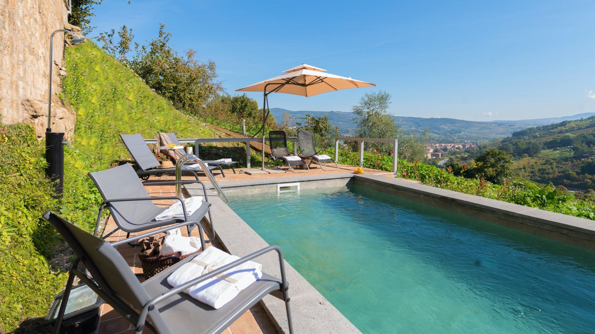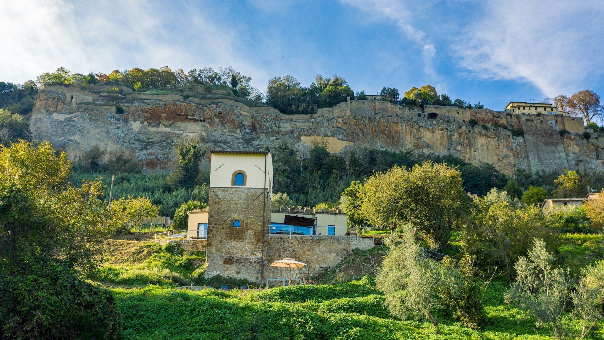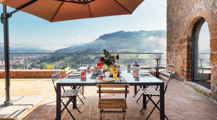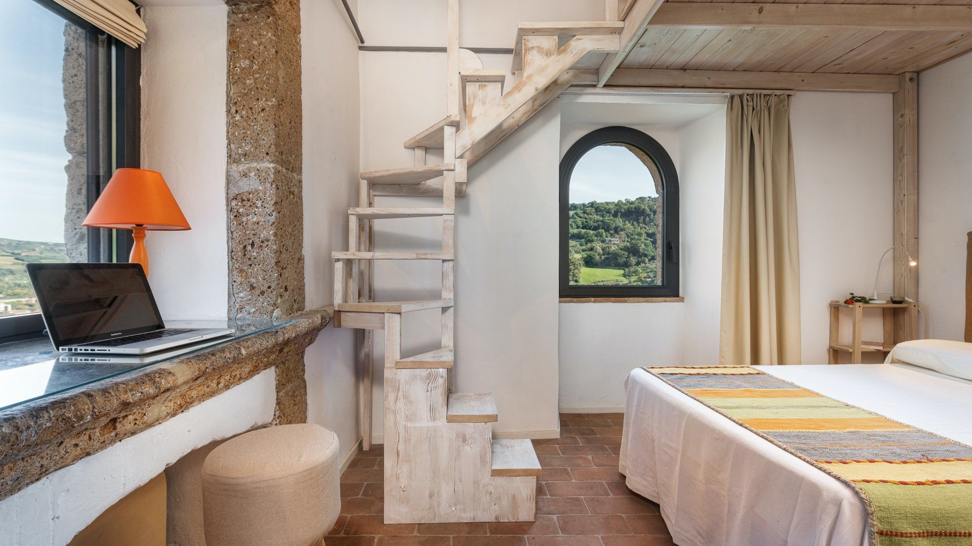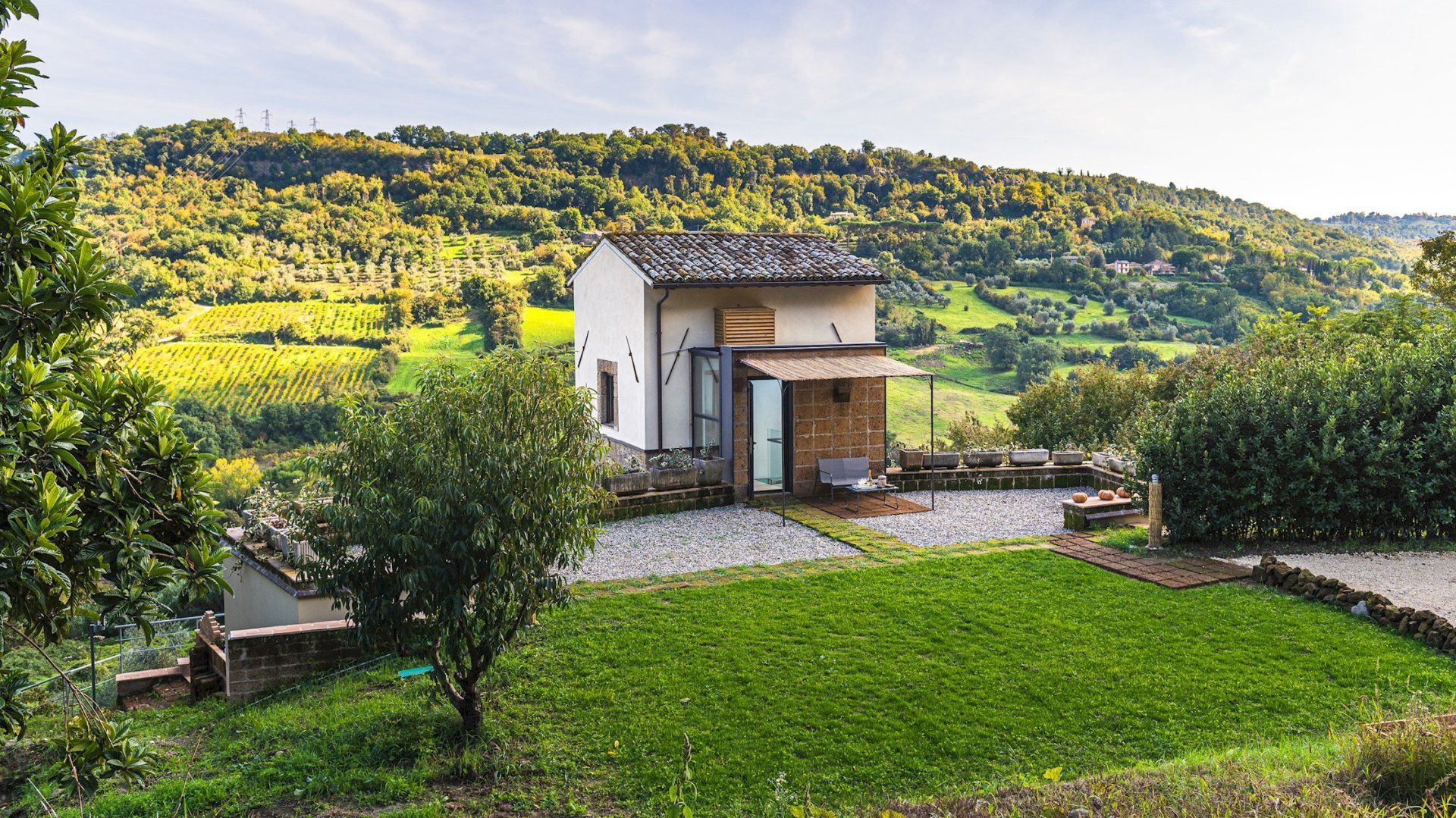 Floor-to-ceiling black-framed windows and a sensitive renovation have turned this 16th-century Umbrian dovecote tower into one of the region's smartest stays. Behind the stone tower, the jagged cliffs and town of Orvieto loom, while in front, the rolling hills stretch before you. Interiors meld old with new. Flagstone floors and antique furniture sit alongside steel ceiling pipes and geometric prints. As one would expect in a tower, there are several spiralling staircases – as well as gawp-worthy views. Push open the sliding doors in the grey, country-style kitchen and step out onto the terrace. A built-in barbecue and wrought-iron table overlook the Italian countryside, while a large vegetable garden and fruit trees provide the freshest ingredients. Continue down to find 1.5 hectares of garden with Etruscan origin and the swimming pool, which was once an agricultural fountain. Forget about any form of work, now all you have to worry about is which spot to pick around the water, with the rush of the nearby brook providing background music.