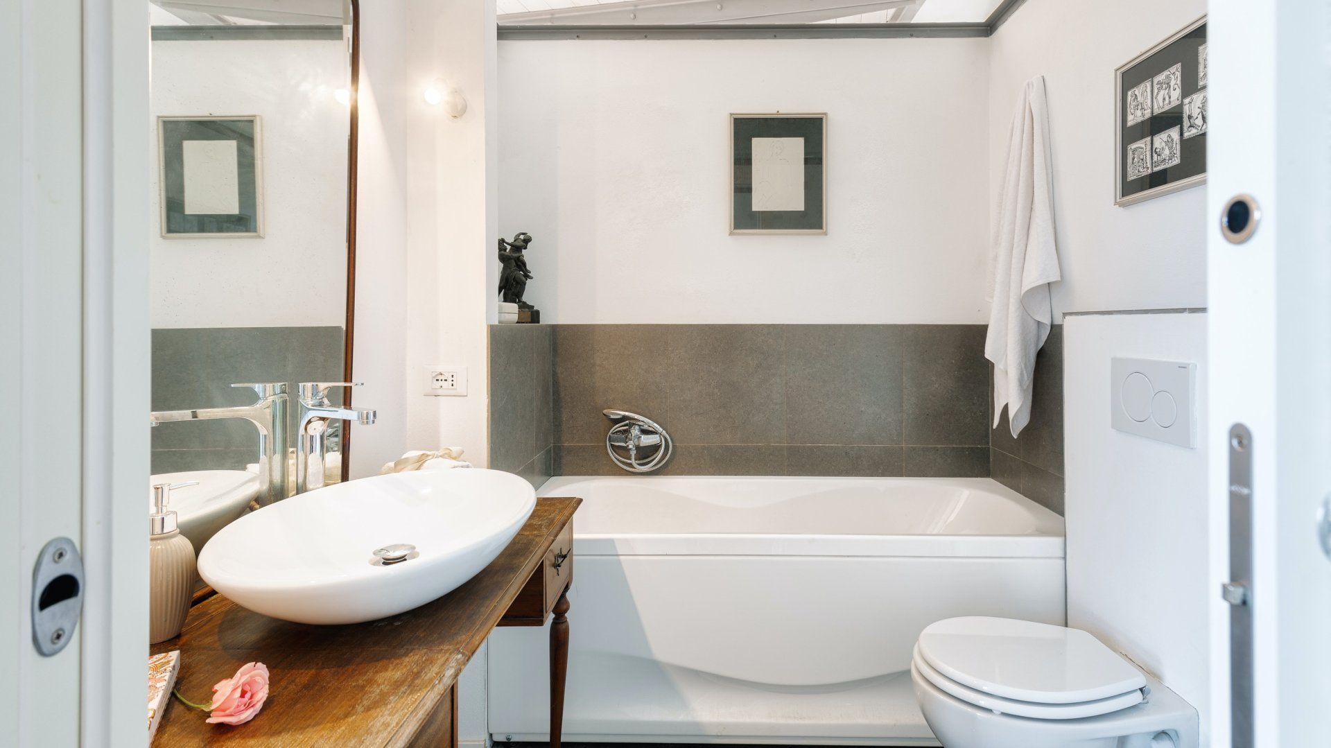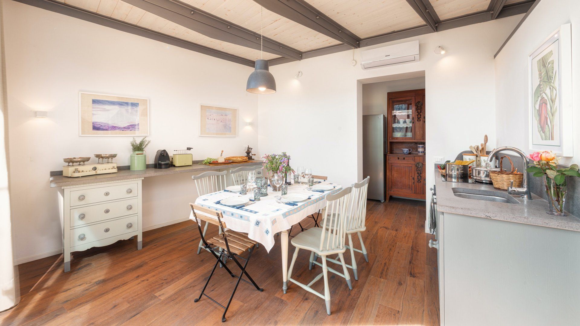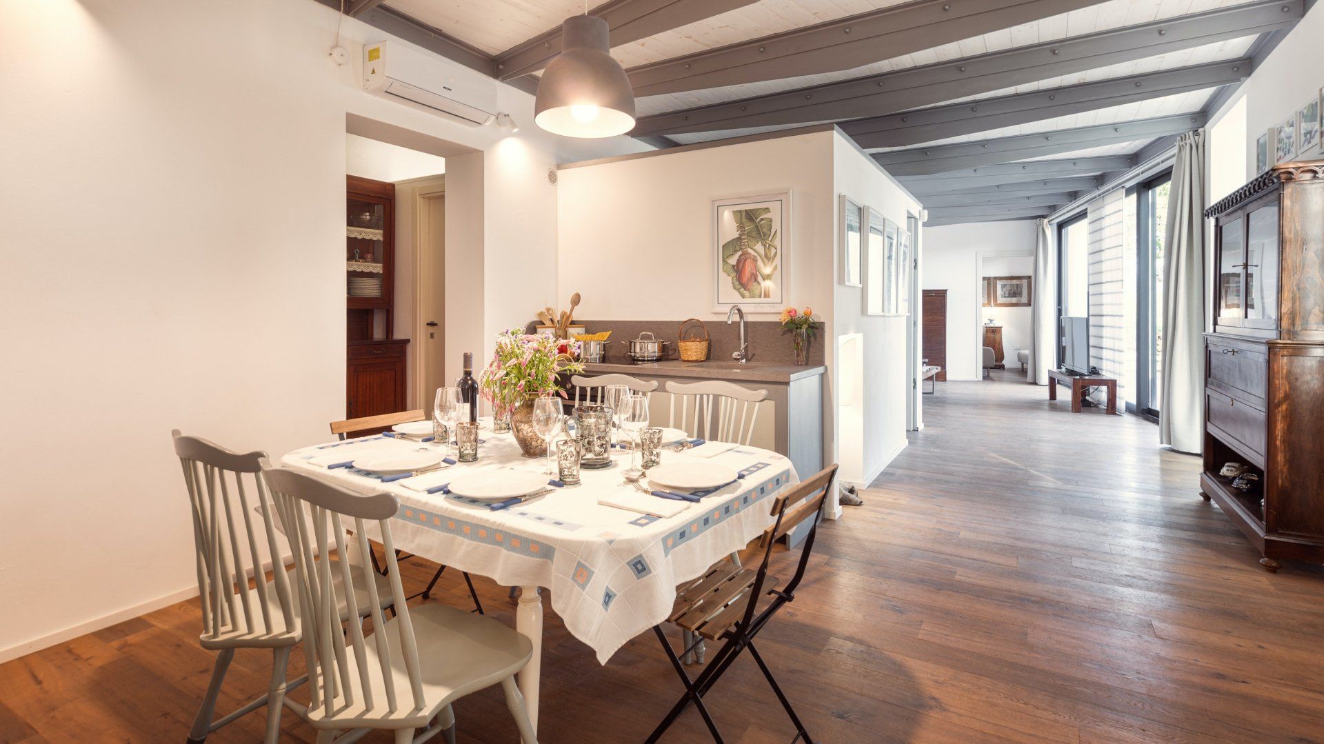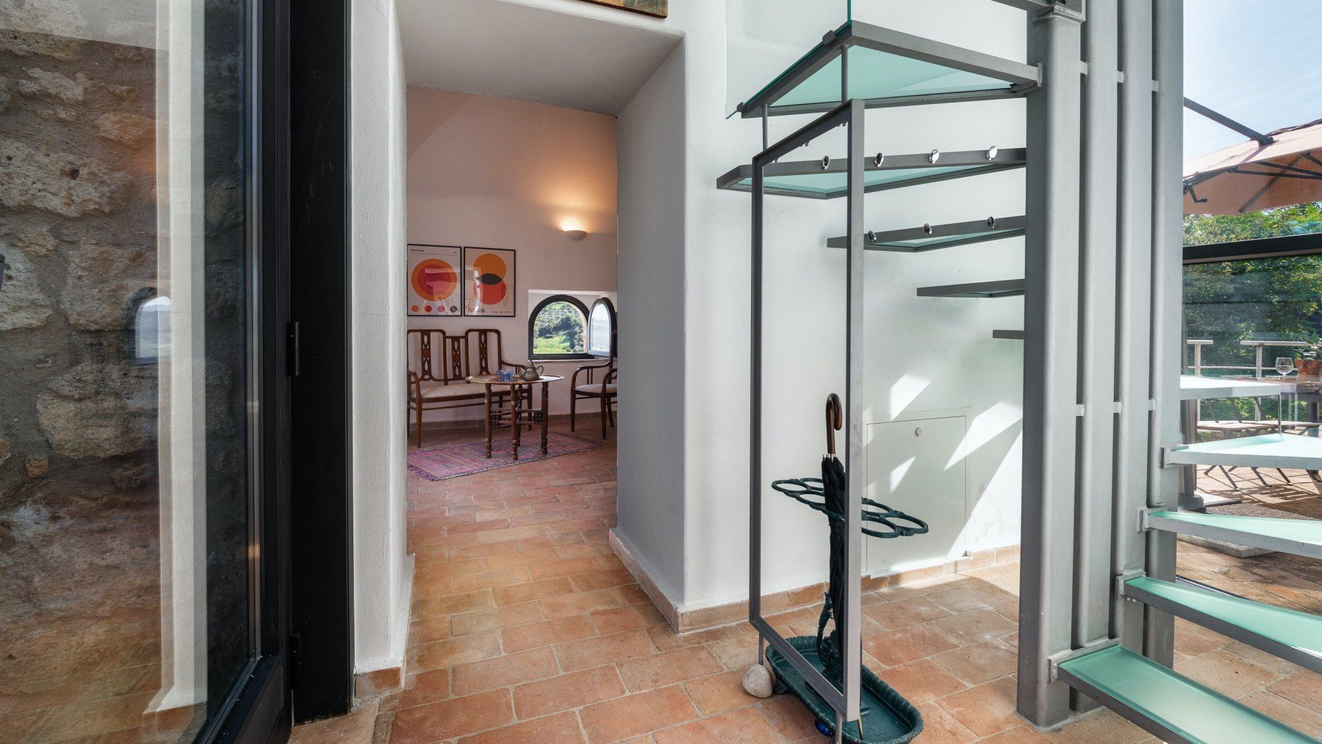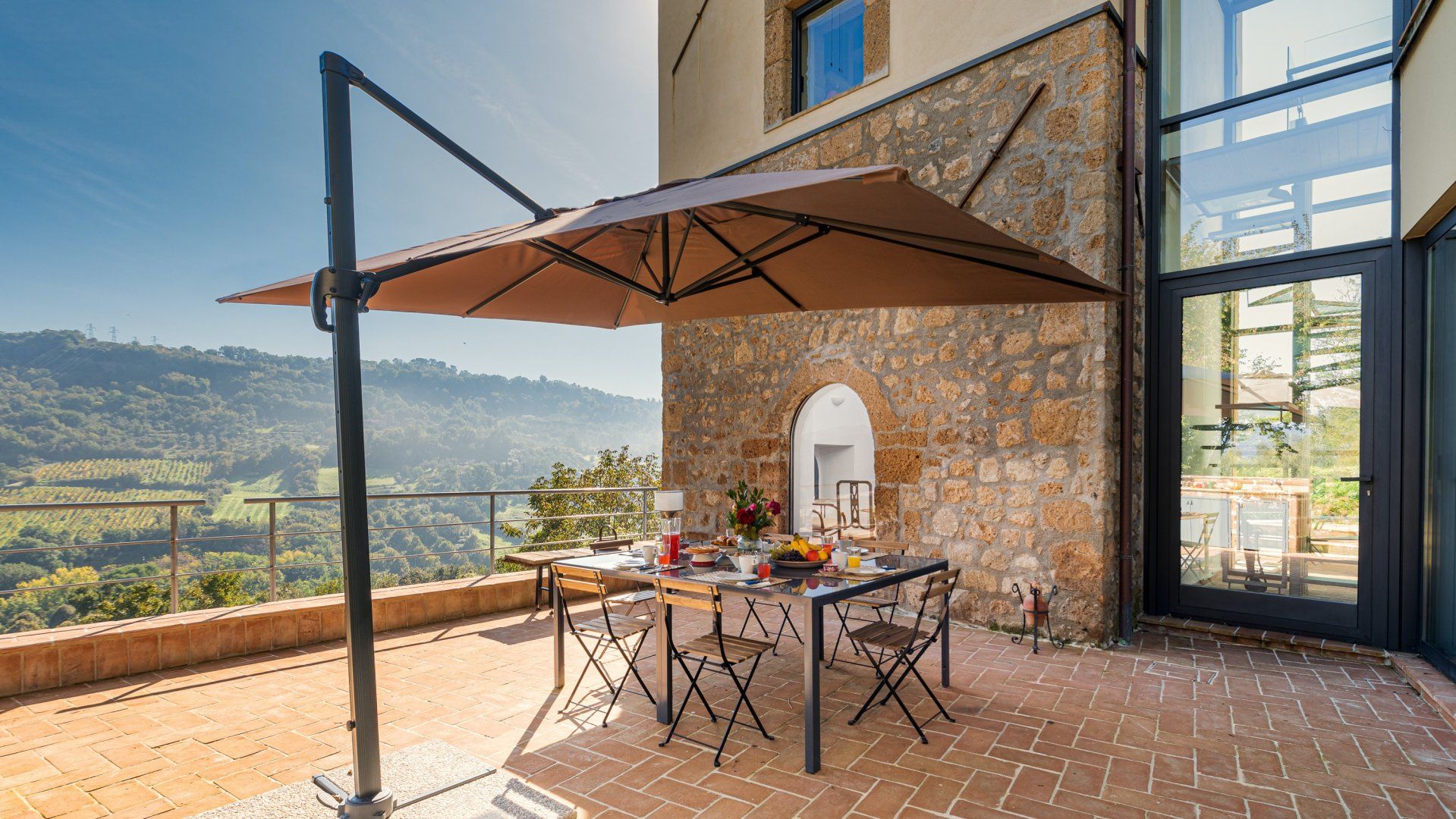Floor-to-ceiling black-framed windows and a sensitive renovation have turned this 16th-century Umbrian dovecote tower into one of the region's smartest stays. Behind the stone tower, the jagged cliffs and town of Orvieto loom, while in front, the rolling hills stretch before you. Interiors meld old with new. Flagstone floors and antique furniture sit alongside steel ceiling pipes and geometric prints. As one would expect in a tower, there are several spiralling staircases – as well as gawp-worthy views. Push open the sliding doors in the grey, country-style kitchen and step out onto the terrace. A built-in barbecue and wrought-iron table overlook the Italian countryside, while a large vegetable garden and fruit trees provide the freshest ingredients. Continue down to find 1.5 hectares of garden with Etruscan origin and the swimming pool, which was once an agricultural fountain. Forget about any form of work, now all you have to worry about is which spot to pick around the water, with the rush of the nearby brook providing background music.