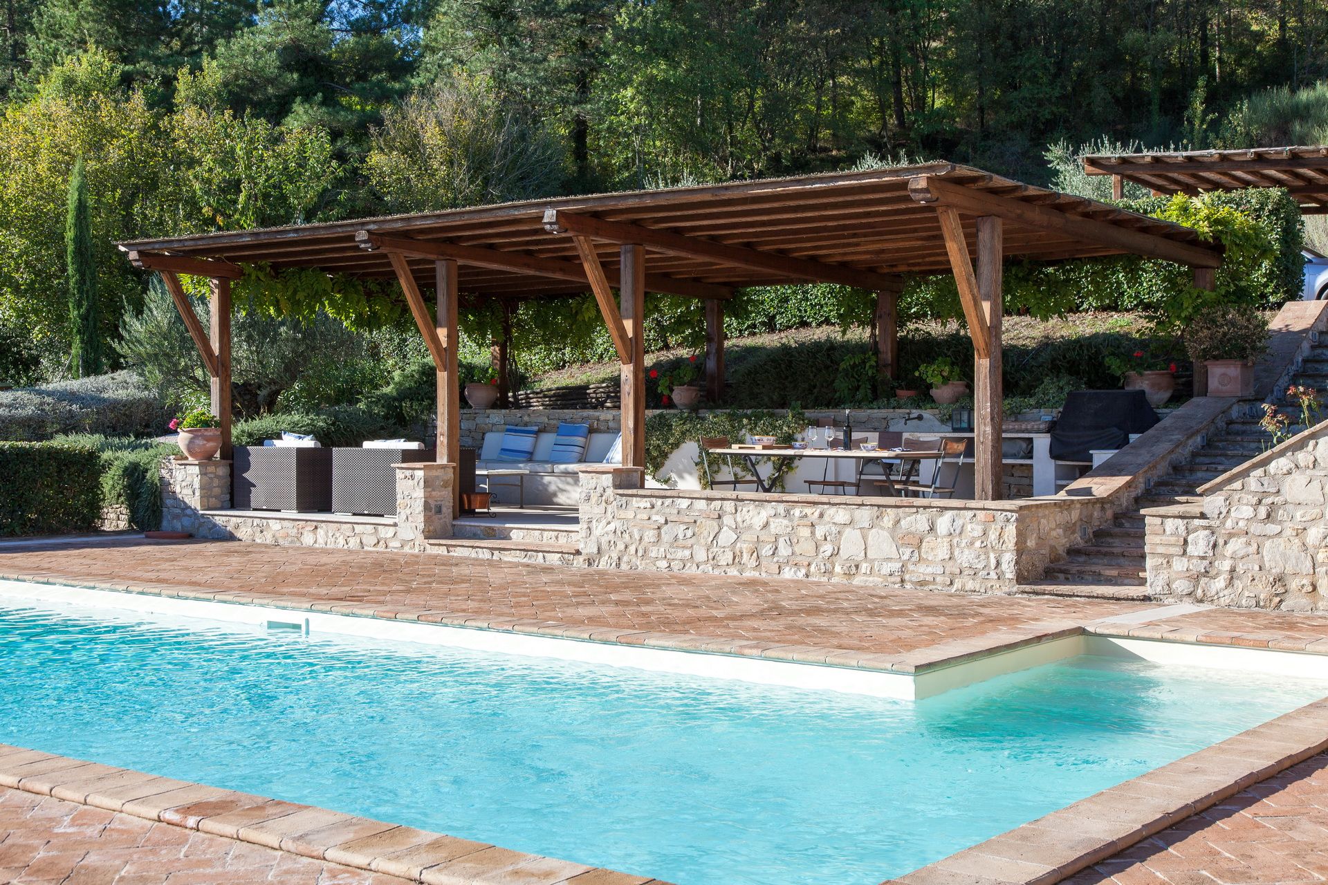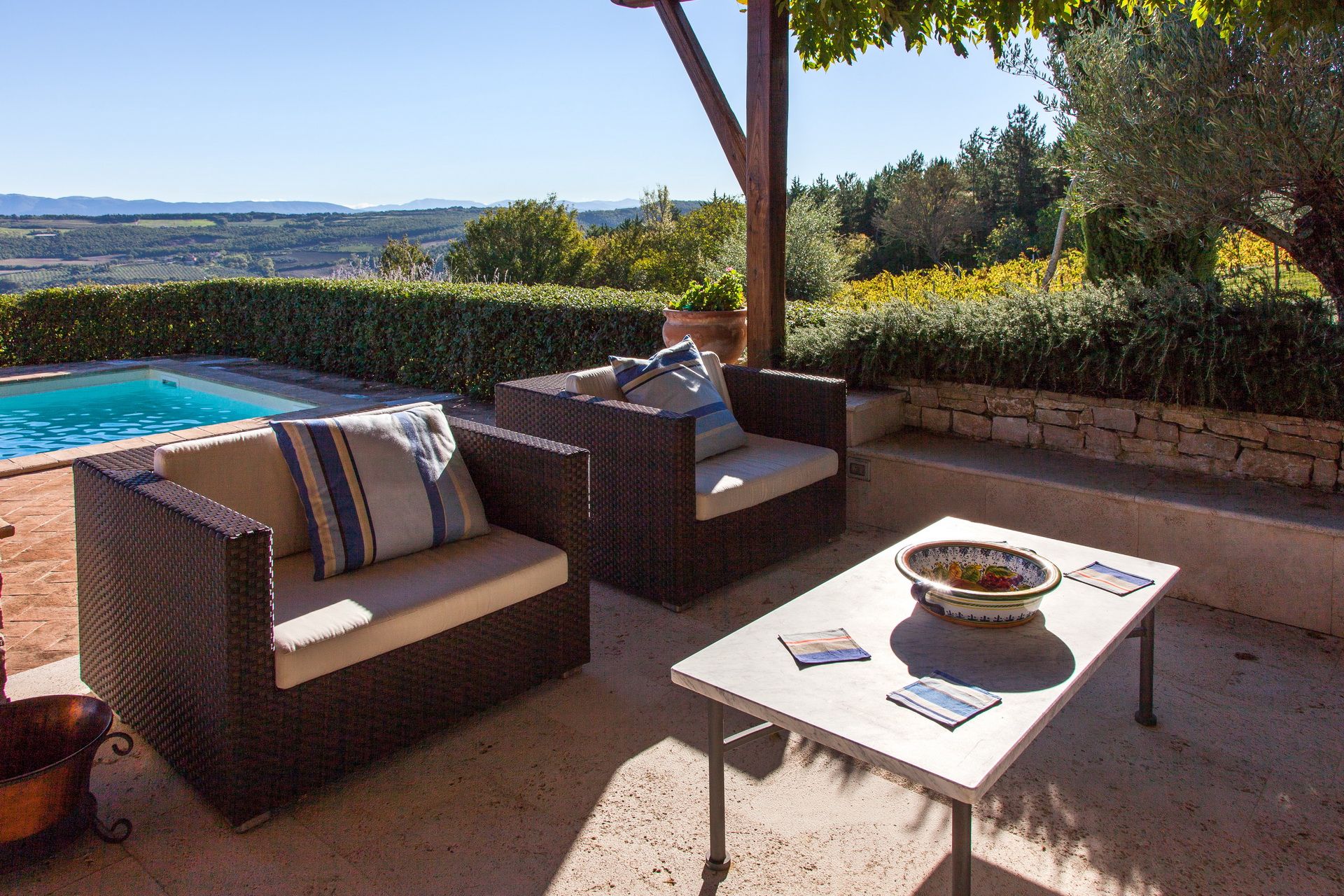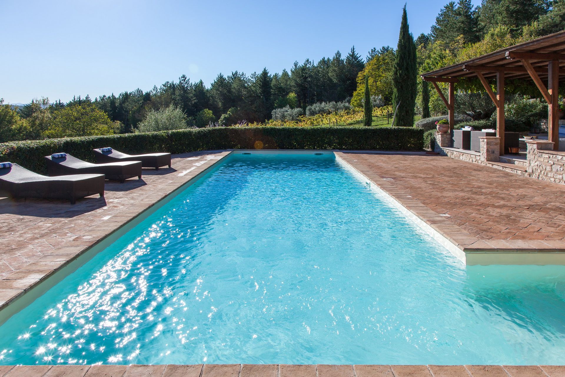 Nestled against one of the many rolling hills of southern Umbria, this villa will scratch that itch for a rural Italian escape. You’ll feel the rustic atmosphere as soon as you walk in, with original wooden beams, exposed stone and brick archways all making an appearance inside – and although the decor may be a bit sparse to some, there's plenty of space for everyone. Outside, it’s the ideal place for sun-worshippers – the private pool and chill-out area speak for themselves, both commanding great views of the surrounding countryside. Location wise, it’s a scenic drive away from Todi, a quaint village prized for its well-preserved medieval architecture.