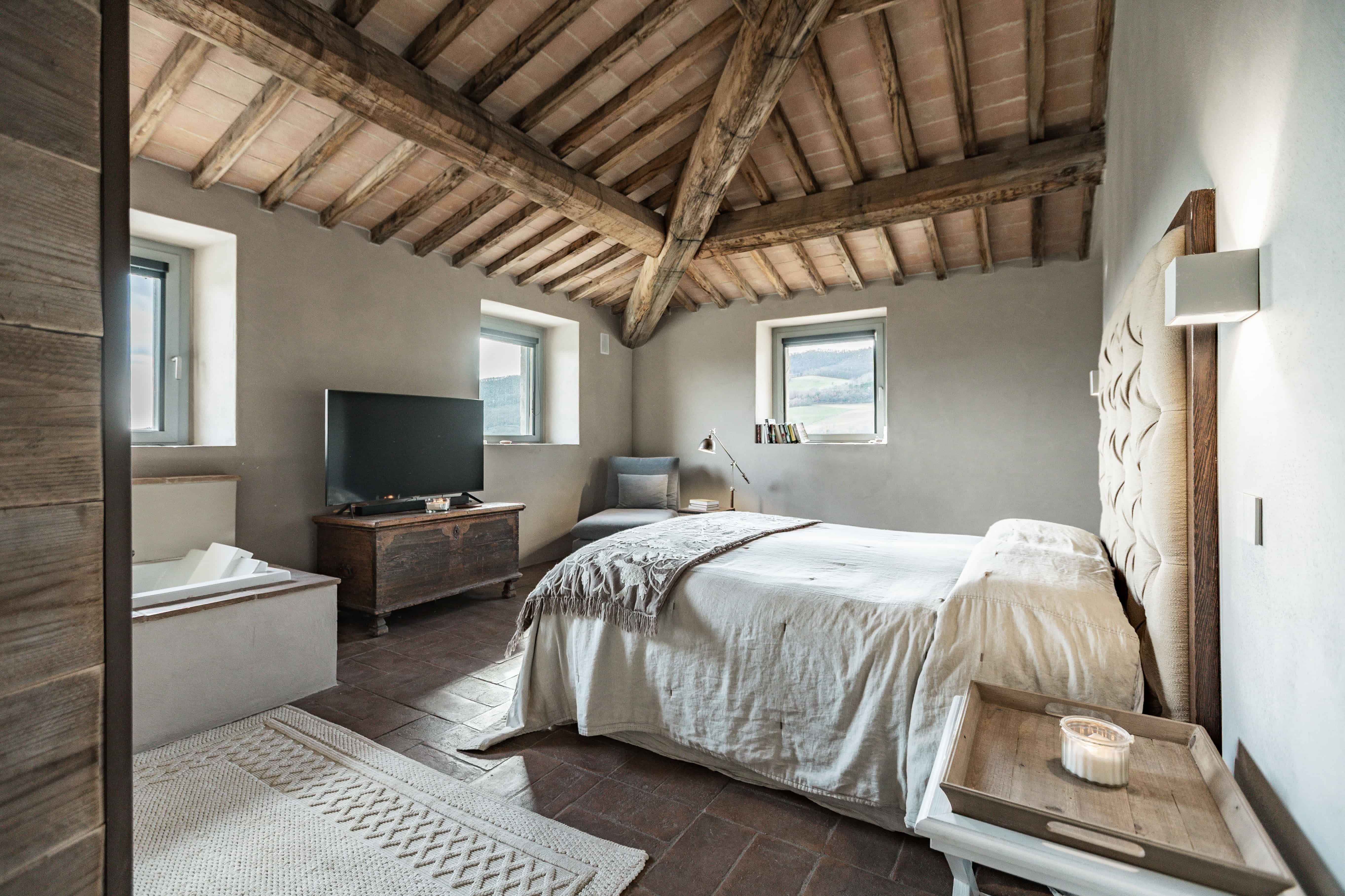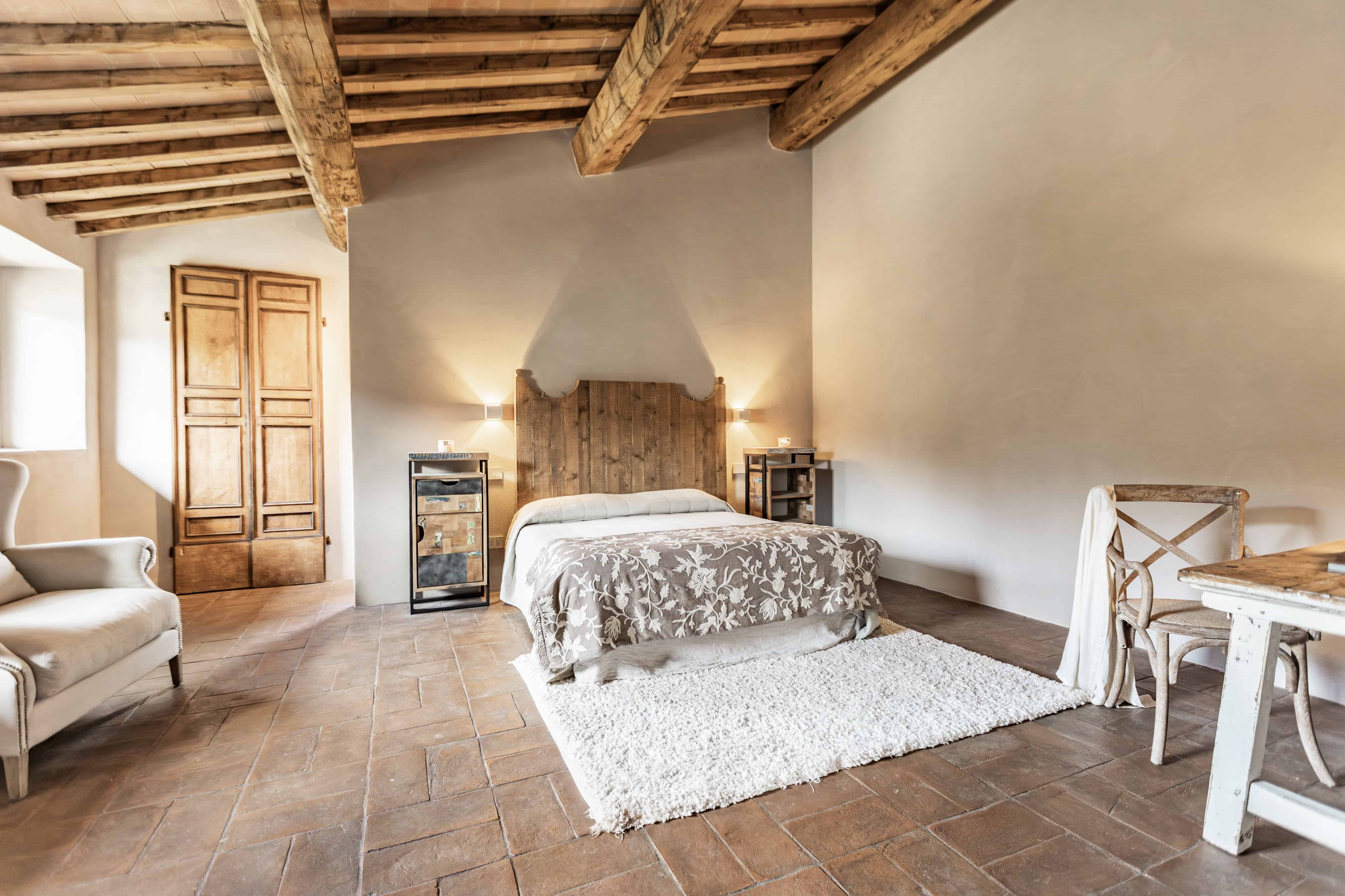 Surrounded by the Umbrian countryside, this villa is designed for making the most of the sunshine. When you’re not cooling off in the private infinity pool, we imagine you’ll be cooking up a storm using fresh produce from the vegetable garden – perhaps even baking your own pizzas in the outdoor oven. The home itself is spread across a main house and an annexe, making it ideal for multigenerational families or large groups of friends. When you’re ready to come together and explore, the hilltop town of Todi is reached in around ten minutes, while the medieval village of Montecastello di Vibio is only 2 kilometres from your doorstep.