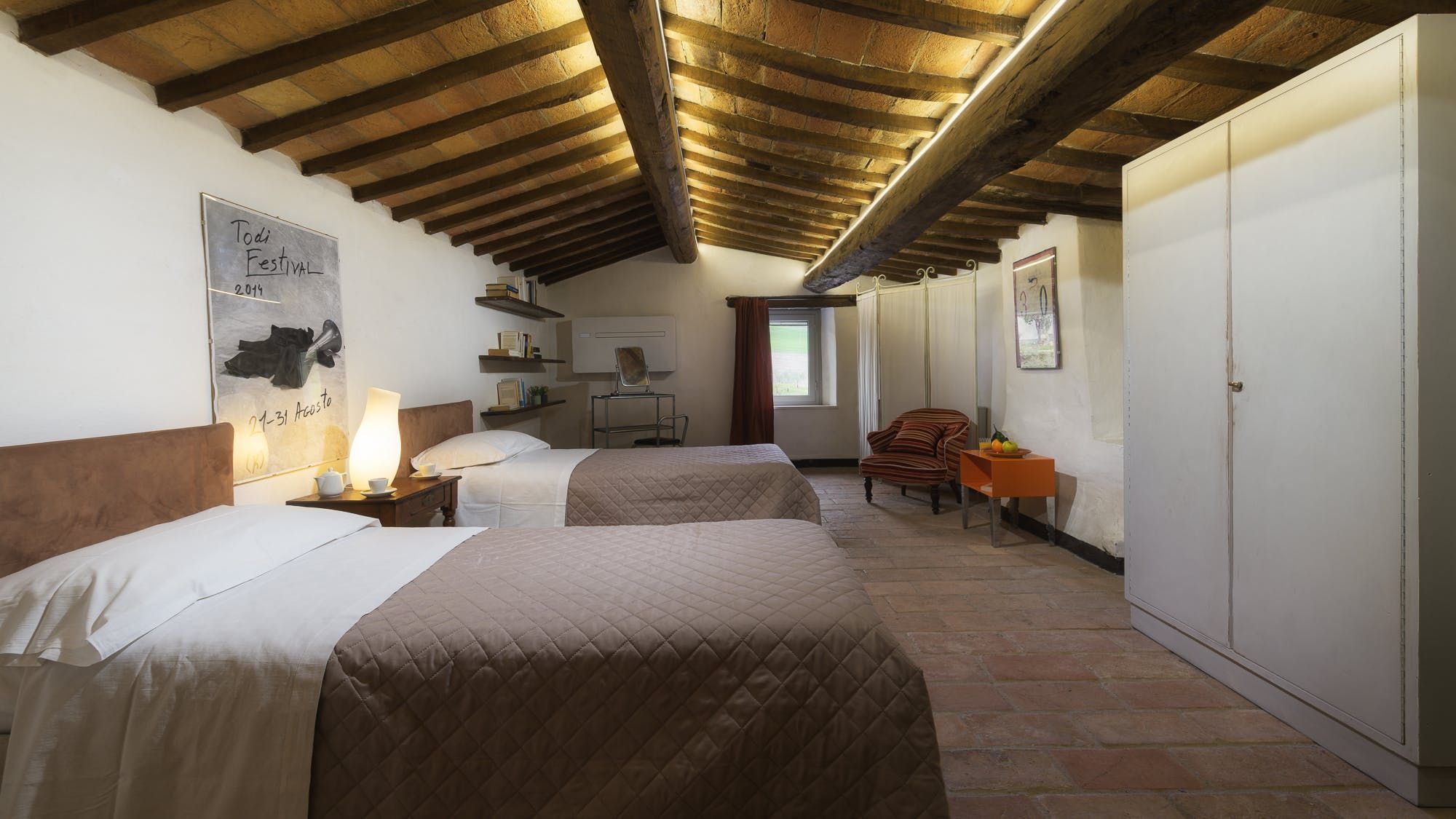 Should you wish to explore beyond the grounds, the pretty town of Todi is around three kilometres away. It’s picture-perfect, perched on a hilltop where rambling medieval streets house local trattoria and quaint little shops. This is where you can stock up on supplies at the supermarket too.