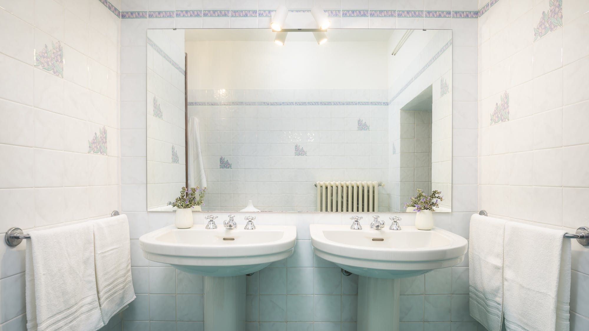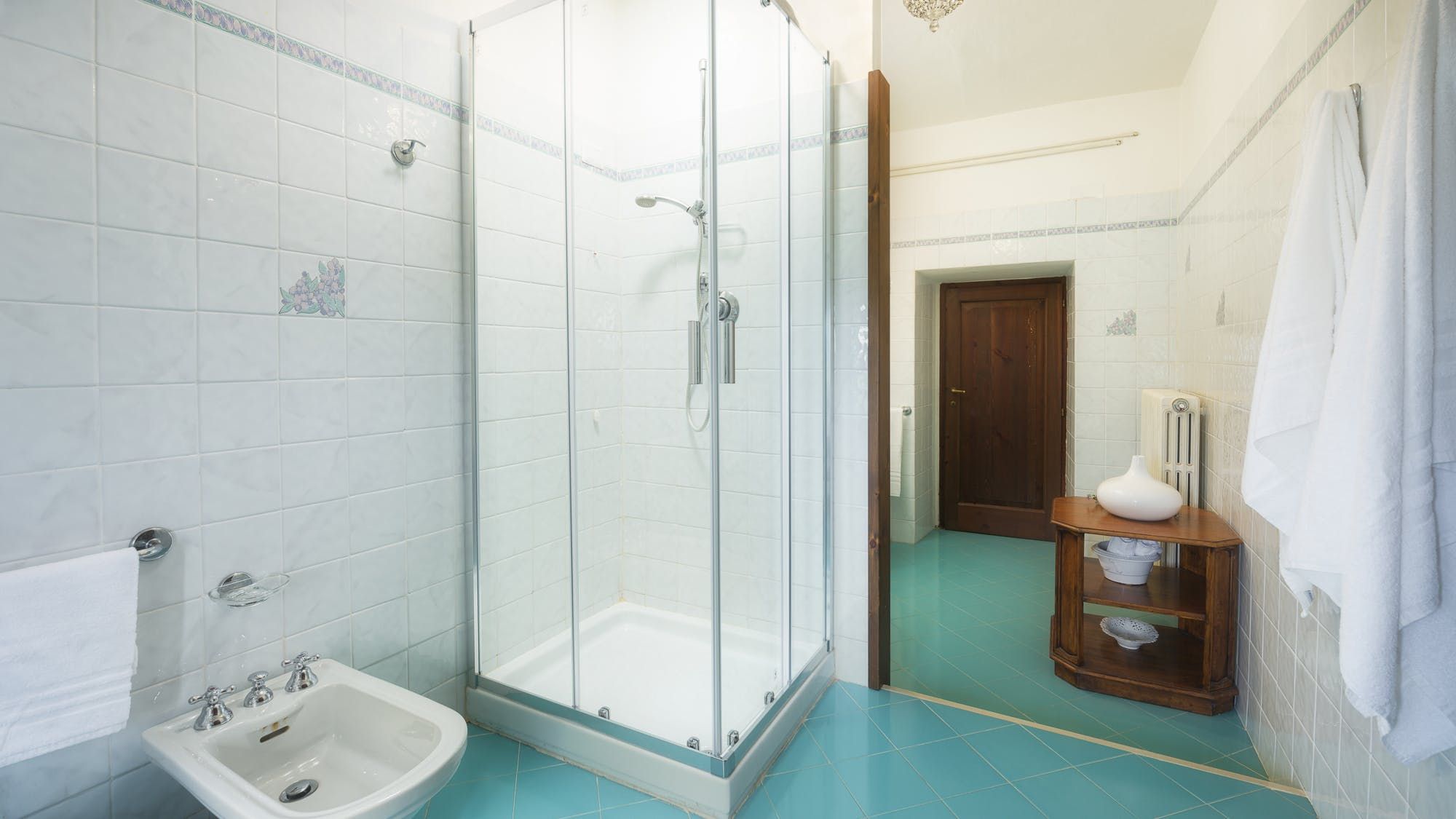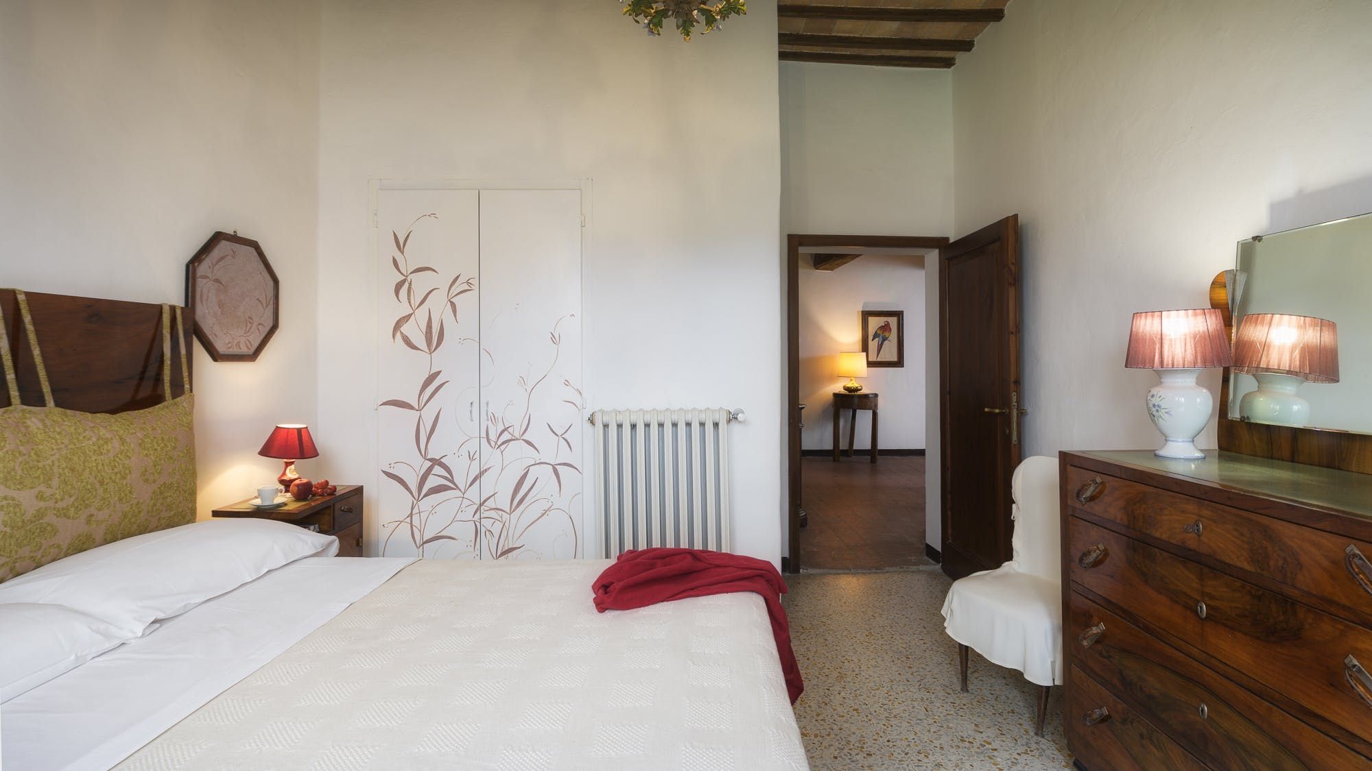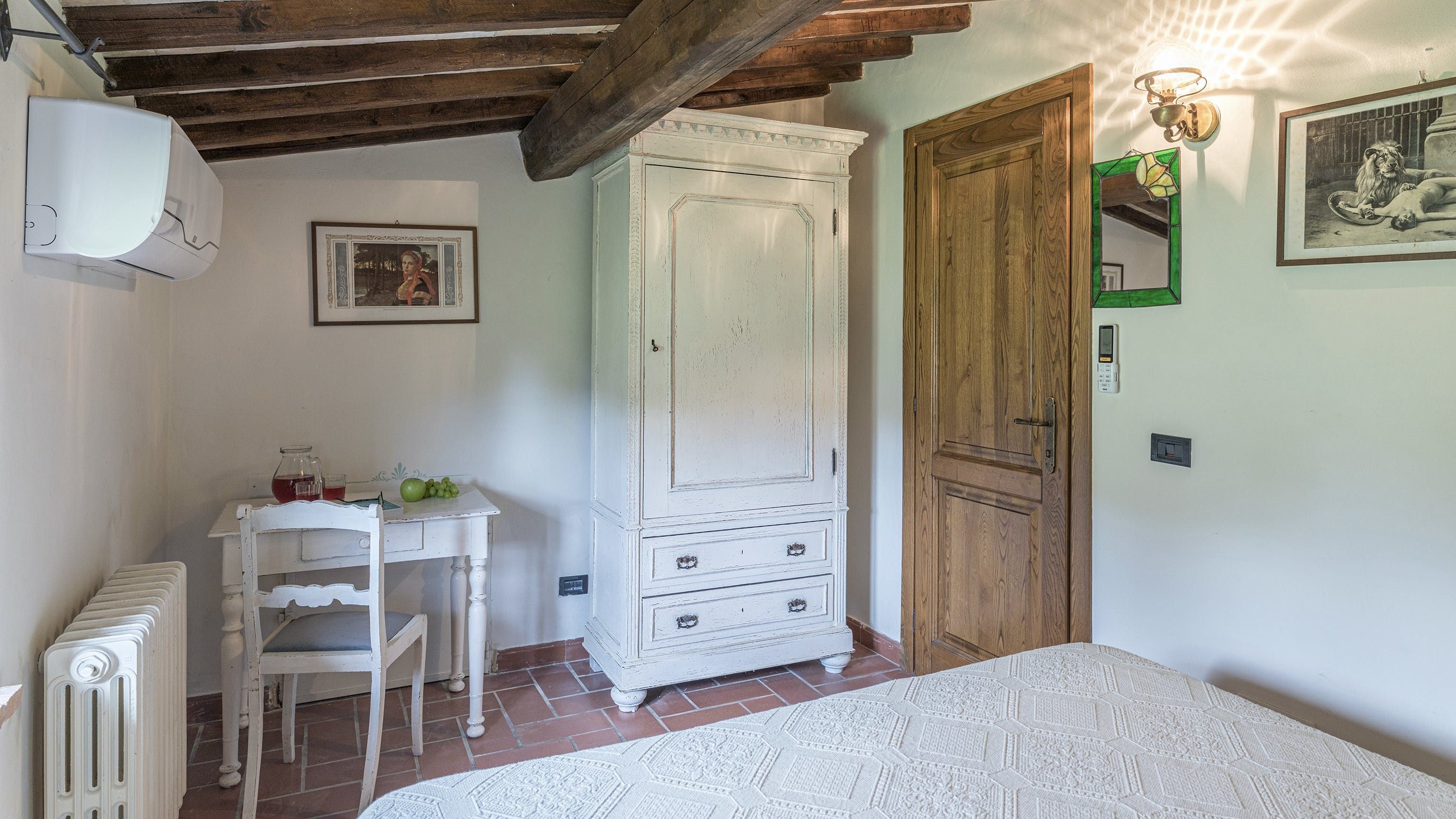 The home is split between the main villa and a separate annexe, and large groups will find myriad sitting rooms and lounges to spread out. Smoke-blackened hearths speak of the home’s history and sitting rooms beneath wooden ceilings are home to antique furniture and little libraries of holiday reads. There are two kitchens to choose from – one in the annexe and one in the main villa, and we love the annexe’s living room with its arched window looking out over the undulating Umbrian countryside.